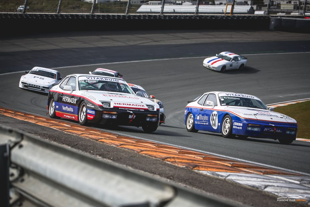 Gedurende de dag rijden we in totaal drie races. Na de gezamenlijke PCR lunch staat de tweede race op het programma. Inmiddels is het toeschouwersaantal verder toegenomen en worden de 944 cup raceauto’s volop gefotografeerd, hartstikke leuk. Race twee is wederom zeer spannend en de nummers 1,2,3, strijden hard, maar fair. Ook nu weer zie je een middenveld en achterveld ontstaan welke onderling strijden. Geen race zonder spektakel, maar veel inhaalacties op de baan. De zon is nu volop gaan schijnen en het wordt warm in de auto, geen airco, geen ramen open, gewoon het beste van maken en doseren. Ook de tweede race eindigt zoals de eerste race, een lach, complimenten, verbazing, grote verhalen en geen schade. Je vraagt je misschien af hoe het komt dat je vaak leest GEEN schade? Kom een dagje kijken op Zandvoort en je begrijpt het direct, wij PCR rijden zelden tot nooit schade omdat we enthousiastelingen zijn zonder ego gedreven bewijsdrang. Dit kenmerkt PCR en zie/ervaar je niet bij andere klassen die deze paasraces ook actief waren.