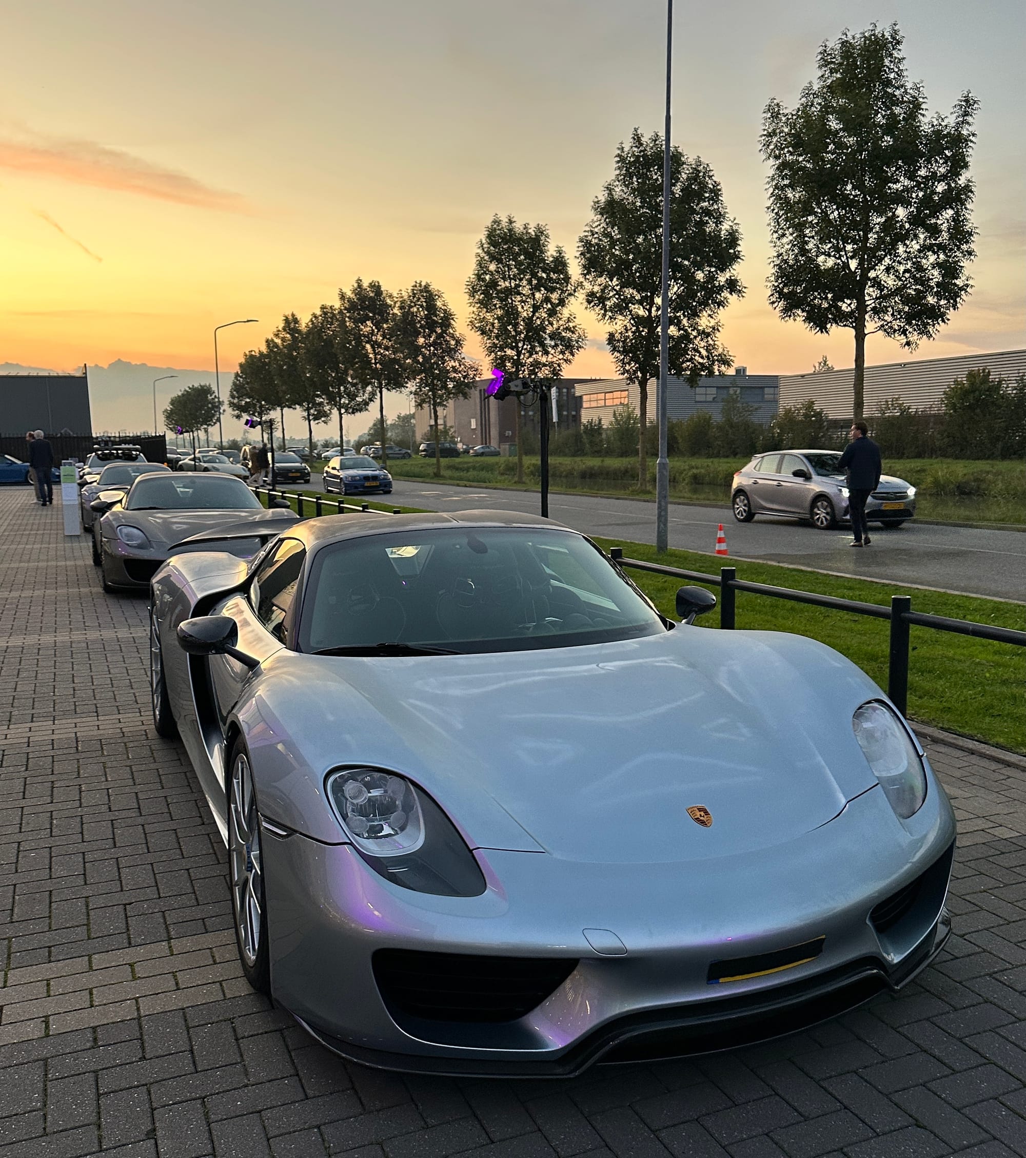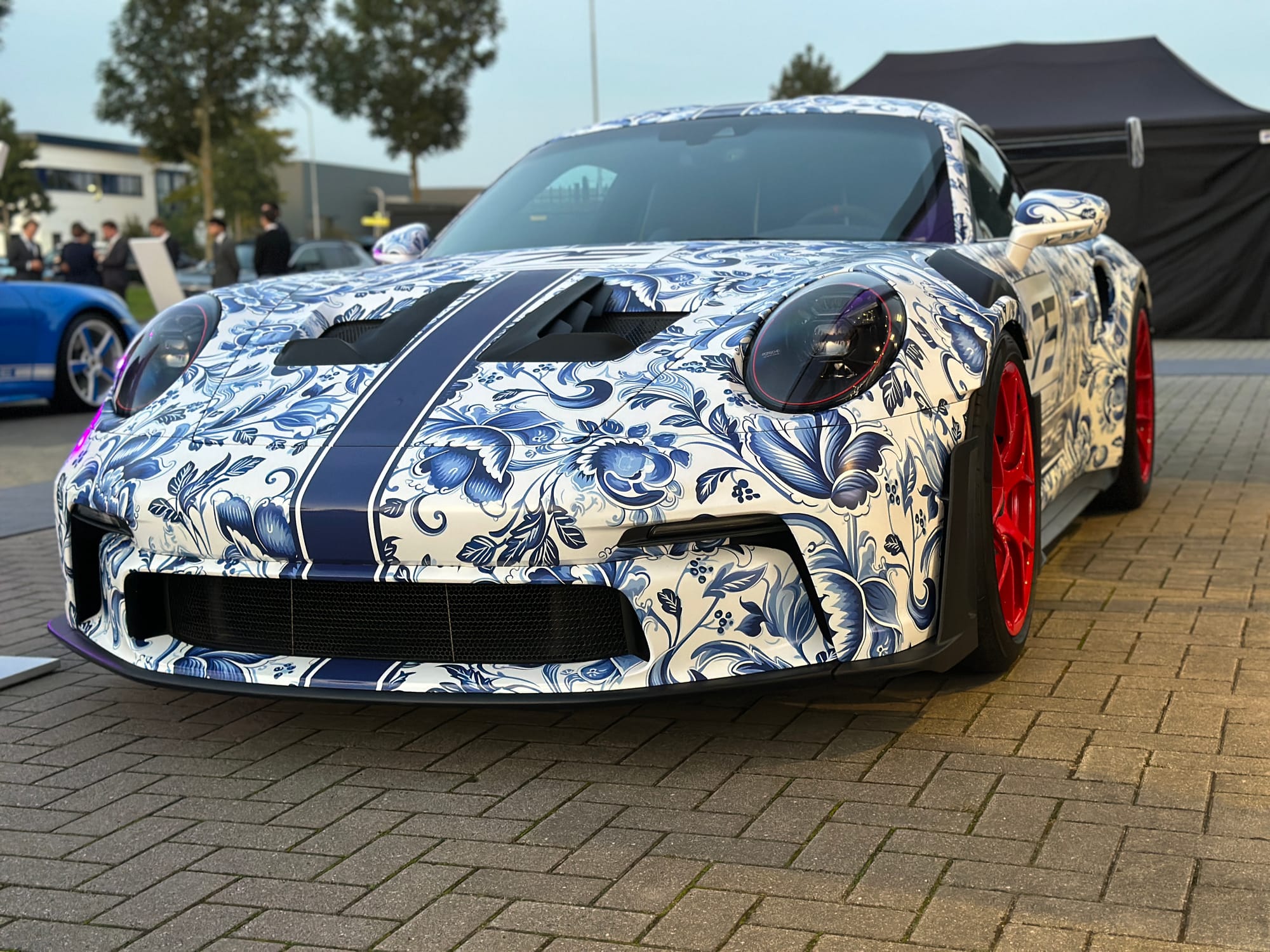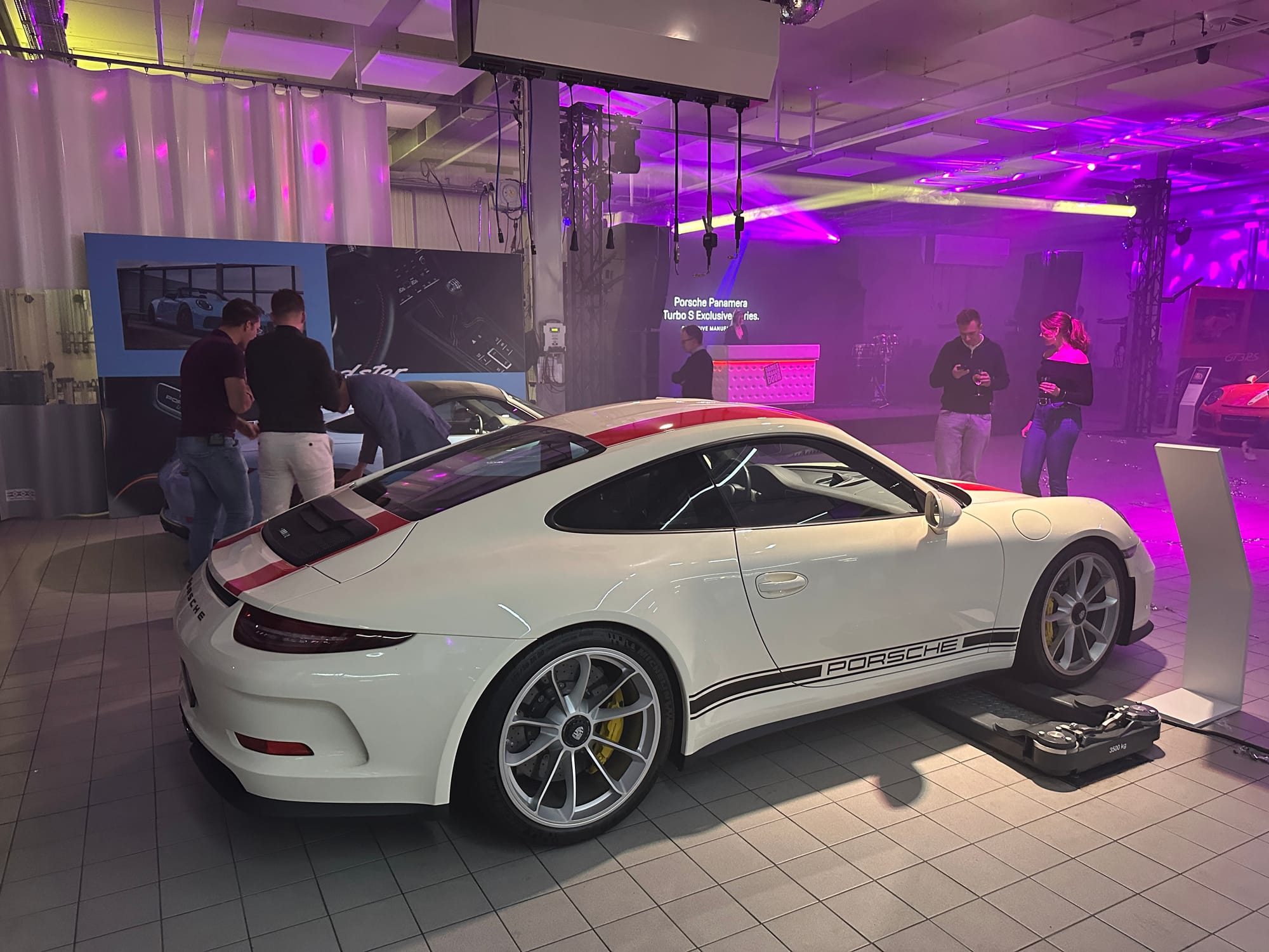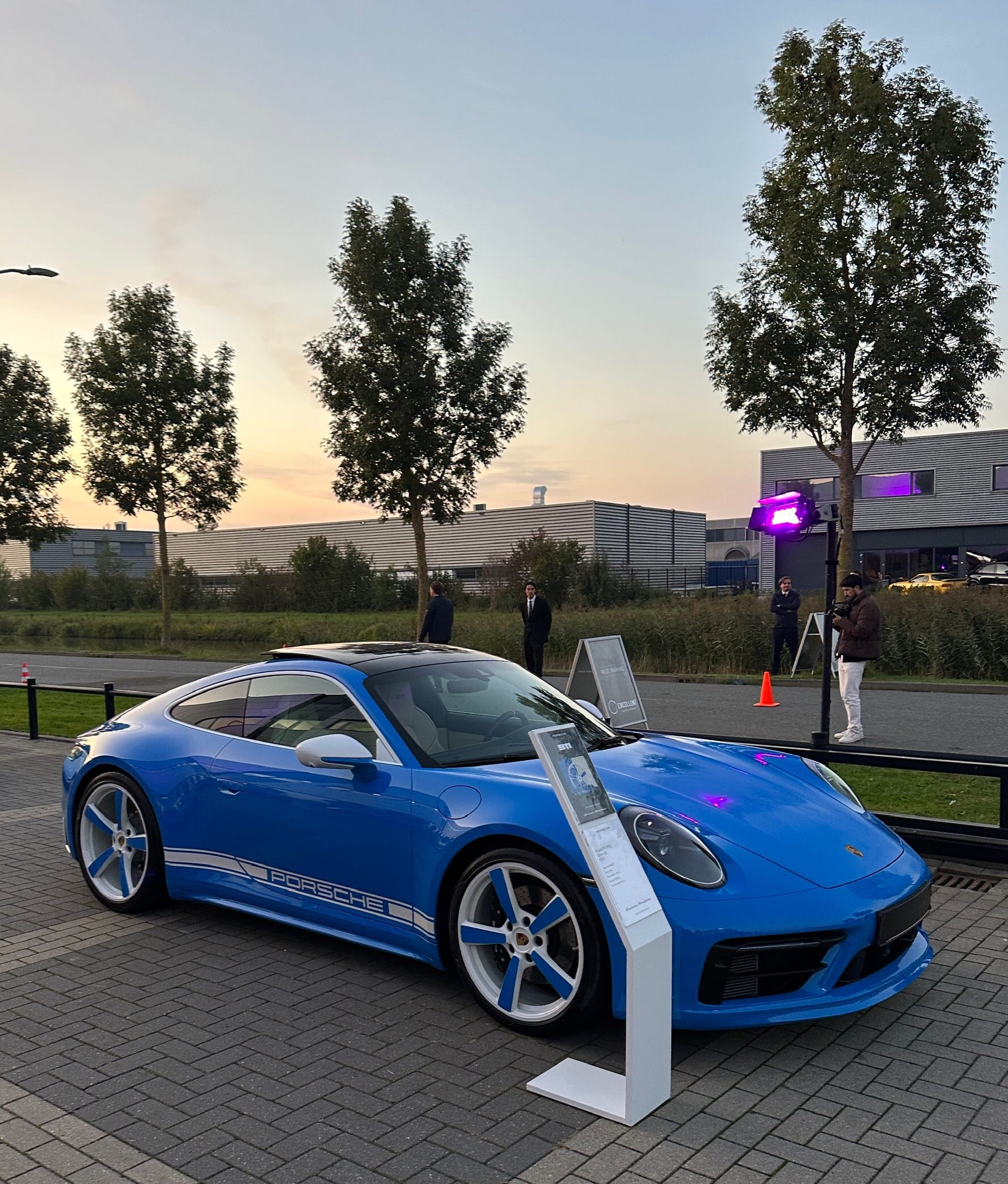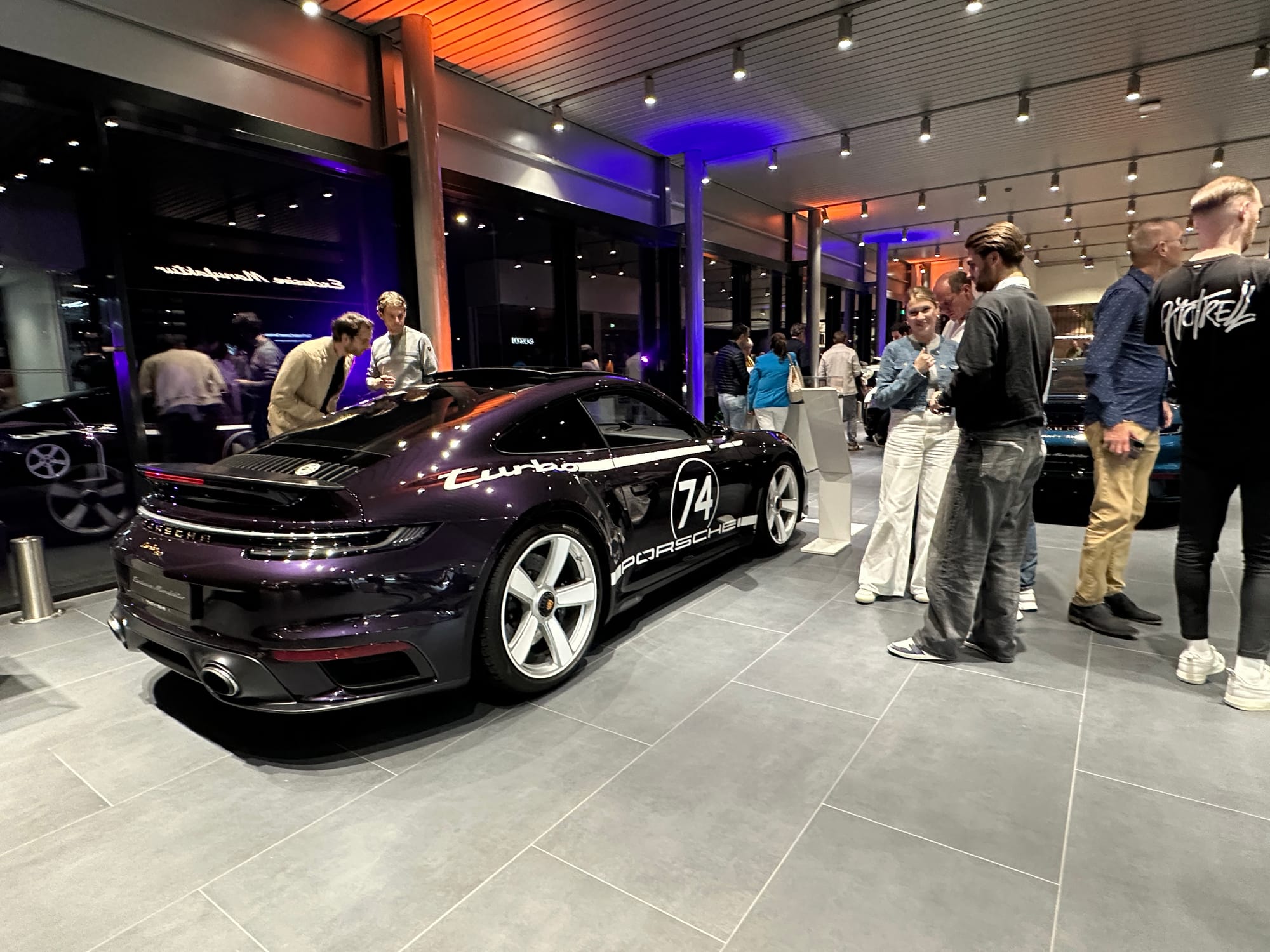 Buiten voor de showroom kregen bezoekers al een indruk van wat hen te wachten stond, want ook wat hier aan Porsches was opgesteld deed liefhebbers al watertanden. Wanneer zie je tenslotte nou niet minder dan drie 918 Spyders bij elkaar? Of de nog steeds bijzondere 911 GT3 RS in delftsblauwe kleuren, speciaal gemaakt voor het 75-jarig jubileum van Porsche in ons land? Of een 911 Carrera 4S in de bijzondere kleur Shark Blue met speciale striping, een echte ‘one-off’? De 911 Dakar Roughroads, die alleen al met zijn opvallende uiterlijk de aandacht trekt, is dan met in totaal 2.500 geproduceerde exemplaren alweer bijna gewoon… Klassiekers waren er ook, zoals de 911 Turbo S van de bouwreeks 964 uit 1993 in Guards red, waarvan er ook maar 86 gemaakt zijn. Of de zeer gezochte 911 Sport Classic uit 2010, met zijn karakteristieke “Entenburzel”.