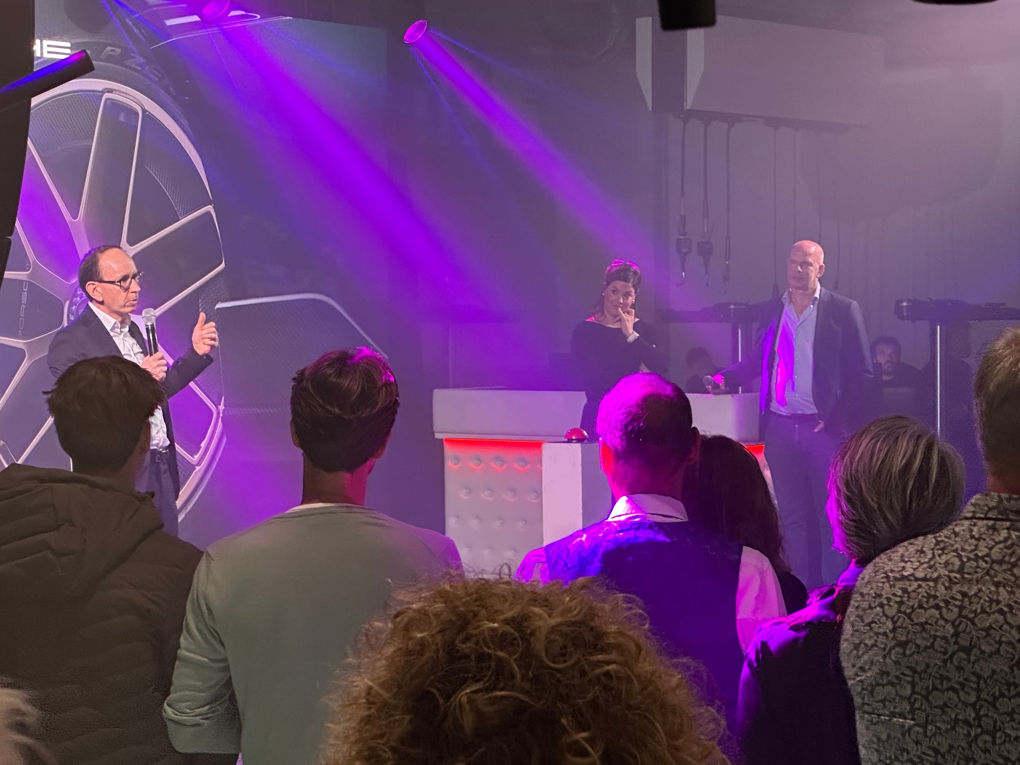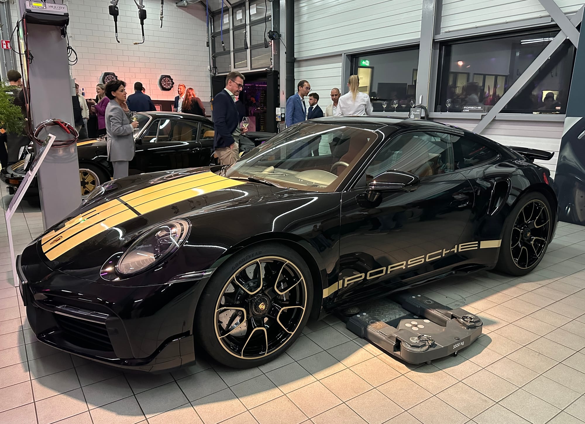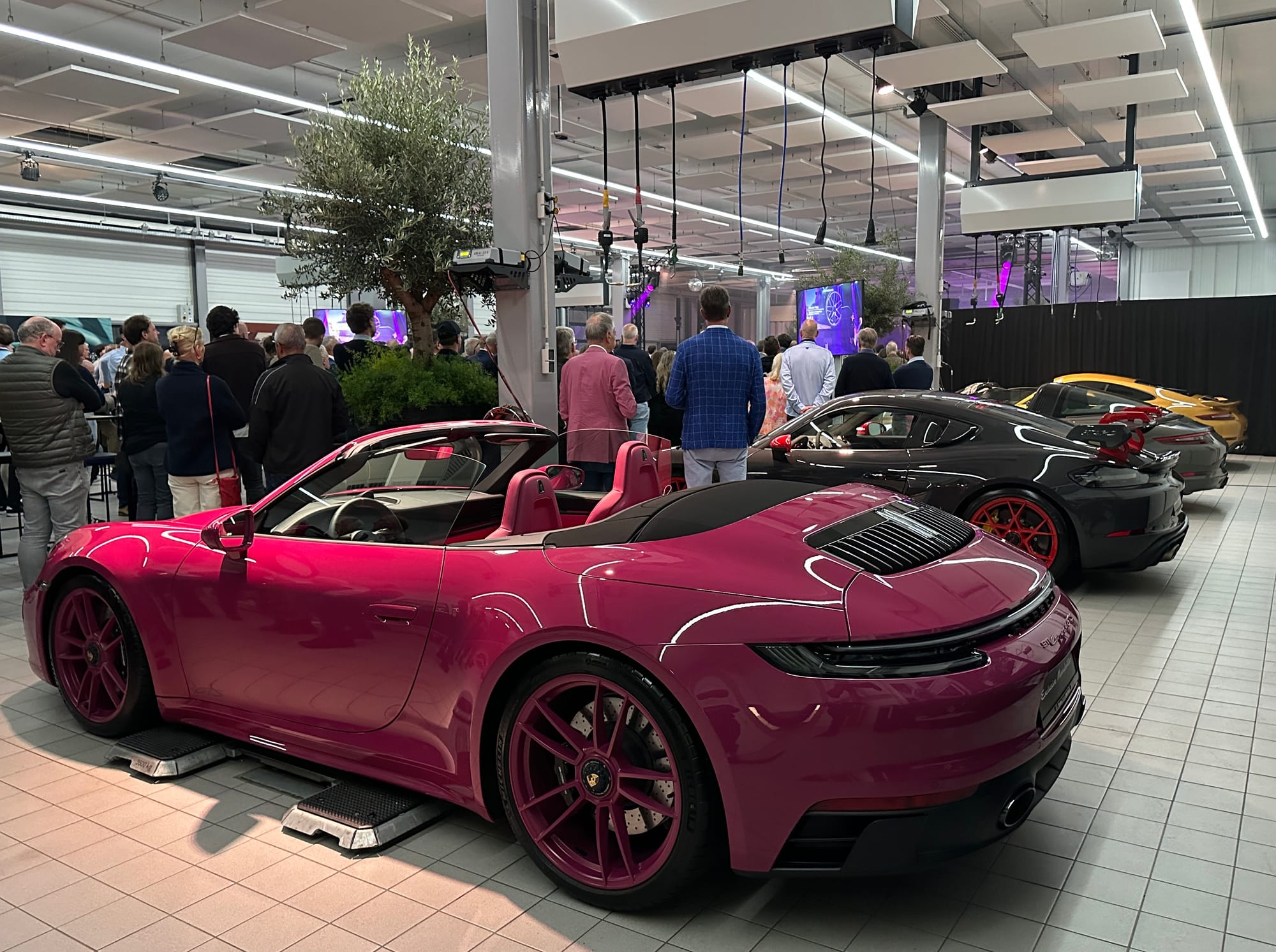 En nu was er bij het 20-jarig jubileum weer een hoogtepunt in de vorm van de eerste Porsche Exclusiv Manufaktur-showroom ter wereld. Alexander Fabig, directeur Porsche Individualisierung und Classic, was net als tien jaar geleden bij de première van het eerste Porsche Classic Center ter wereld ook voor deze opening overgekomen vanuit Stuttgart. Hij prees de inzet, de visie en de pioniersgeest van Mark Wegh, die leidde tot de beide locaties die ook voor het Duitse sportwagenmerk een mooi visitekaartje zijn en die ook internationale klandizie aantrekken. “Benieuwd welke opening Mark over tien jaar voor ons in petto heeft”, lachte Fabig. Namens Pon Porsche Import kwamen managing director Alice Schouten en retailmanager Berry Vlaanderen op het podium, die ook de inzet en betrokkenheid van Mark Wegh benoemden. Met een druk op de knop, waarmee vuurwerk en versieringen losgelaten werden, werd de officiële openingshandeling verricht.