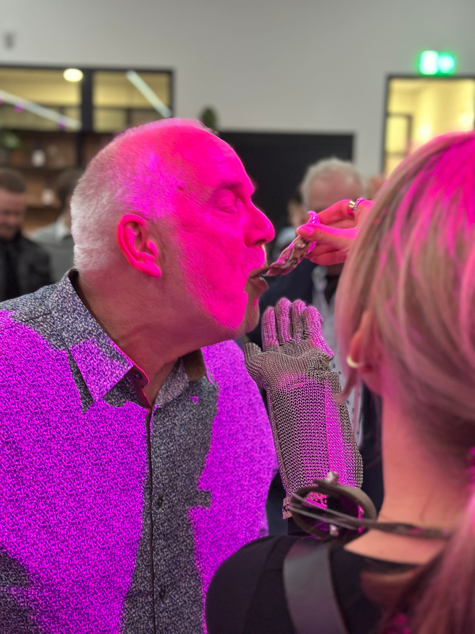 Zelfs wie niet tot de genodigden behoorde en naar binnen mocht, kwam dus buiten al volop aan zijn of haar trekken. Binnen was er natuurlijk nog veel meer moois te zien, zowel in de showroom als in de werkplaats, die als centrale ruimte voor de opening en de ontvangst in gebruik was. Zoals bij activiteiten van Porsche Centrum Gelderland gebruikelijk ontbrak het de aanwezigen aan niets: al dan niet alcoholische dranken, vergezeld van uiterst smaakvol en zeer gevarieerd fingerfood, plus oesters die, vakkundig ter plekke geopend en desgewenst voorzien van wat limoensap, tabasco of peper, door de mensen van de leverancier direct in de mond van de bezoeker werden gedeponeerd. Een heerlijke delicatesse!