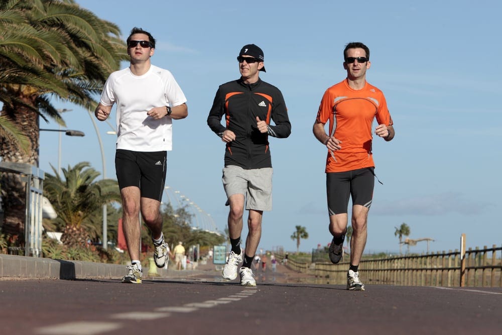 Porsche-fabriekscoureurs Richard Lietz, Timo Bernhard en Romain Dumas tijdens een fitnesskamp. (Foto: Porsche AG)