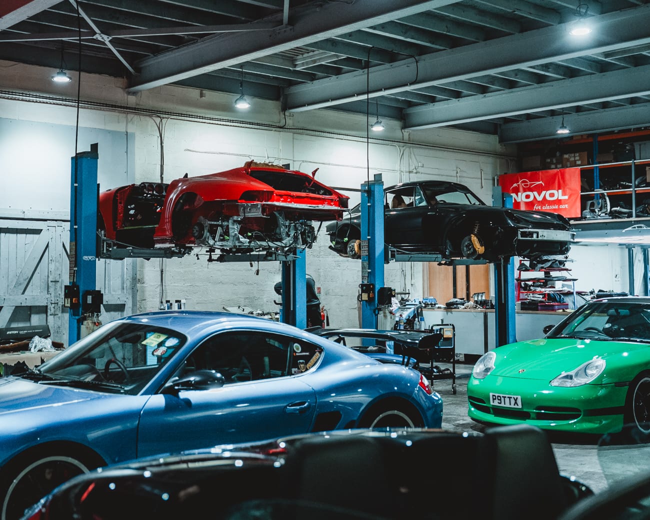 Aan de oppervlakte lijkt MLR een drukke Porsche-servicewerkplaats. Auto’s komen dagelijks binnen voor onderhoud, diagnose, onderstelwerkzaamheden, remupgrades en regulier servicewerk. Dat werk houdt de werkplaats draaiende en is altijd zo geweest.