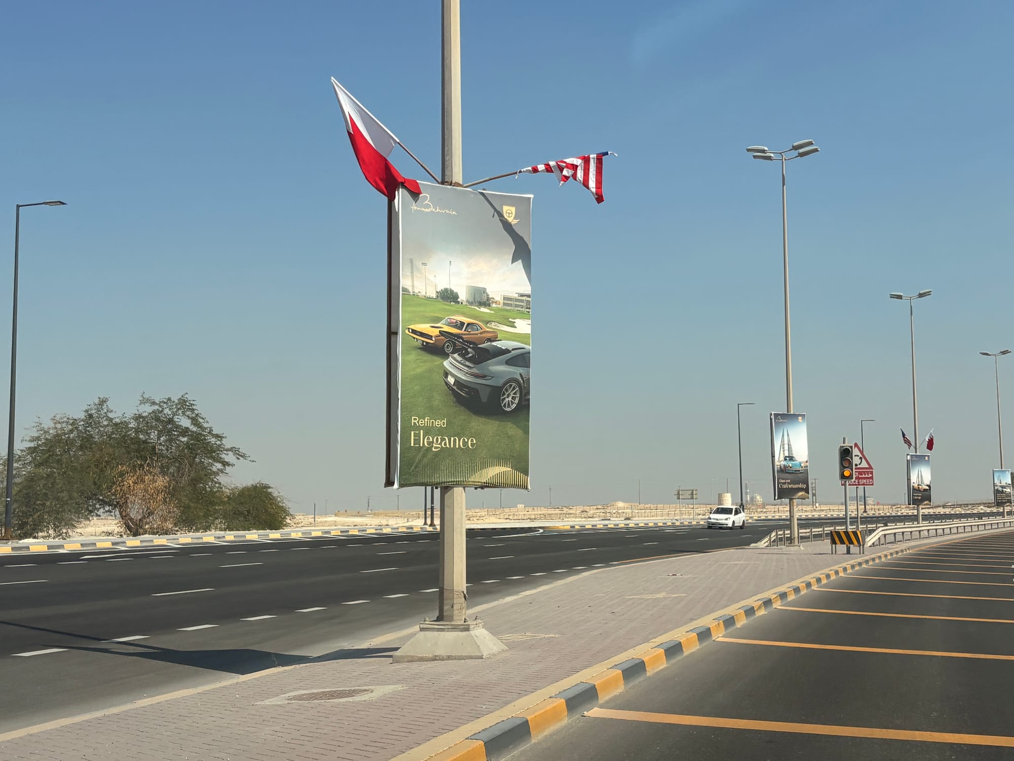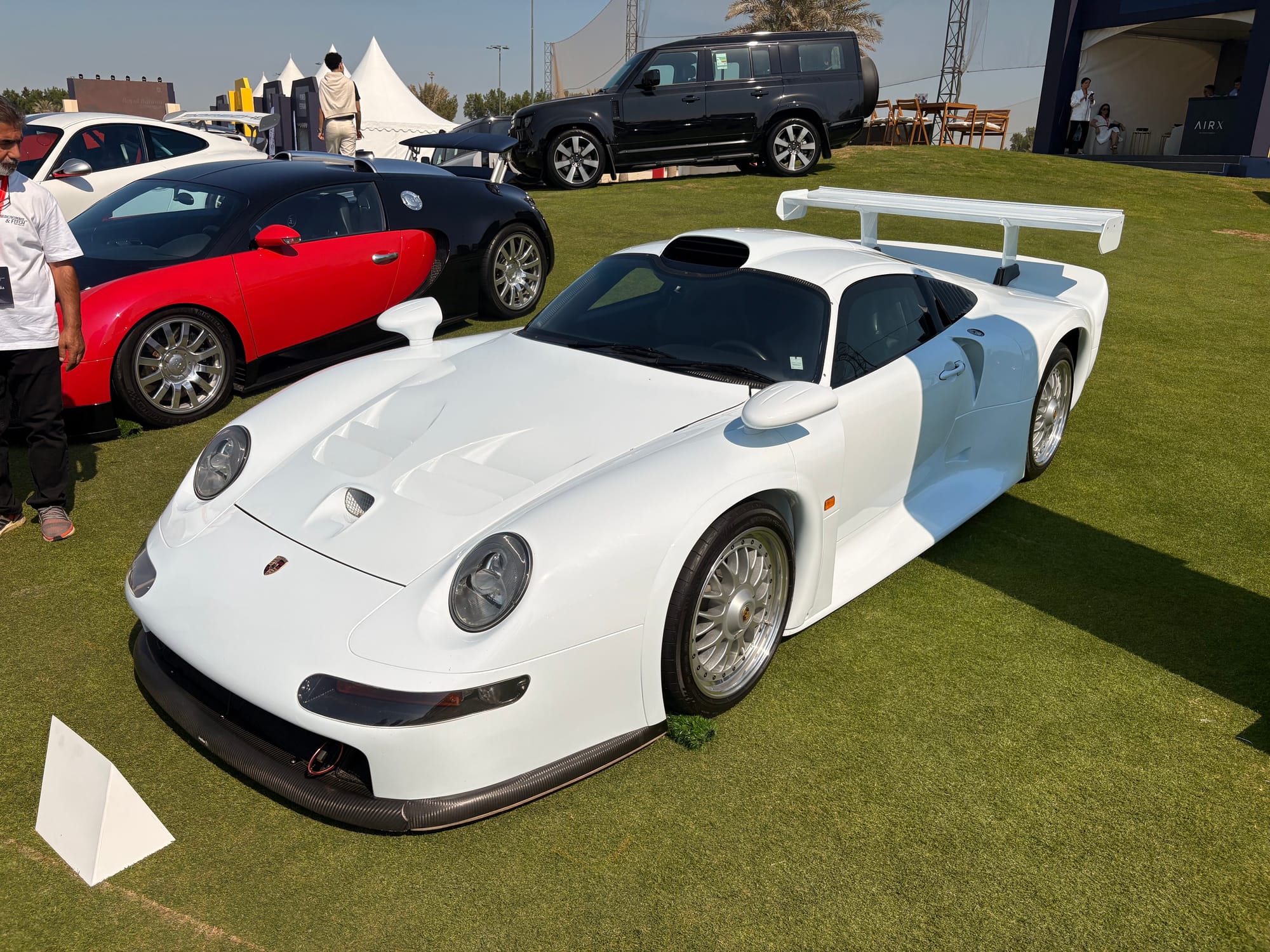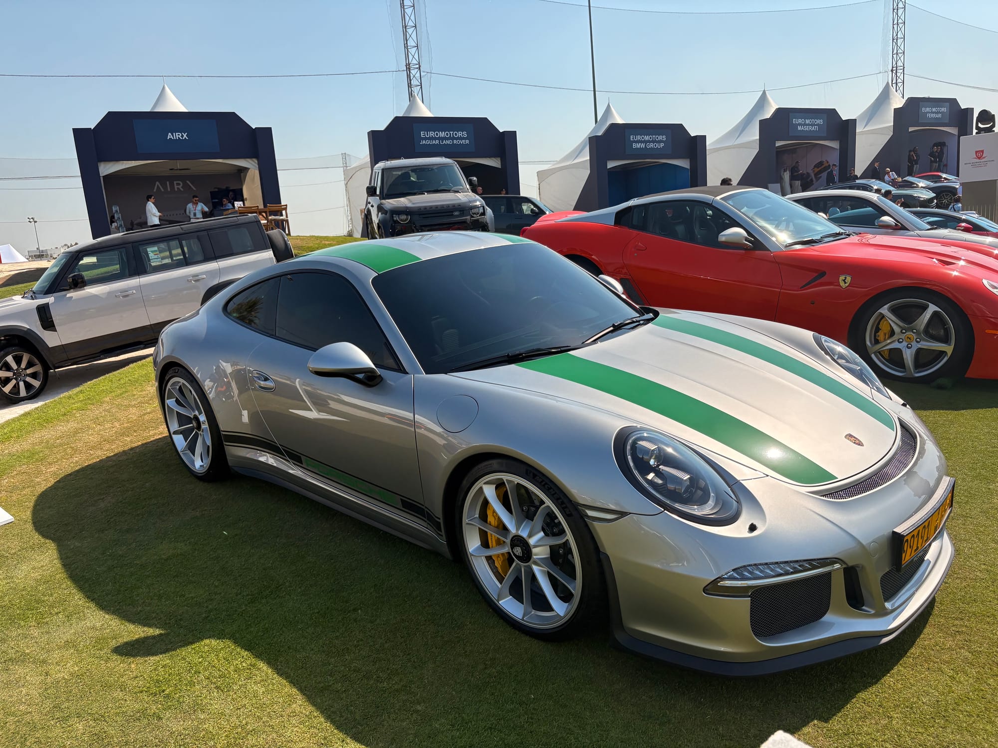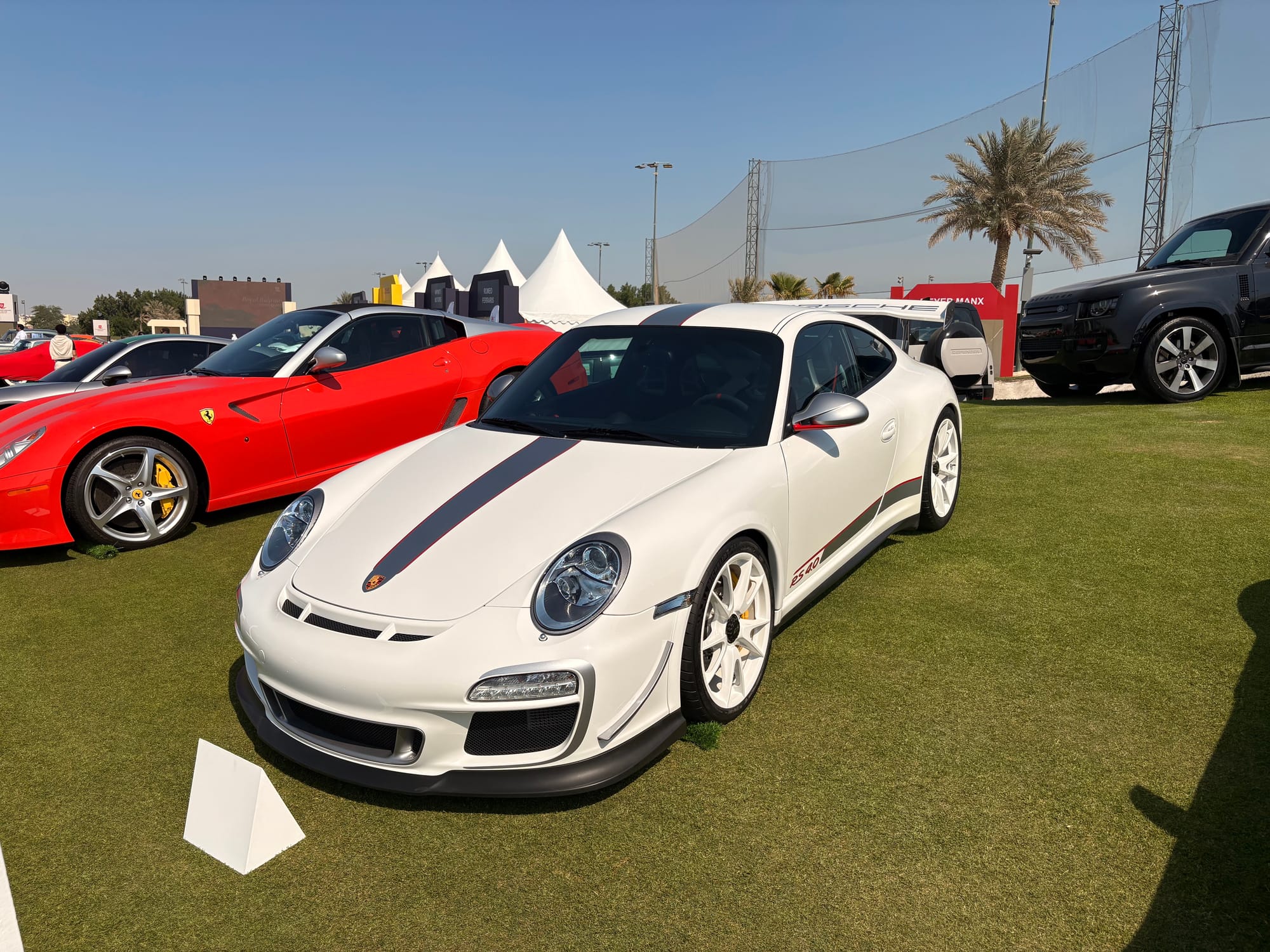 Langs de wegen vanaf het vliegveld en de uitvalswegen vanuit Manama hadden we al de nodige affiches ter aankondiging van het evenement gezien, waarbij er op het affiche met het motto “Class and craftsmanship” een oudere 911 te zien was en het affiche “Refined Elegance” een recentere 911 GT3 RS toonde. Dat beloofde al wat. Eenmaal bij het terrein aangekomen was het op het uur van de opening al flink druk. De toegezegde perskaart was per email verzonden en na het scannen van de bijbehorende QR-code kregen we een bandje voor de toegang. De auto’s op het gras van de golfbaan boden een fraaie aanblik.