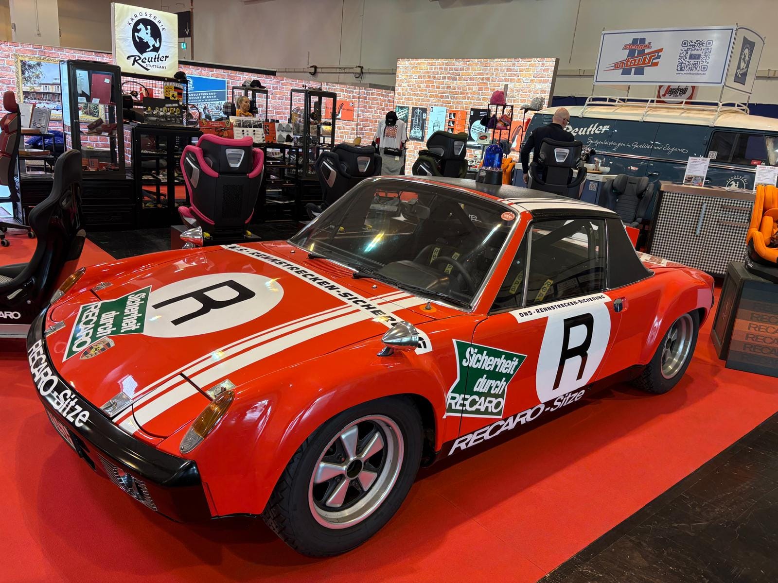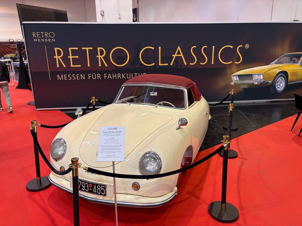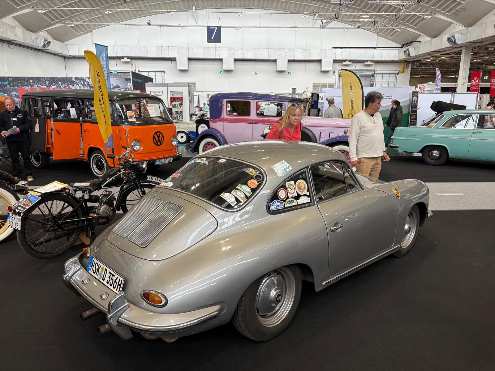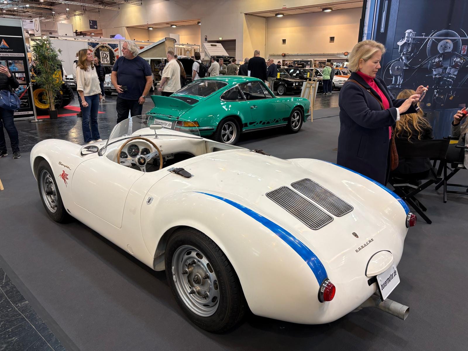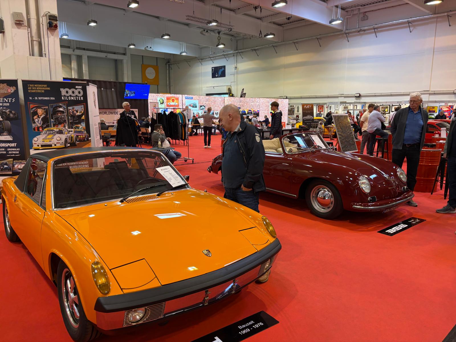 Porsche-clubs hebben een grote gezamenlijke presentatiestand in hal 7 met onder andere de nodige tractoren, een 914, transaxle-modellen 928 en 944 (waaronder zelfs een zeldzame Carrera GT, waarvan er slechts 406 gemaakt zijn), en de nodige 911’s. Maar ook hier: allemaal wel erg ruim van opzet, wat de indruk wekt dat de organisatie erg kwistig met de ruimte was. Een 356 Gläser Cabriolet staat op de eveneens forse stand van de organisatie, waar woensdag de openings-persconferentie plaatsvond, maar waar verder vooral lege tafels en stoelen staan en, althans ten tijde van ons bezoek, niets gebeurde. Leuk dan wel weer bij Carrosseriefabrik Reutter een originele 914 van de ONS-Streckensicherung, de baancommissarissen in de Duitse autosport, ooit in het leven geroepen door Porsche-testrijder en -coureur Herbert Linge.