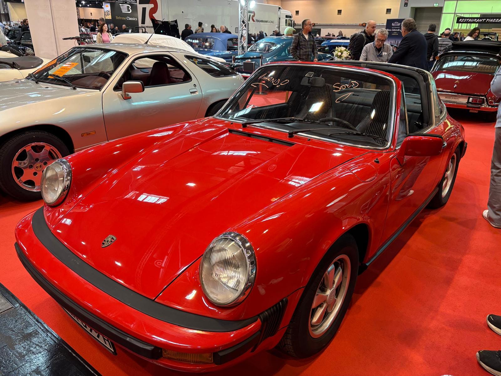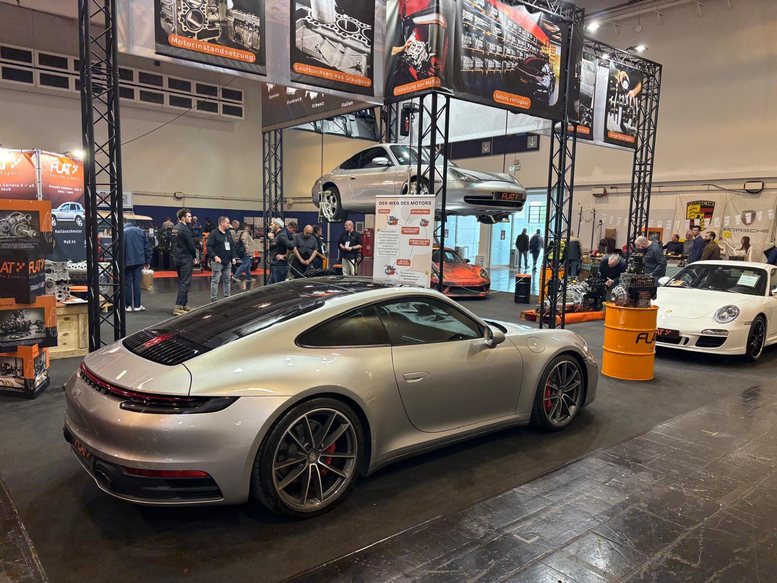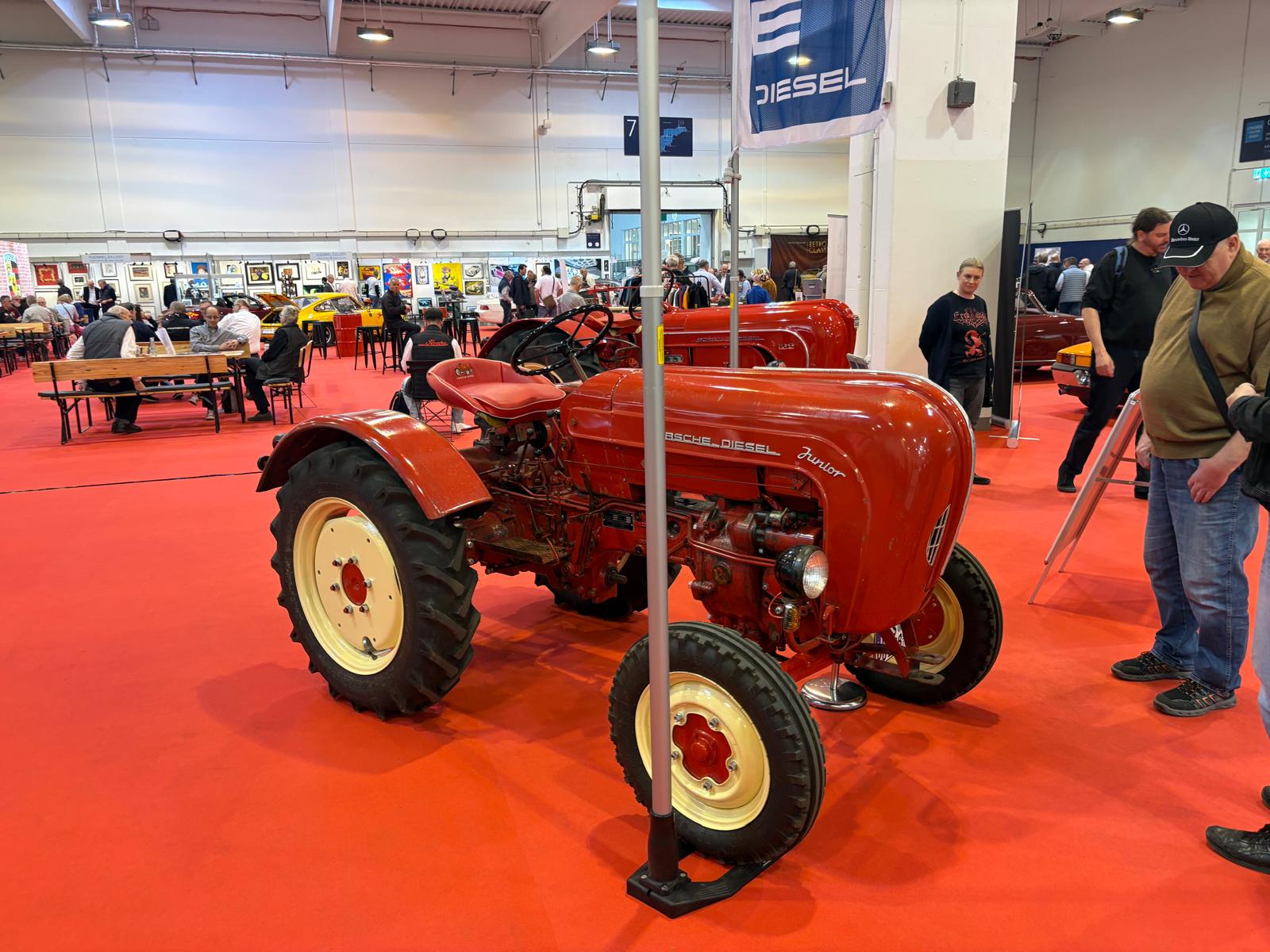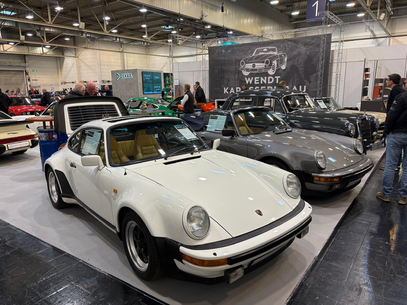 Porsche-clubs hebben een grote gezamenlijke presentatiestand in hal 7 met onder andere de nodige tractoren, een 914, transaxle-modellen 928 en 944 (waaronder zelfs een zeldzame Carrera GT, waarvan er slechts 406 gemaakt zijn), en de nodige 911’s. Maar ook hier: allemaal wel erg ruim van opzet, wat de indruk wekt dat de organisatie erg kwistig met de ruimte was. Een 356 Gläser Cabriolet staat op de eveneens forse stand van de organisatie, waar woensdag de openings-persconferentie plaatsvond, maar waar verder vooral lege tafels en stoelen staan en, althans ten tijde van ons bezoek, niets gebeurde. Leuk dan wel weer bij Carrosseriefabrik Reutter een originele 914 van de ONS-Streckensicherung, de baancommissarissen in de Duitse autosport, ooit in het leven geroepen door Porsche-testrijder en -coureur Herbert Linge.