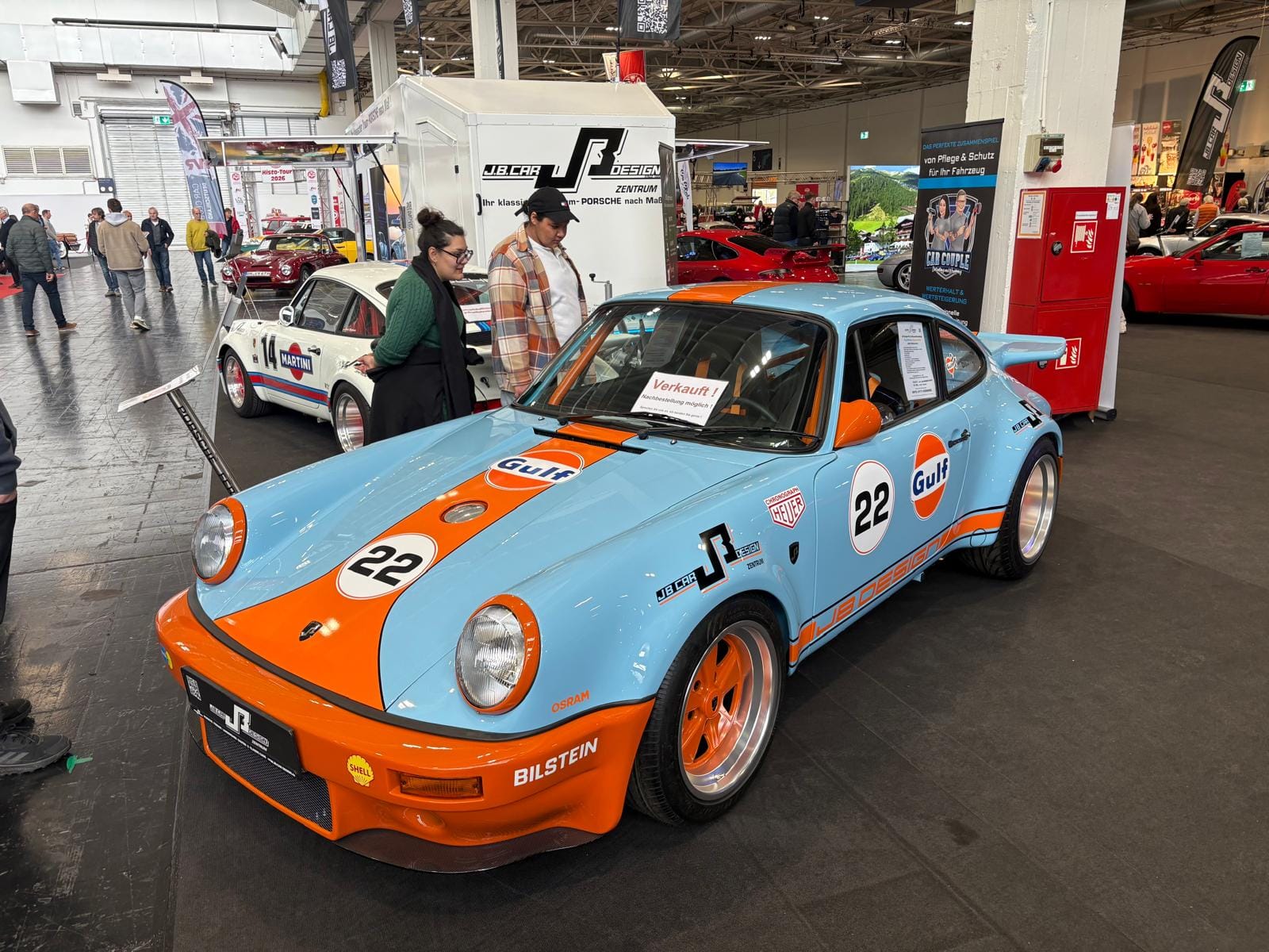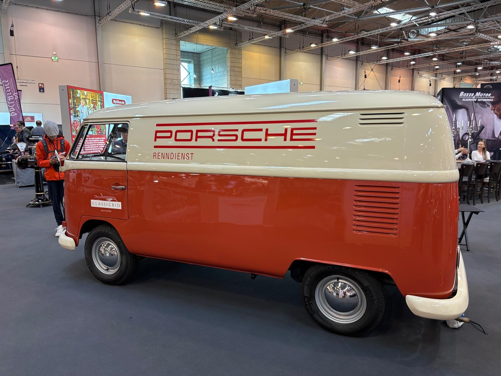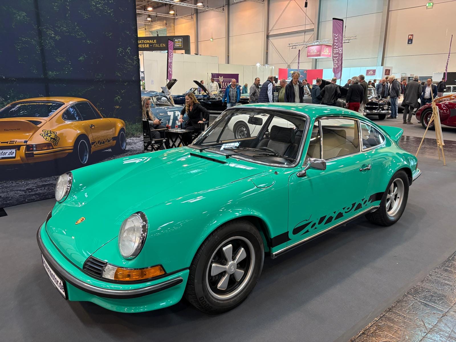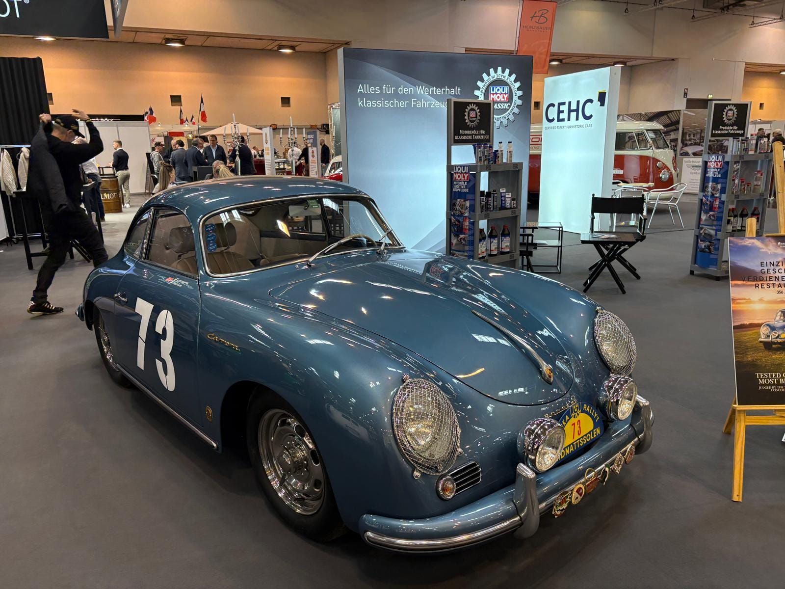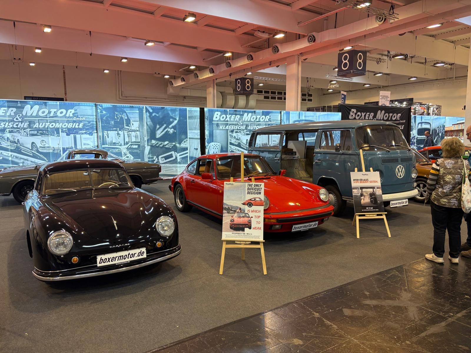 Porsche-clubs hebben een grote gezamenlijke presentatiestand in hal 7 met onder andere de nodige tractoren, een 914, transaxle-modellen 928 en 944 (waaronder zelfs een zeldzame Carrera GT, waarvan er slechts 406 gemaakt zijn), en de nodige 911’s. Maar ook hier: allemaal wel erg ruim van opzet, wat de indruk wekt dat de organisatie erg kwistig met de ruimte was. Een 356 Gläser Cabriolet staat op de eveneens forse stand van de organisatie, waar woensdag de openings-persconferentie plaatsvond, maar waar verder vooral lege tafels en stoelen staan en, althans ten tijde van ons bezoek, niets gebeurde. Leuk dan wel weer bij Carrosseriefabrik Reutter een originele 914 van de ONS-Streckensicherung, de baancommissarissen in de Duitse autosport, ooit in het leven geroepen door Porsche-testrijder en -coureur Herbert Linge.