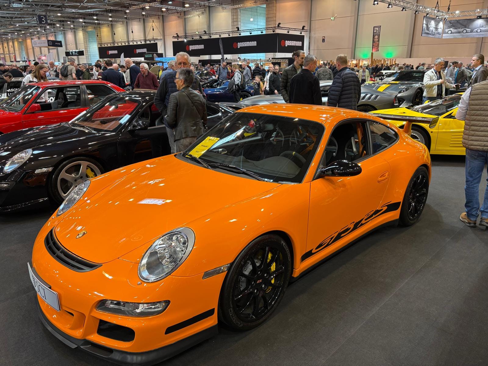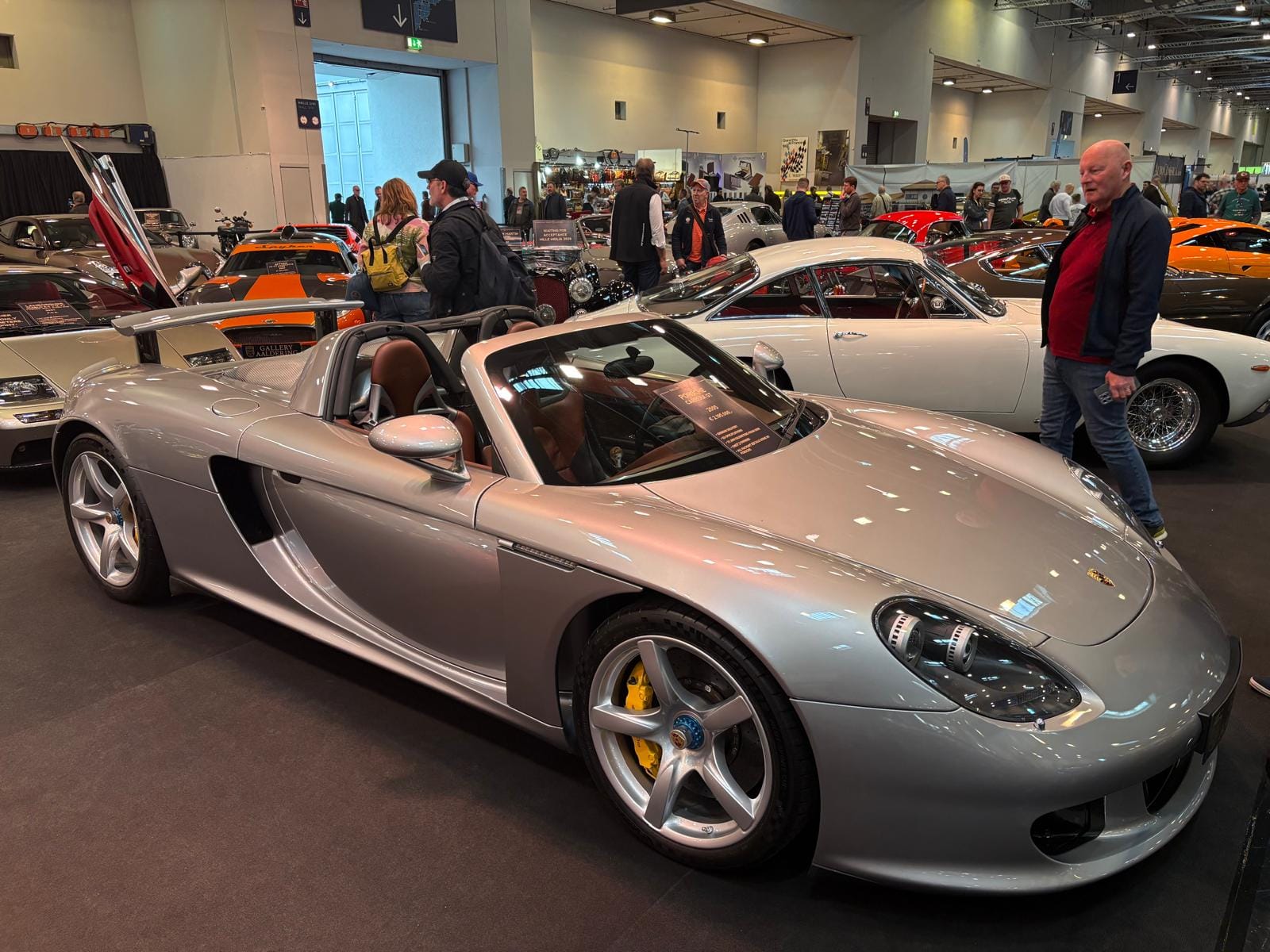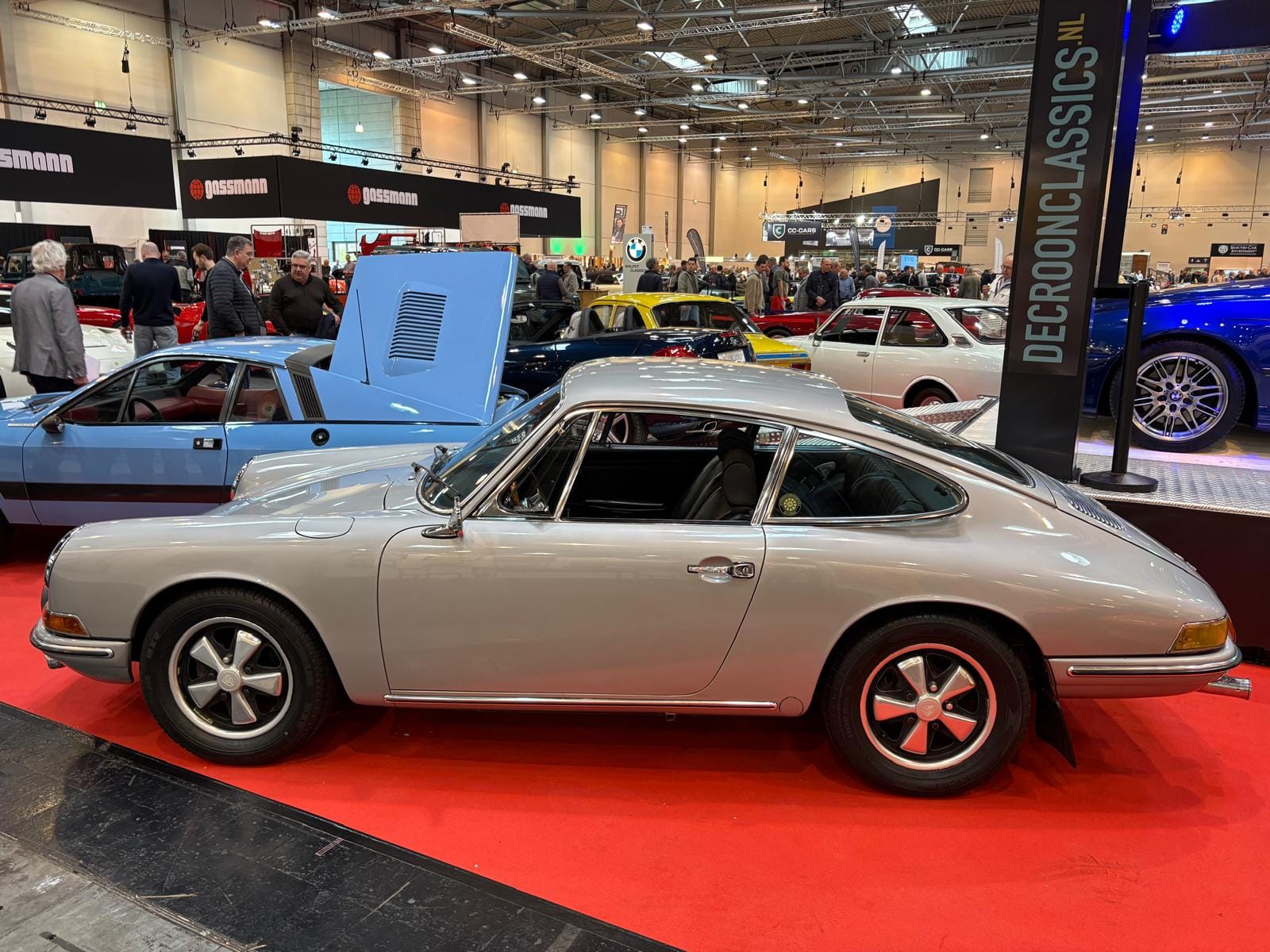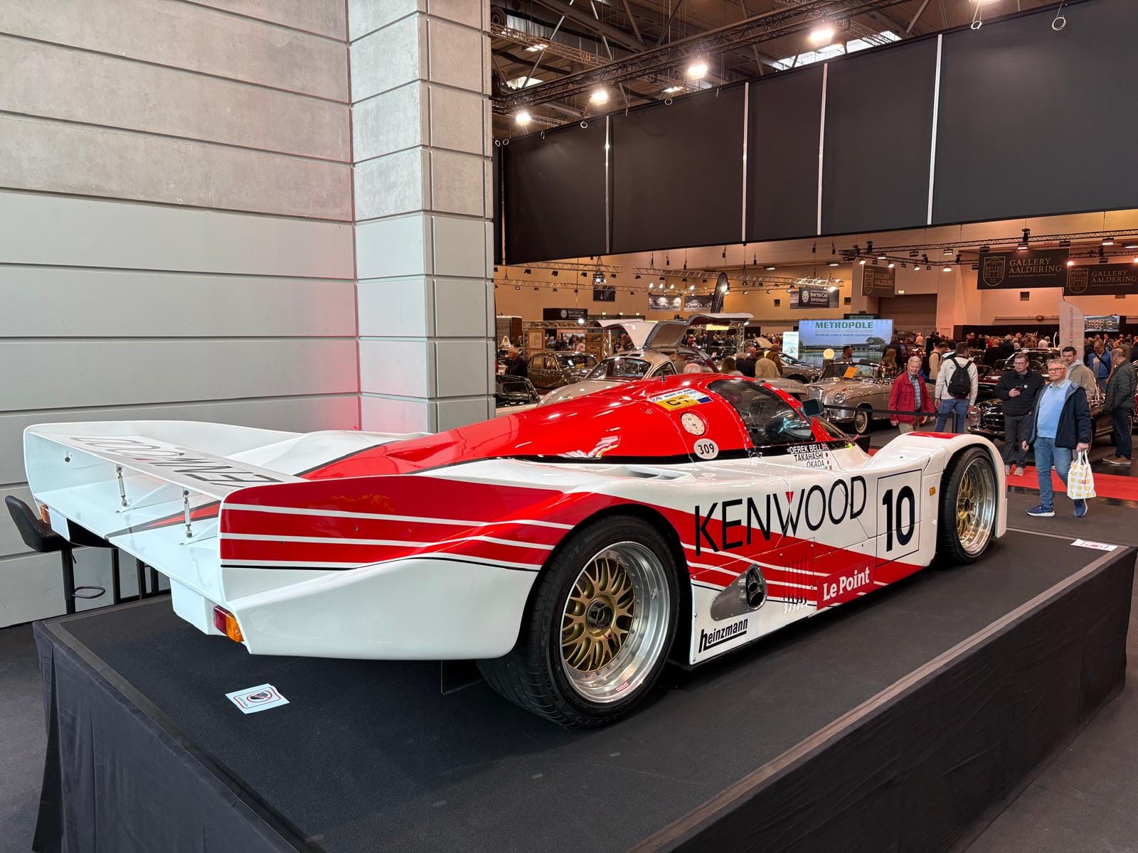 Hal drie is de grootste hal en traditioneel ook de interessantste, dat is in ieder geval niet veranderd. De aangekondigde grote thematentoonstelling over Bugatti is een tegenvaller: slechts drie auto’s staan er, en twee ervan zijn dan ook nog “recreations” van de zogeheten “Missing Royales”. Drie Nederlandse specialisten vullen een groot deel van de hal: Munsterhuis, Metropool en Aaldering. Bij Aaldering staan zowel de Porsche Carrera GT als de 918 Spyder. De Duitse handelaar Gassmann, die een flink gedeelte van de standruimte tegen de zijwand bezet, heeft onder andere de 962 in Kenwood-kleuren in het aanbod, die eind januari nog in Parijs tijdens Rétromobile op een veiling een andere eigenaar vond. De auto, met Engels kenteken en daarmee geschikt voor gebruik op de weg, kennen we goed: hij was jarenlang in het bezit van de Brit Martin Overington, die ook de eigenaar is van het bij autosportliefhebbers bekende Hotel de France in La-Chartre-sur-le-Loir in de buurt van Le Mans.