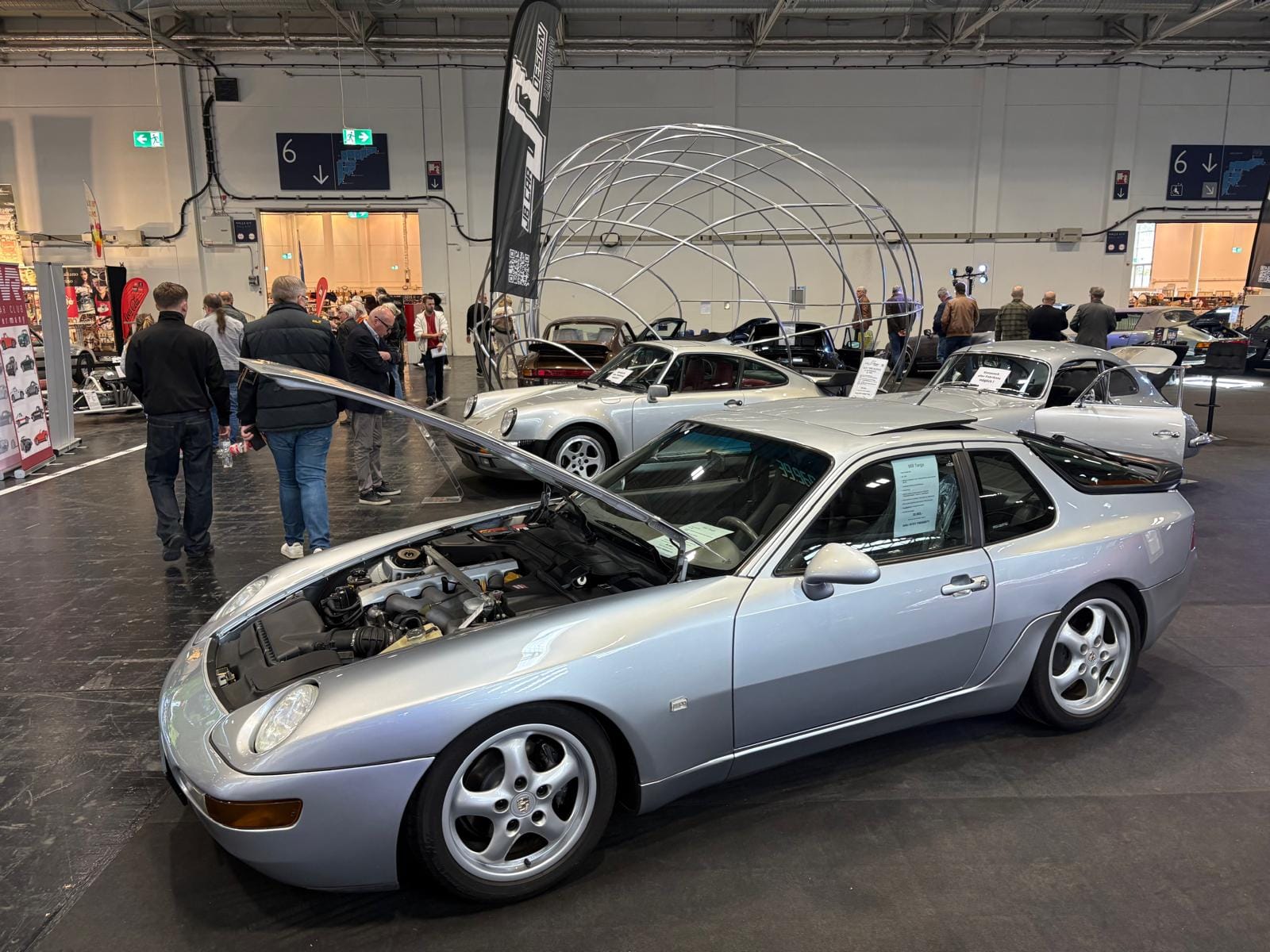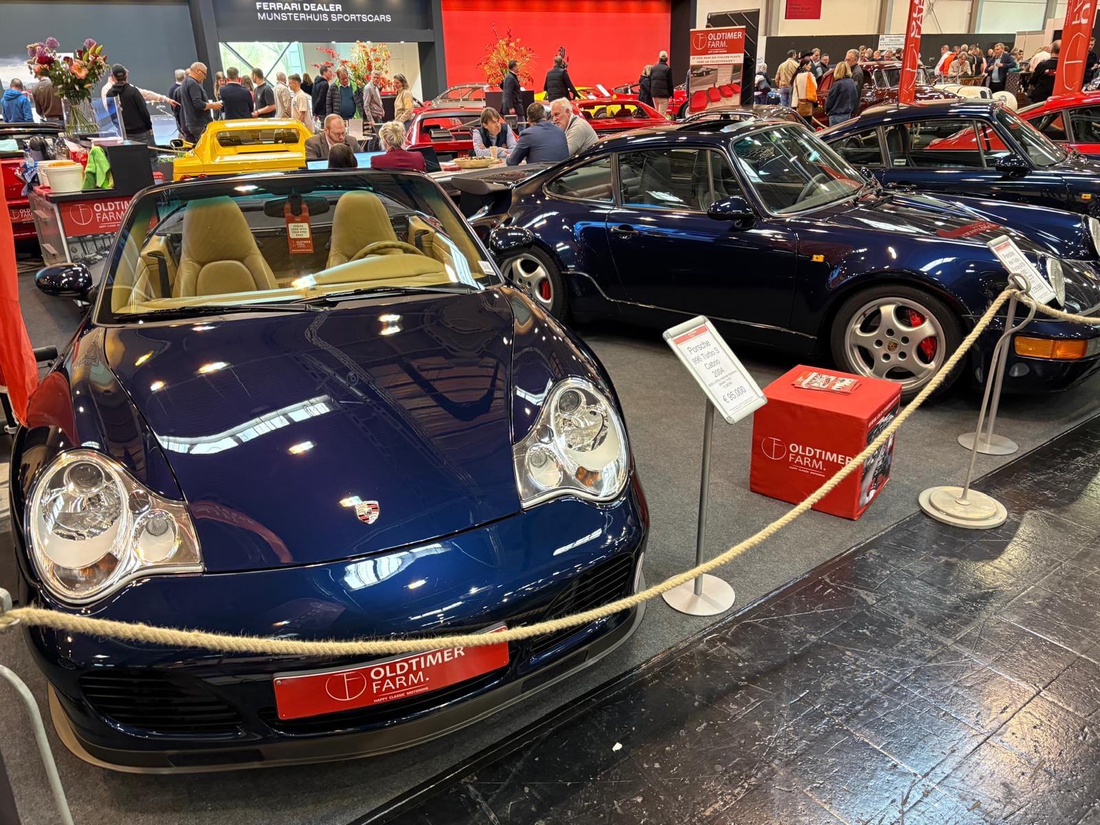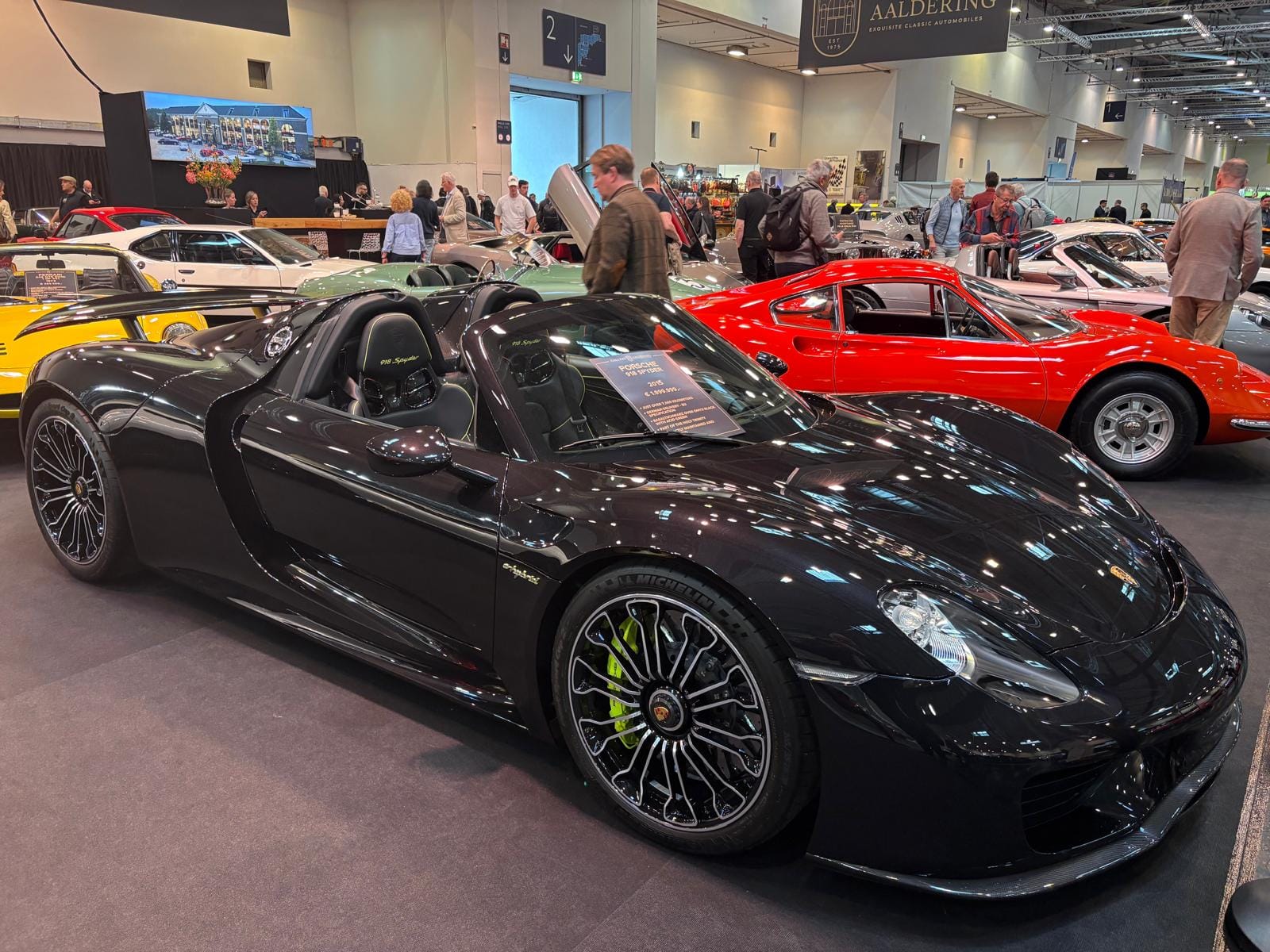Hal drie is de grootste hal en traditioneel ook de interessantste, dat is in ieder geval niet veranderd. De aangekondigde grote thematentoonstelling over Bugatti is een tegenvaller: slechts drie auto’s staan er, en twee ervan zijn dan ook nog “recreations” van de zogeheten “Missing Royales”. Drie Nederlandse specialisten vullen een groot deel van de hal: Munsterhuis, Metropool en Aaldering. Bij Aaldering staan zowel de Porsche Carrera GT als de 918 Spyder. De Duitse handelaar Gassmann, die een flink gedeelte van de standruimte tegen de zijwand bezet, heeft onder andere de 962 in Kenwood-kleuren in het aanbod, die eind januari nog in Parijs tijdens Rétromobile op een veiling een andere eigenaar vond. De auto, met Engels kenteken en daarmee geschikt voor gebruik op de weg, kennen we goed: hij was jarenlang in het bezit van de Brit Martin Overington, die ook de eigenaar is van het bij autosportliefhebbers bekende Hotel de France in La-Chartre-sur-le-Loir in de buurt van Le Mans.