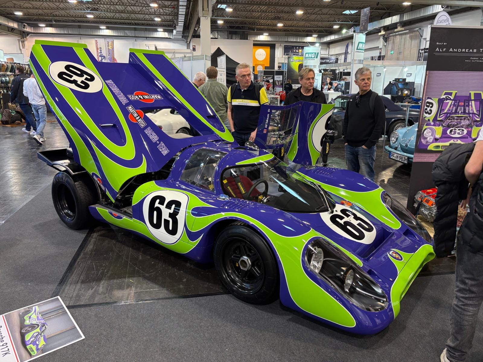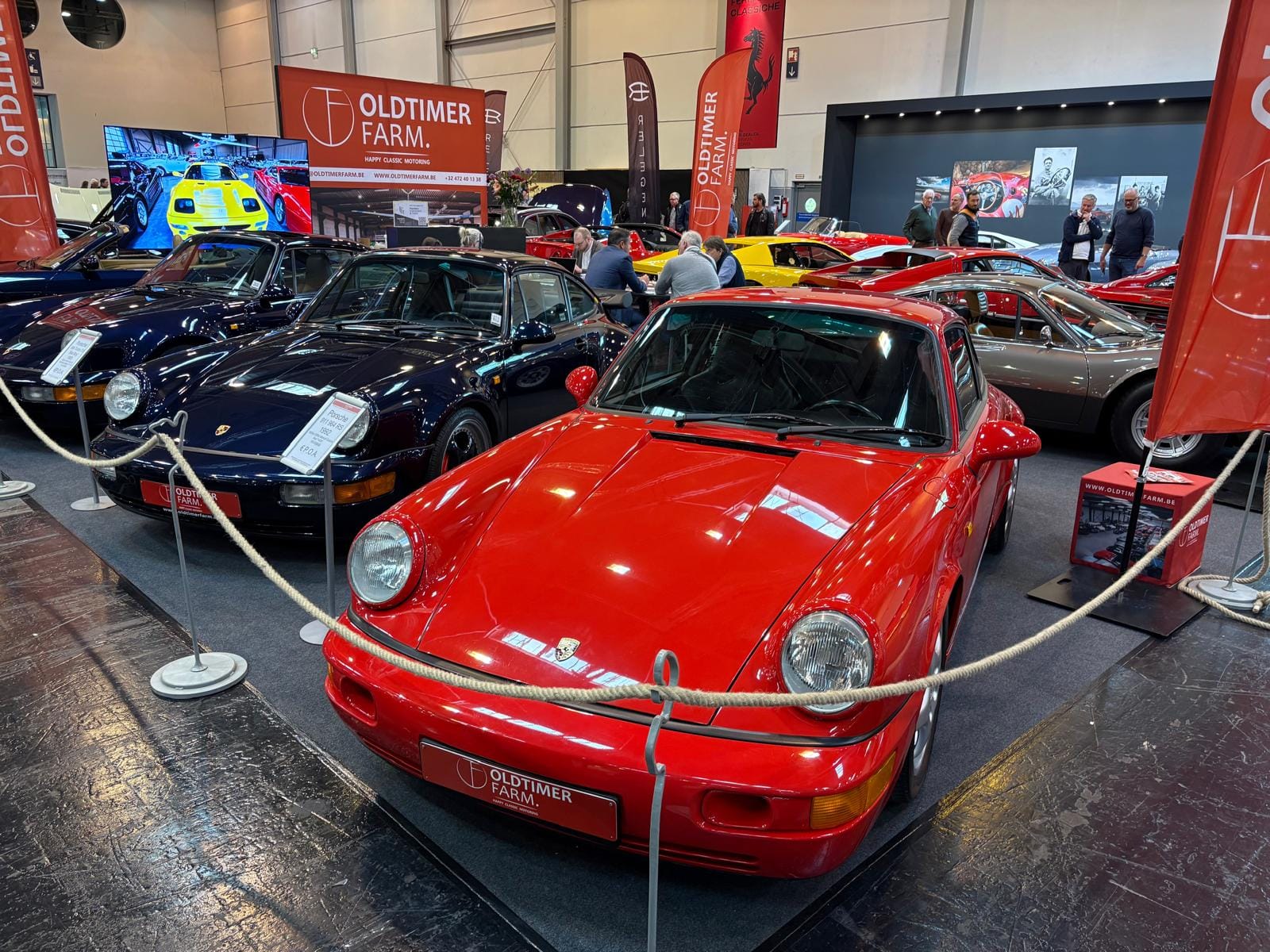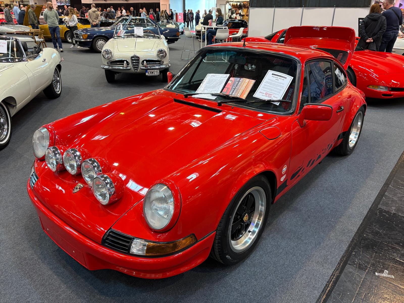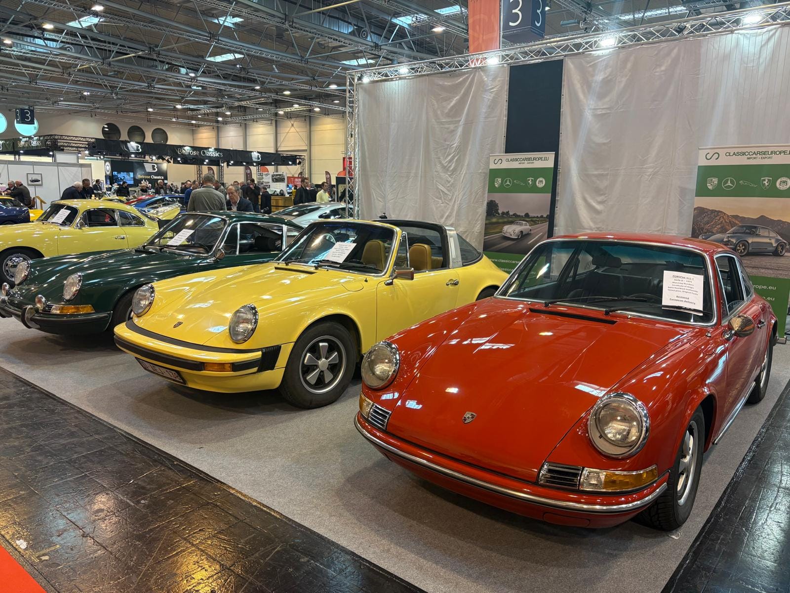 Hal drie is de grootste hal en traditioneel ook de interessantste, dat is in ieder geval niet veranderd. De aangekondigde grote thematentoonstelling over Bugatti is een tegenvaller: slechts drie auto’s staan er, en twee ervan zijn dan ook nog “recreations” van de zogeheten “Missing Royales”. Drie Nederlandse specialisten vullen een groot deel van de hal: Munsterhuis, Metropool en Aaldering. Bij Aaldering staan zowel de Porsche Carrera GT als de 918 Spyder. De Duitse handelaar Gassmann, die een flink gedeelte van de standruimte tegen de zijwand bezet, heeft onder andere de 962 in Kenwood-kleuren in het aanbod, die eind januari nog in Parijs tijdens Rétromobile op een veiling een andere eigenaar vond. De auto, met Engels kenteken en daarmee geschikt voor gebruik op de weg, kennen we goed: hij was jarenlang in het bezit van de Brit Martin Overington, die ook de eigenaar is van het bij autosportliefhebbers bekende Hotel de France in La-Chartre-sur-le-Loir in de buurt van Le Mans.