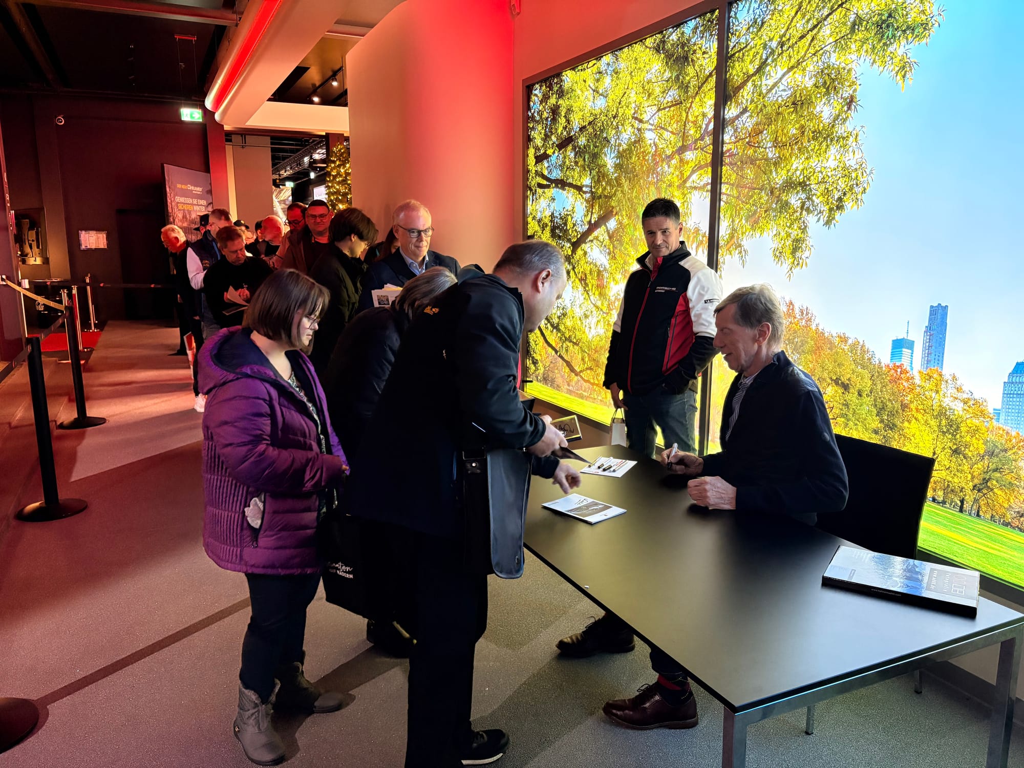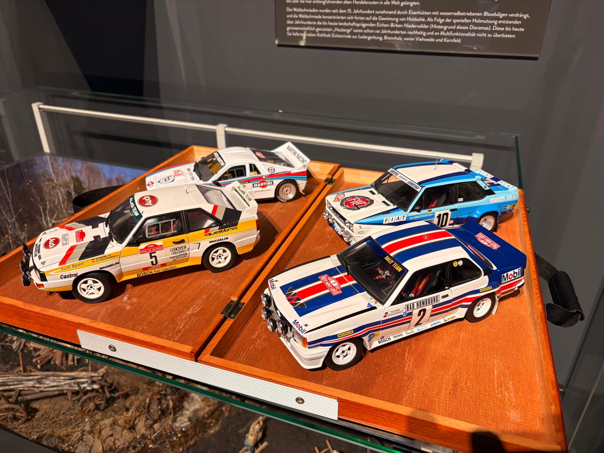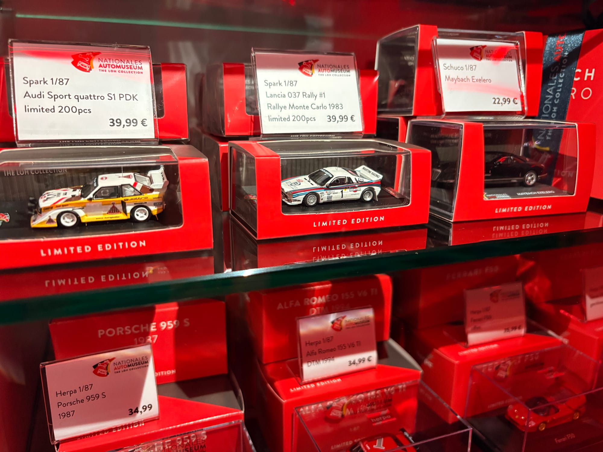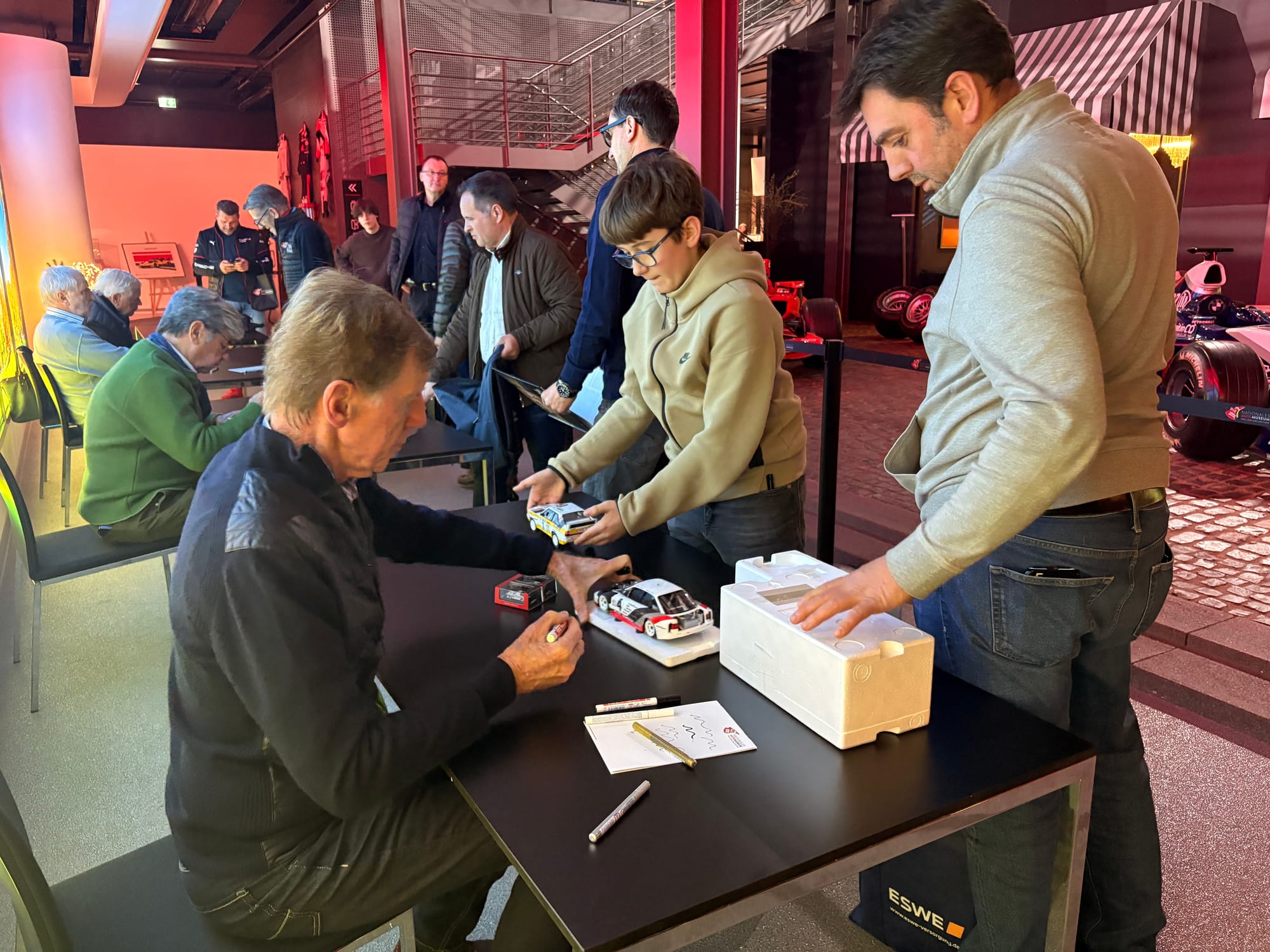 Voor bezoekers opende de museumcollectie om 13.00 uur en op dat moment stond er al een lange wachtrij voor de ingang. Anderen hadden de tijd goed besteed door in de rijk gesorteerde museumwinkel boeken of modelauto’s te kopen om die te kunnen laten signeren. Speciaal voor de gelegenheid had het museum twee Röhrl-auto’s in schaal 1:87 laten vervaardigen in een gelimiteerde oplage van 200 stuks, de Audi Sport quattro S1 en een Lancia 037. De witte Porsche 959 S was er al eerder in die schaal. De reguliere museumcollectie is tijdens de wintermaanden normaliter gesloten, alleen de speciale expositie rond de historie van Grand Prix-auto’s is te bezoeken. Wie een kaartje had voor de ‘Tag der Legenden’ kon echter ook in alle rust de rest van het museum bezichtigen, zich zoals gezegd bij de Audi Sport quattro laten fotograferen en zich te goed doen aan verse koffiespecialiteiten of andere versnaperingen.