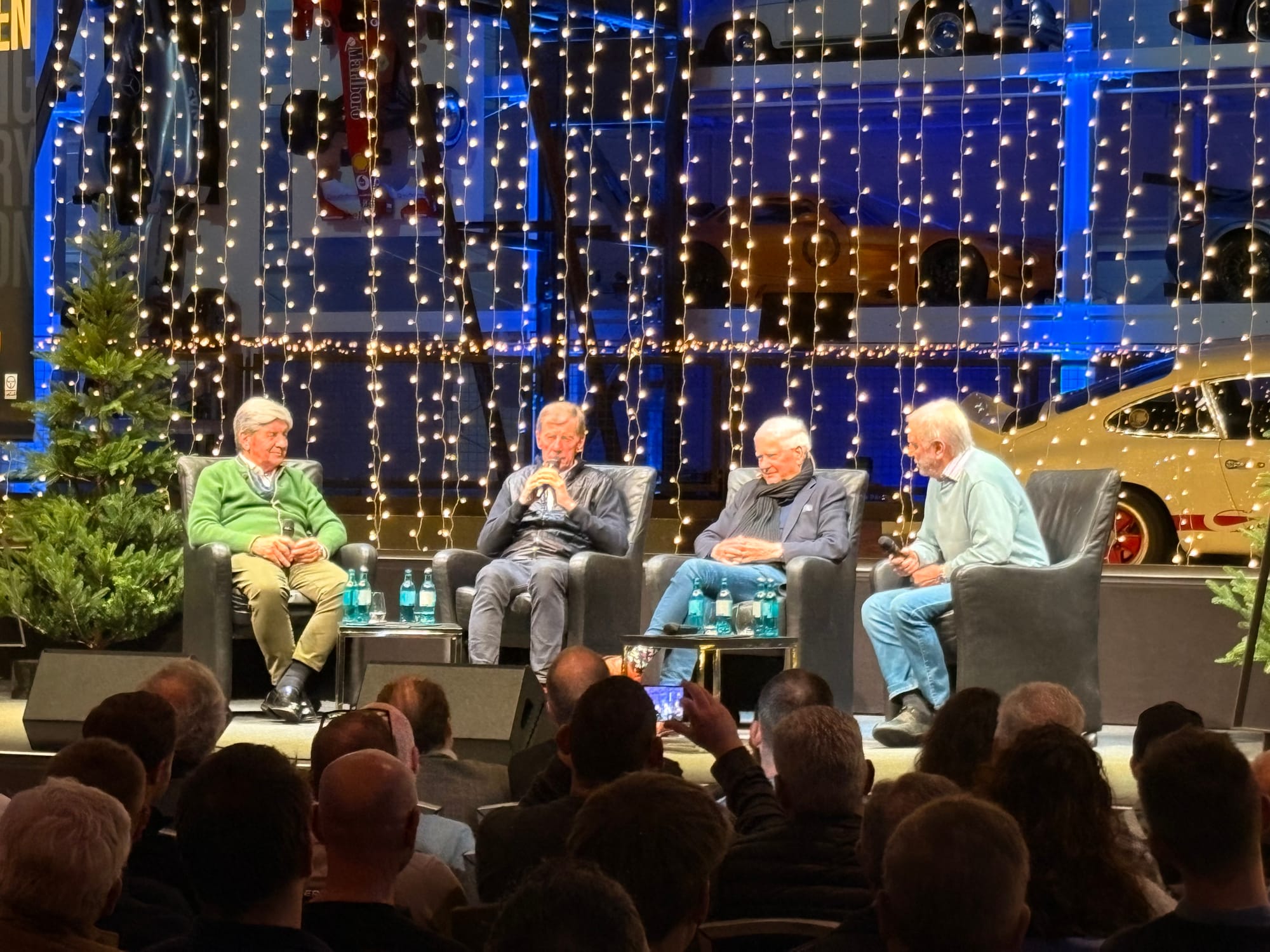 Om 16.00 uur begon het programma op het podium met naast Röhrl ook diens jarenlange bijrijder Christian Geistdörfer en Porsche-ingenieur Roland Kussmaul als gesprekspartners, geïnterviewd door oud-coureur, auteur en autosportkenner Eckhard Schimpf. Het werd een geanimeerd gesprek waarin Röhrl en de anderen terugblikten op de autosport in de jaren zeventig en tachtig en wat ze daarin bereikten. “Ik ontdekte al snel dat ik iets bijzonders kon, maar ik heb nooit gedacht dat ik iets bijzonders ben”, zei Röhrl, waarmee hij een aspect benoemde dat ongetwijfeld van groot belang is voor zijn nog steeds enorme populariteit. Geistdörfer stelde dat hij het feit dat hij nog leeft, aan Röhrls uitzonderlijke rijcapaciteiten te danken heeft: “Bij andere rijders had ik sommige ongelukken waarschijnlijk niet overleefd.” Kussmaul legde uit waarom het voor een technicus niet zo eenvoudig is om met Röhrl te werken: “Ook als een auto niet goed is, kan hij er hard mee gaan, je moet hem goed kennen om het verschil te merken en dan te weten wat je moet doen.”