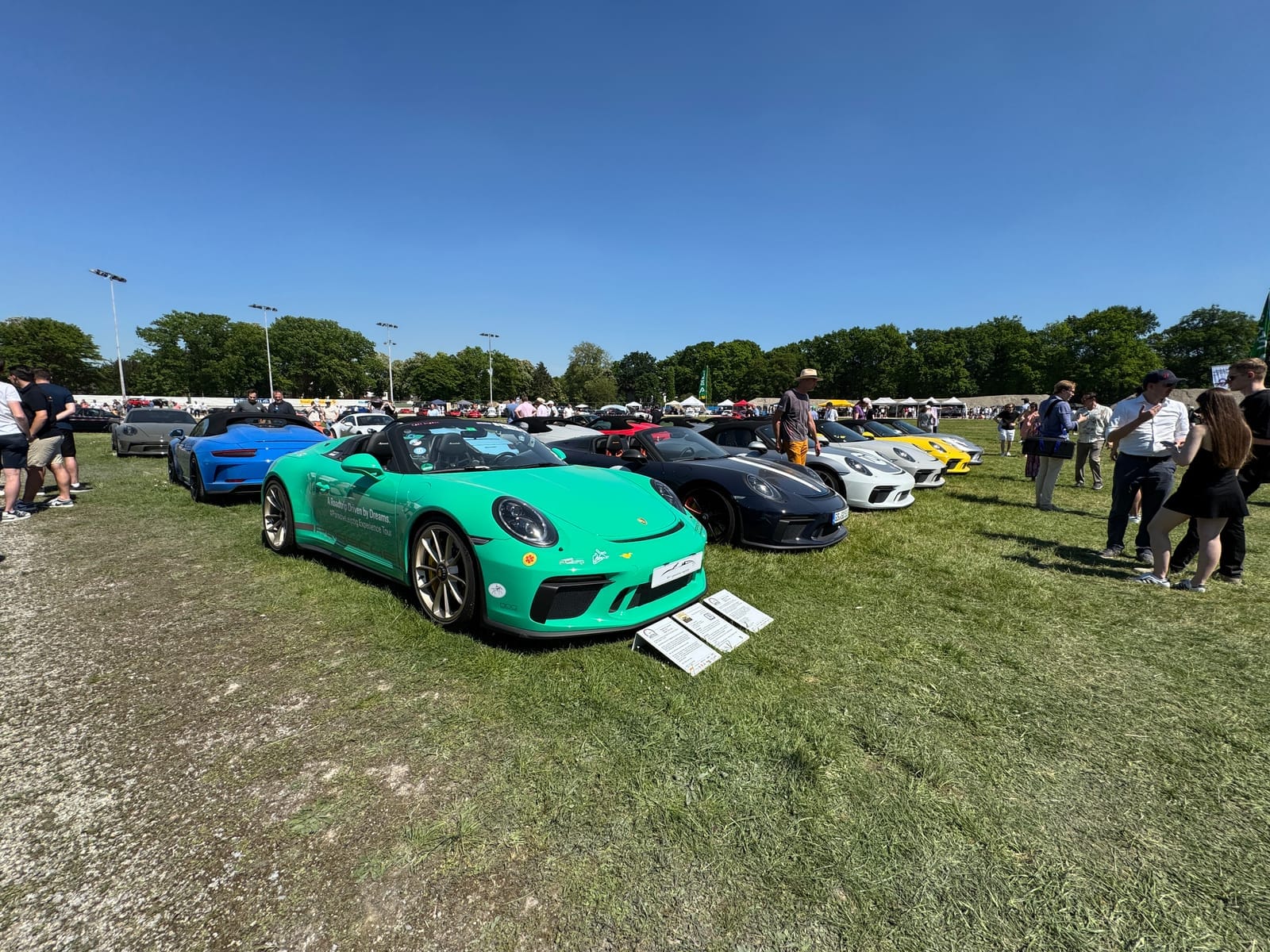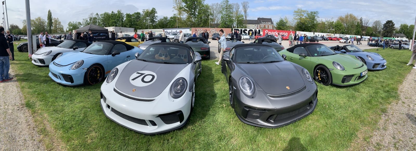 En ook dit jaar is een van de hoogtepunten op Dinslaken weer een verzameling van 911 Speedsters. De drijvende kracht hierachter is Jacob Achenbach. Een jongeman die samen met zijn vader Sebastian "991 Speedster Registry" heeft opgericht en het Registry inmiddels samen tot een groot succes en hoogte hebben weten te brengen. Porsche Centrum Gelderland ondersteund ze. Dit jaar hebben zich naar verluid al 60 Speedster ingeschreven vanuit heel de wereld mag je wel zeggen, er komt er zelfs een uit Saudi-Arabië.