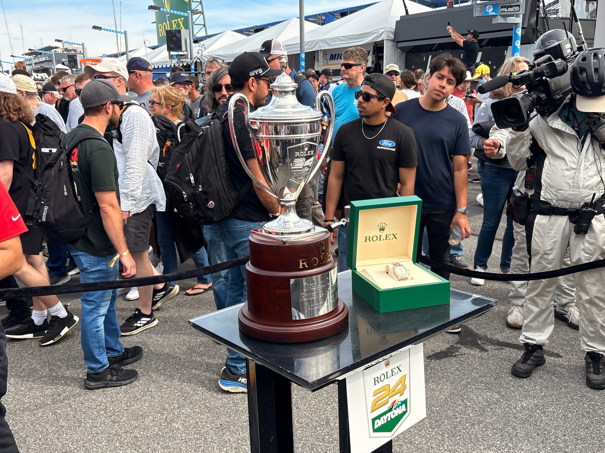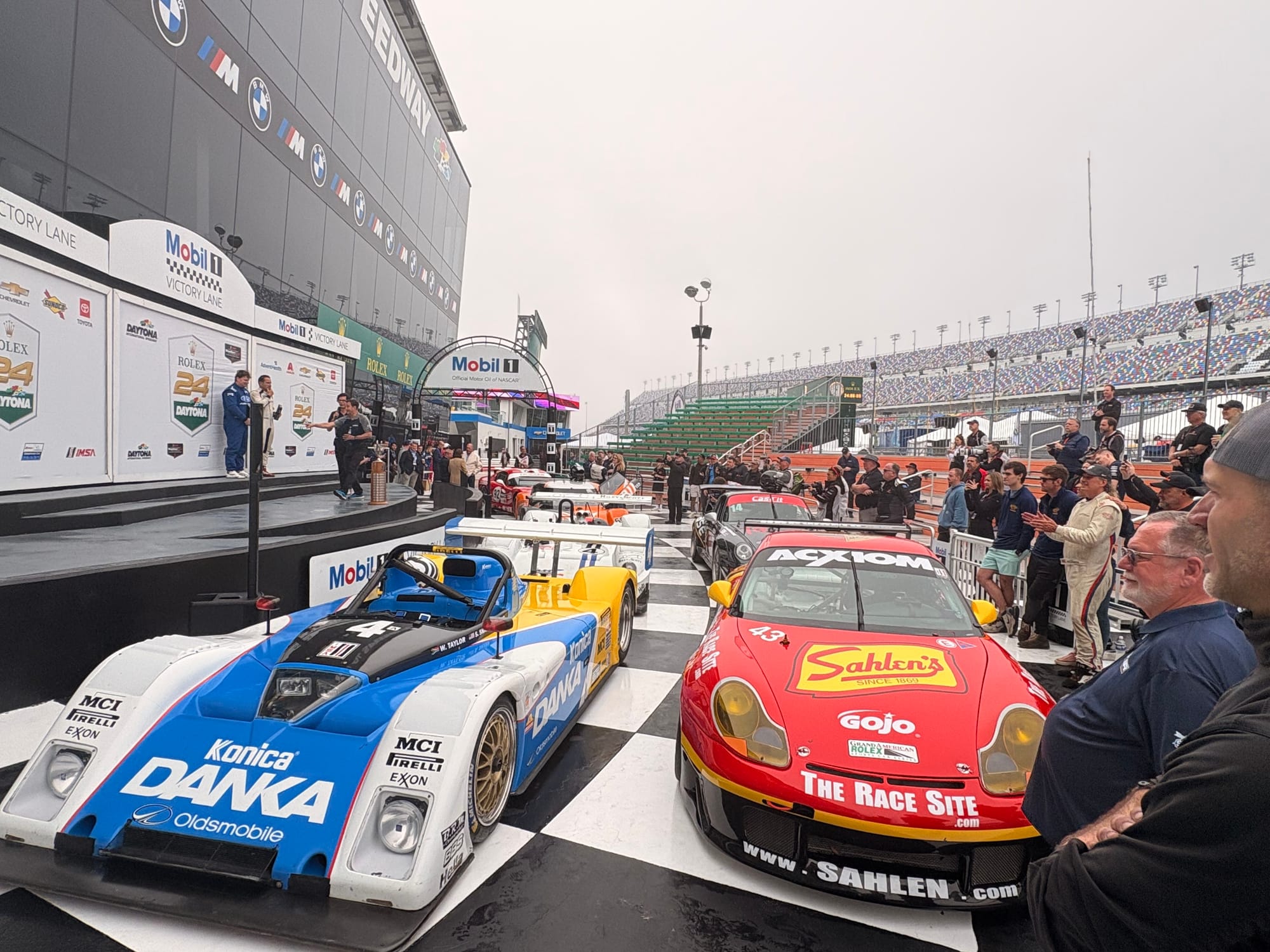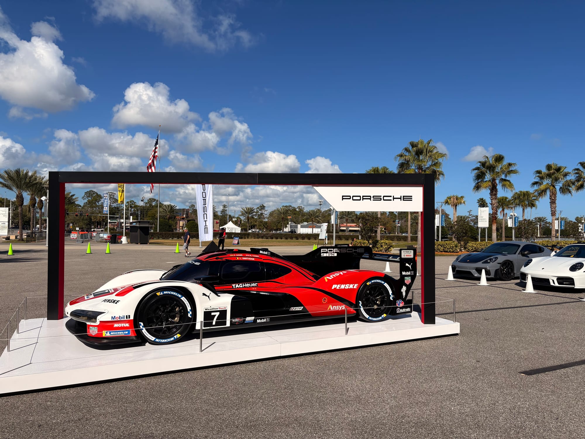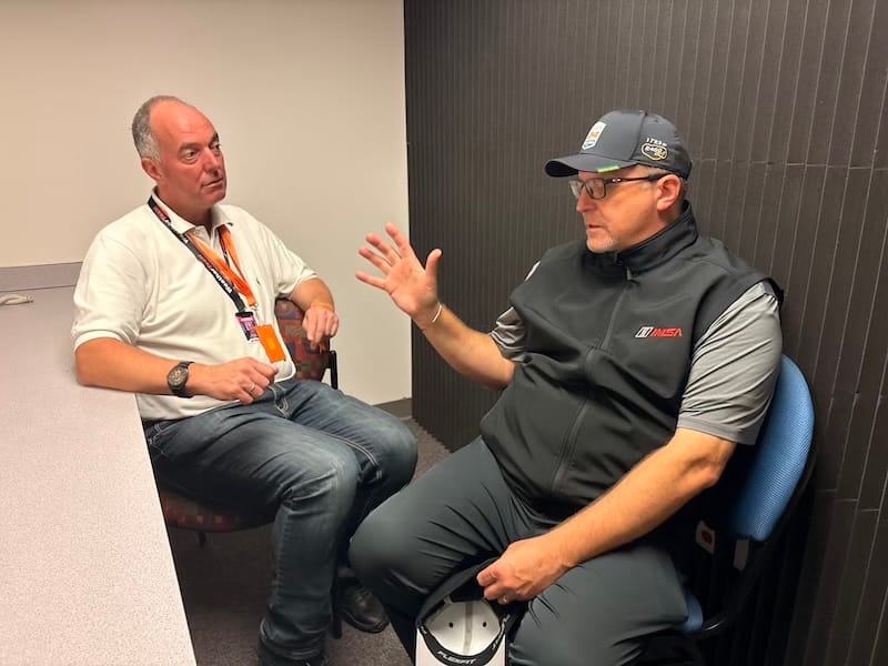 Na een interview met IMSA-president John Doonan, met wie het altijd zeer prettig spreken is, was het tijd voor de rijdersintroducties voorafgaand aan de race. Een voor een werden de 60 deelnemende auto’s naar hun posities op de grid geduwd, terwijl de betreffende rijders op het podium met naam en toenaam gepresenteerd en in sommige gevallen kort geïnterviewd werden. Een mooie show met vlaggen van alle betrokken rijders rondom de auto’s en ook de Porsche 963 RSP, de straatversie van de Porsche-raceauto, speciaal gebouwd voor Roger Penske, werd zo gepresenteerd. Het was een enorme drukte op de startopstelling, waar bij IMSA-races alle bezoekers vrij toegang hebben. Het verliep als altijd zeer gedisciplineerd, er werd geen wanklank gehoord en binnen korte tijd was het circuit ook weer vrij voor de start van de race.
