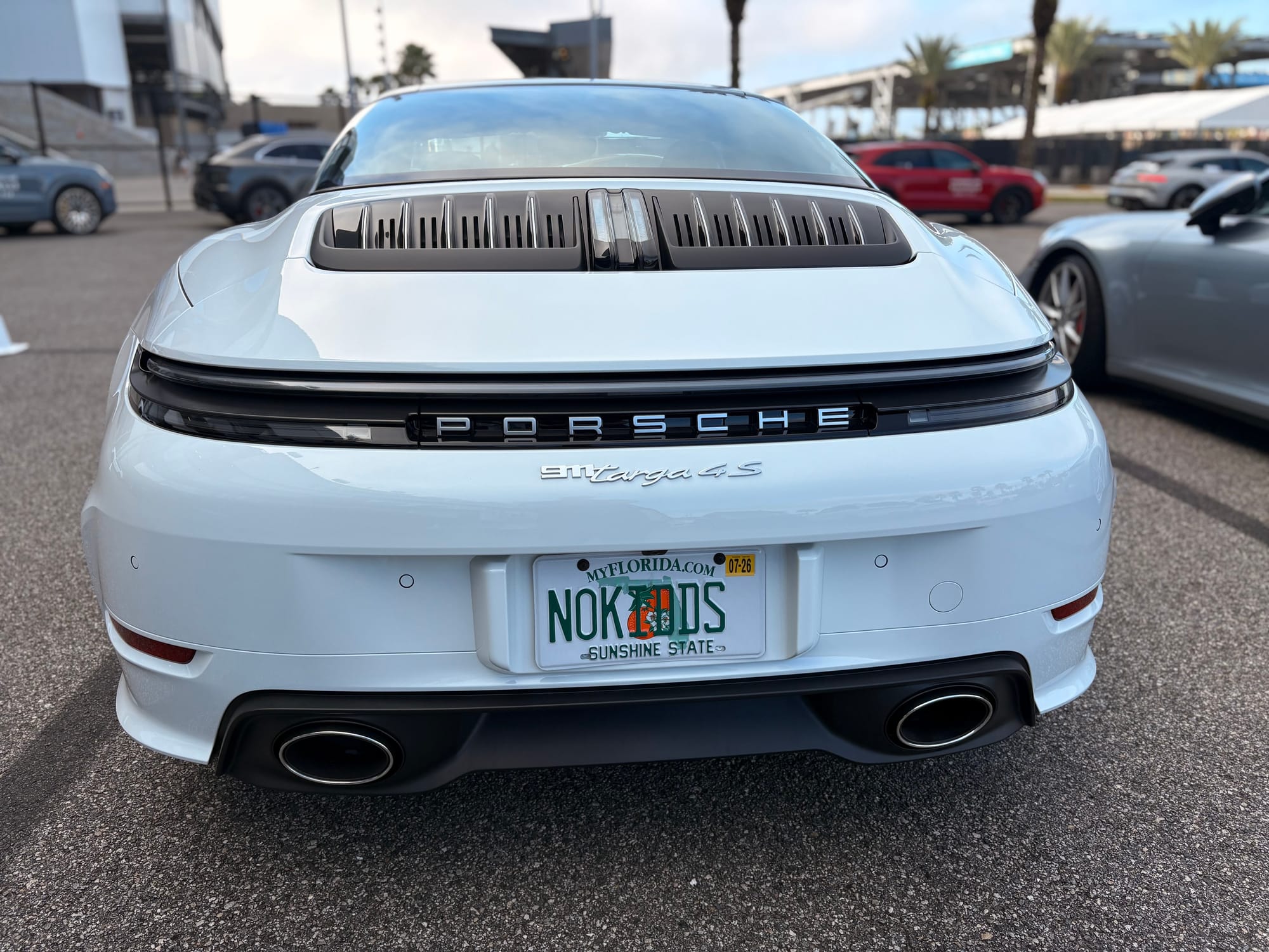 Iets na 19.00 uur plaatselijke tijd landden we in Orlando, flink later dan het oorspronkelijk geplande tijdstip van 15.30 uur. Het voordeel was dat ik niet meer door het spitsuur om Orlando heen moest, maar het nadeel was dat ik daarmee ook pas tegen half tien in het hotel in Daytona arriveerde. Plannen om nog het ‘Fan Festival’ aan het begin van de avond te bezoeken verdwenen daarmee in de prullenbak. De vreugde over het zien van het opschrift ‘Welcome in Daytona Beach’ boven de weg ter hoogte van de Speedway was groot! Na aankomst in het hotel volgde nog één ijskoud landingsbiertje aan de bar en vervolgens lokte het bed. Tenslotte was ik al 25 uur op. Porsche had het hotel Daytona Grande aan het strand als onderkomen uitgekozen, waar heel wat teams, rijders en andere betrokkenen bij de race waren ondergebracht. Wakker worden met zicht op de oceaan en met het geruis van de golven als achtergrondgeluid is erg prettig, zeker als ook de zon nog eens schijnt. Gelukkig had Nicole, die voor Porsche altijd bijzonder efficiënt alle reizen rondom races organiseert, van tevoren al parkeer- en perskaart opgehaald en klaar laten leggen bij de receptie van het hotel, dus ik kon direct naar het circuit.