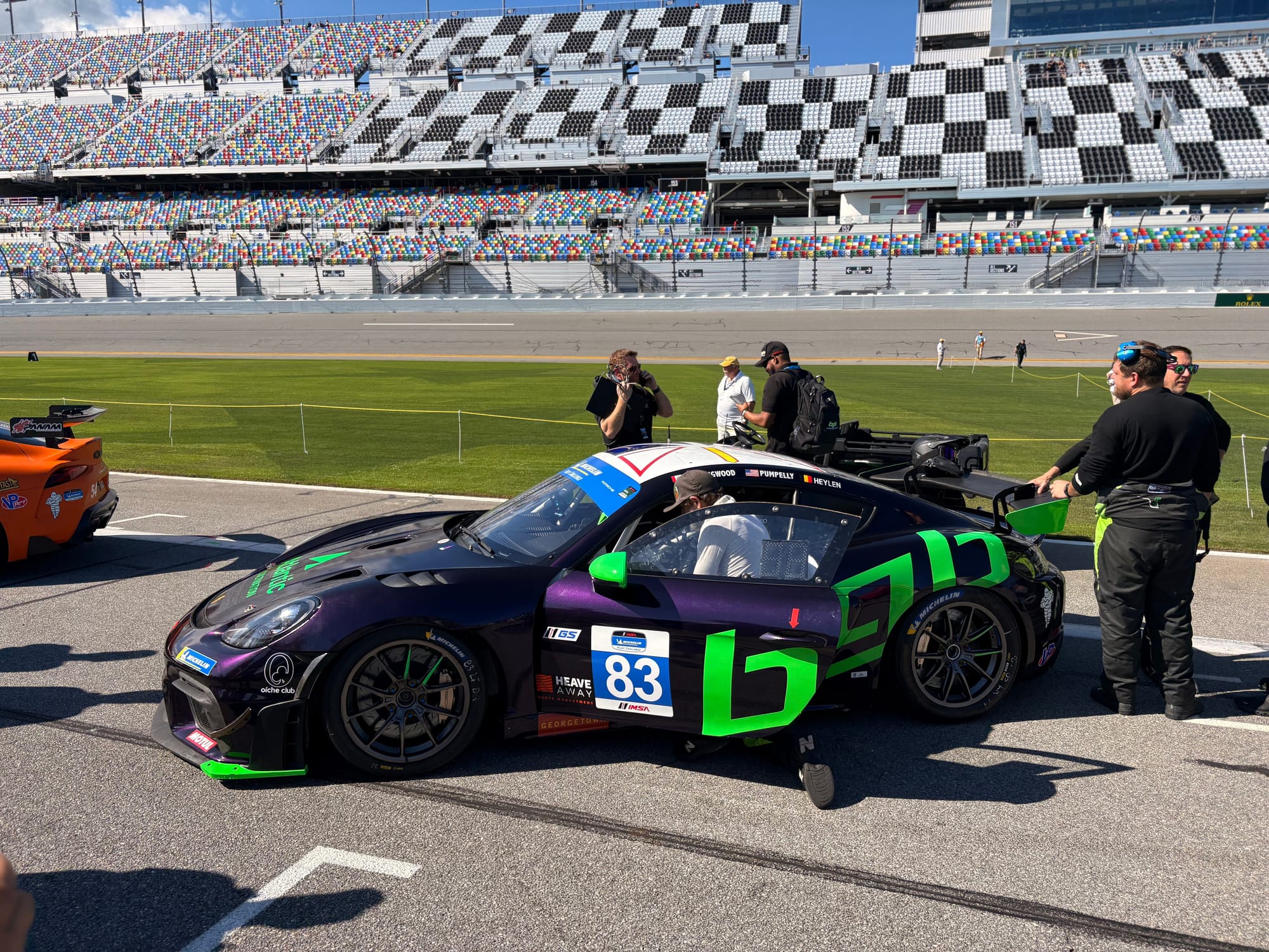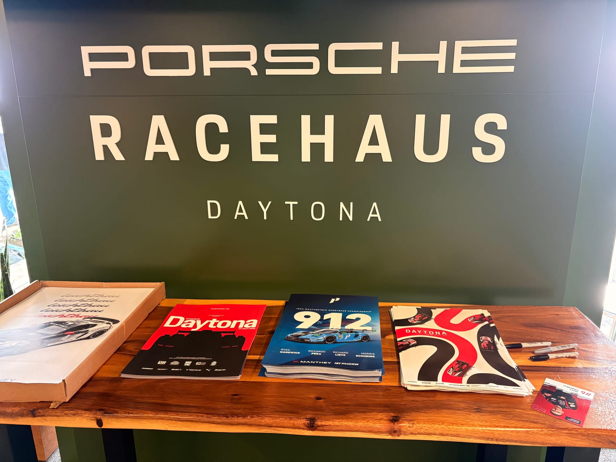 IMSA Michelin Pilot Challenge met onder andere deze Porsche Cayman GT4, handtekeningsessie met lange rijen wachtenden en alle coureurs in de 24-uursrace, onder wie Morris Schuring en teamgenoten, foto met zeven van de negen Nederlandse rijders en interviewsessies met Porsche-coureurs en sportdirecteur Thomas Laudenbach.