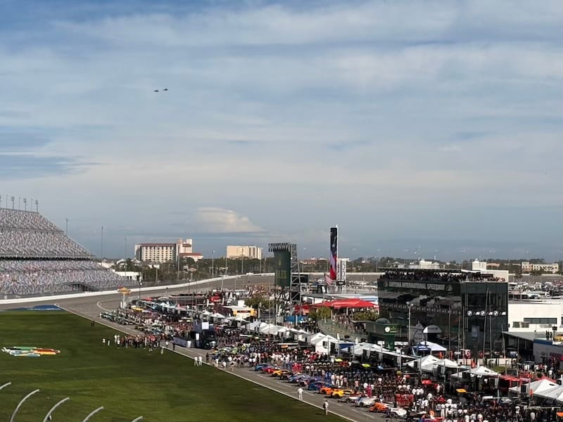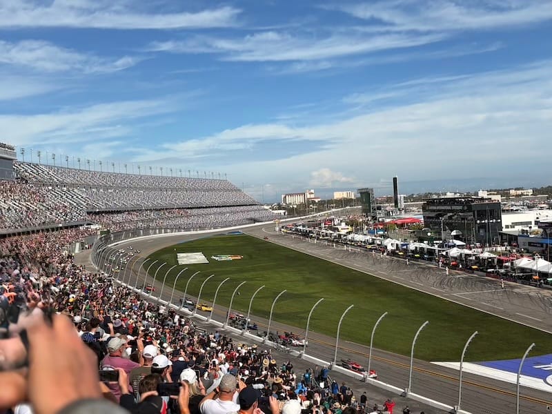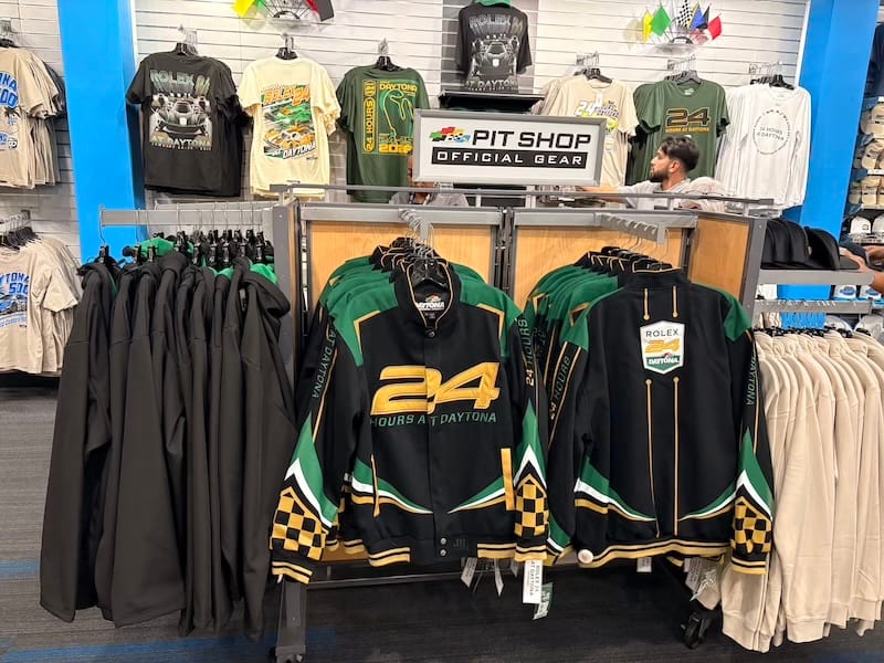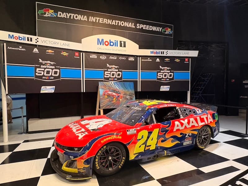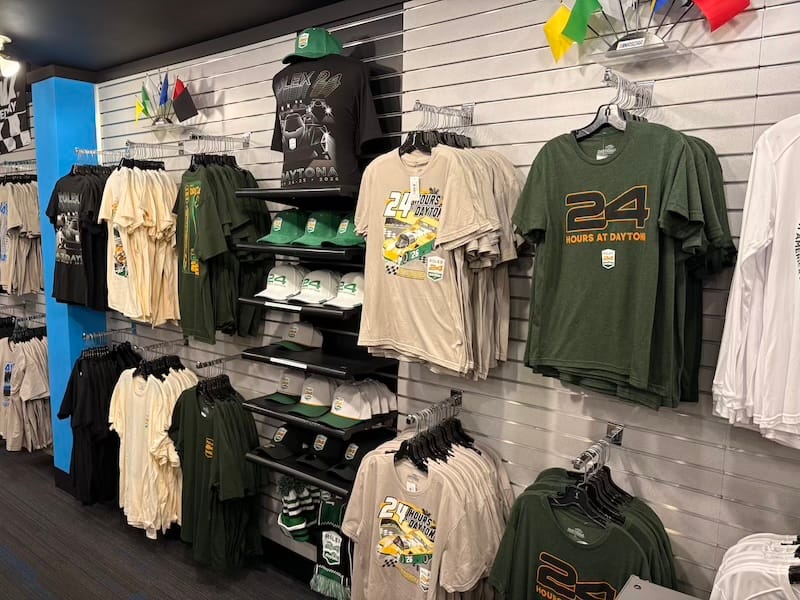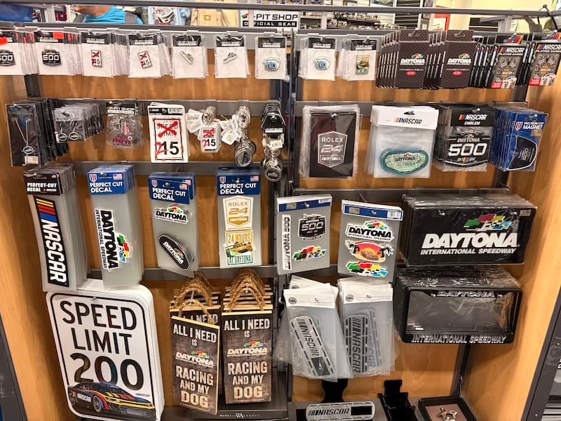 Al direct na de start van de race ging het mis toen meerdere auto’s uit de LMP2-klasse in de eerste bocht met elkaar in botsing raakten. Dat leidde tot de eerste neutralisatie van de wedstrijd. Net na de herstart ging het weer fout, ditmaal was het de Porsche 911 GT3 R van het team RS1 die in de vangrails belandde en daarmee de eerste officiële uitvaller in de wedstrijd was. Na een goed halfuur verliet ik de Porsche-hospitality voor een bezoek aan het museum bij het circuit, het onderkomen van de Motorsports Hall of Fame of America. Dat betekent dat het er niet alleen om Daytona gaat, met de Daytona 500 en de 24-uursrace als speerpunten, maar dat er ook andere takken van auto- en motorsport aan de orde komen. Sprintcars, Indycars, motorfietsen en zelfs een gigantische powerboat zijn er in het museum te vinden, omlijst met allerlei zaken als helmen, overalls, trofeeën en ornamenten. Een leuke dwarsdoorsnede, en wie zelf iets mee naar huis wil nemen kan terecht in de onvermijdelijke ‘gift shop’, waar je op weg naar de uitgang verplicht doorheen moet en waar een enorm assortiment wacht.