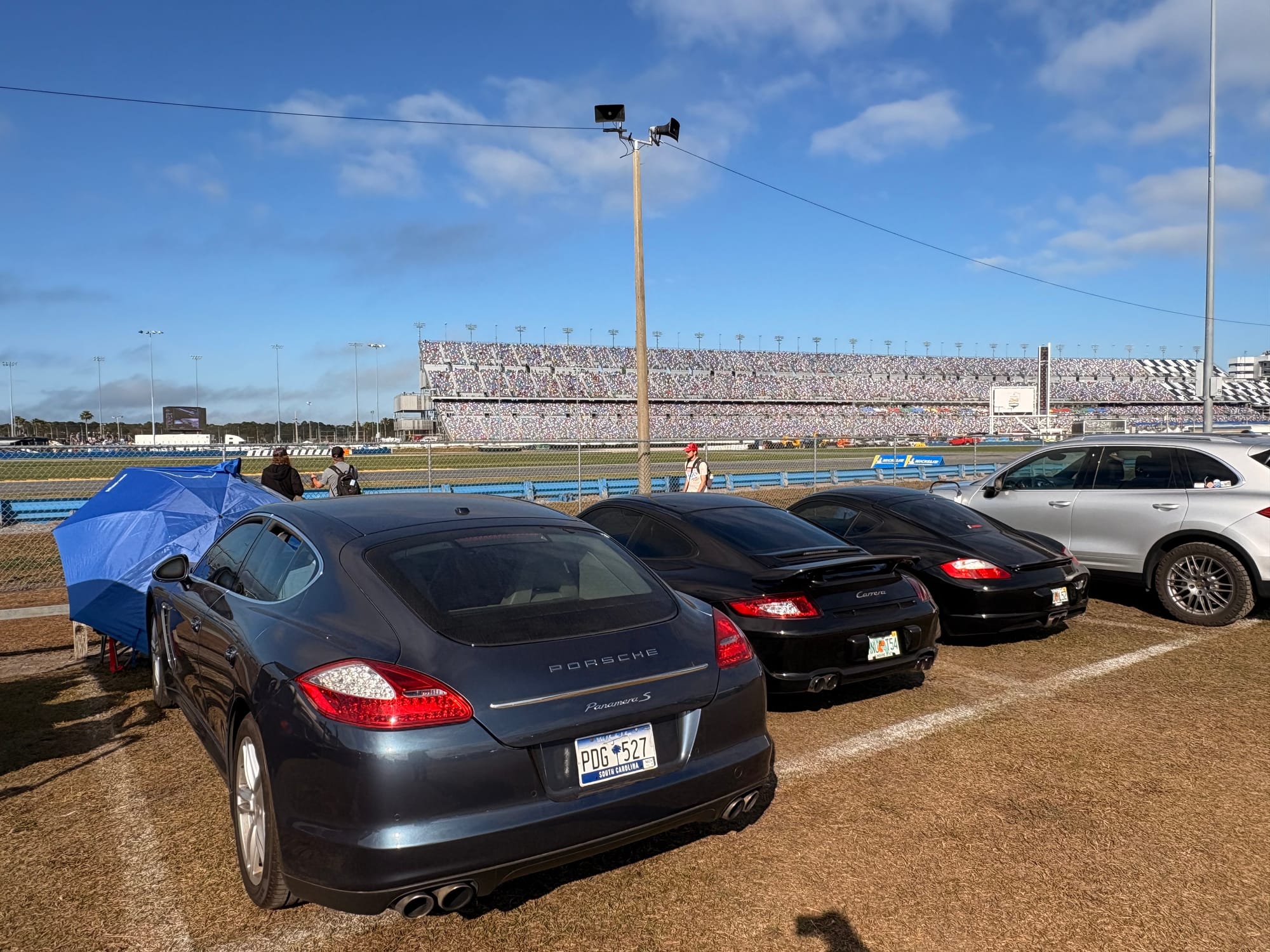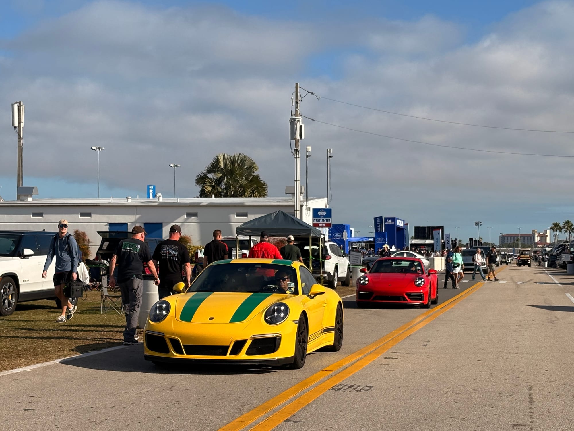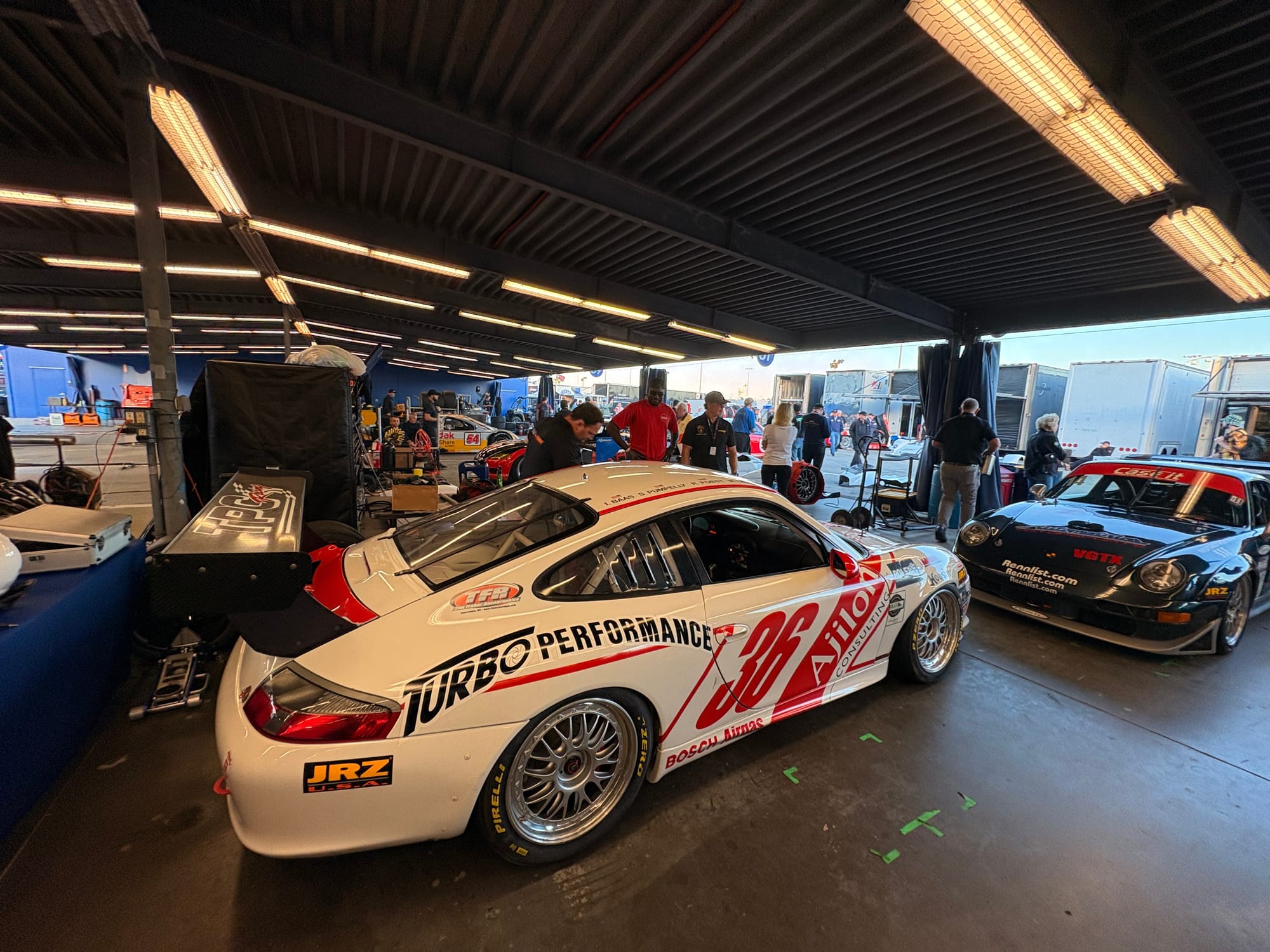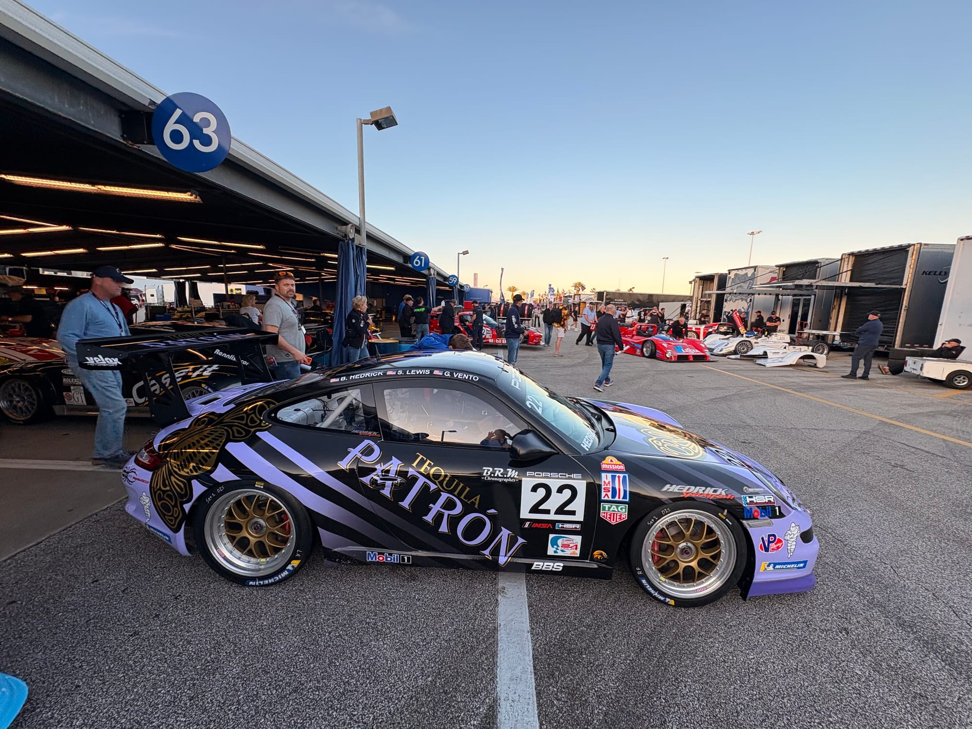 De avond bracht ik door bij een groep Amerikaanse vrienden die al jarenlang vaste bezoekers in Daytona en bij diverse andere races zijn. Een aantal van hen heeft een restaurant-achtergrond, dus onnodig te zeggen dat er ook op het kampeerterrein van het circuit voortreffelijk gekookt wordt. Het werd een bijzonder genoeglijke avond met heerlijk eten en fijne gesprekken. Autosport verbindt mensen over alle grenzen heen. Onderweg naar hun plek op het circuitterrein aan de buitenkant van Turn 1 spotte ik ook nog de nodige interessante auto’s. Absoluut hoogtepunt natuurlijk de 356 vol patina, die ieder jaar in Daytona te vinden is, omringd door de nodige Volkswagenbusjes. Ook een Ford Lotus Cortina, een Porsche 911 Turbo en een Ferrari 308 waren leuk.
