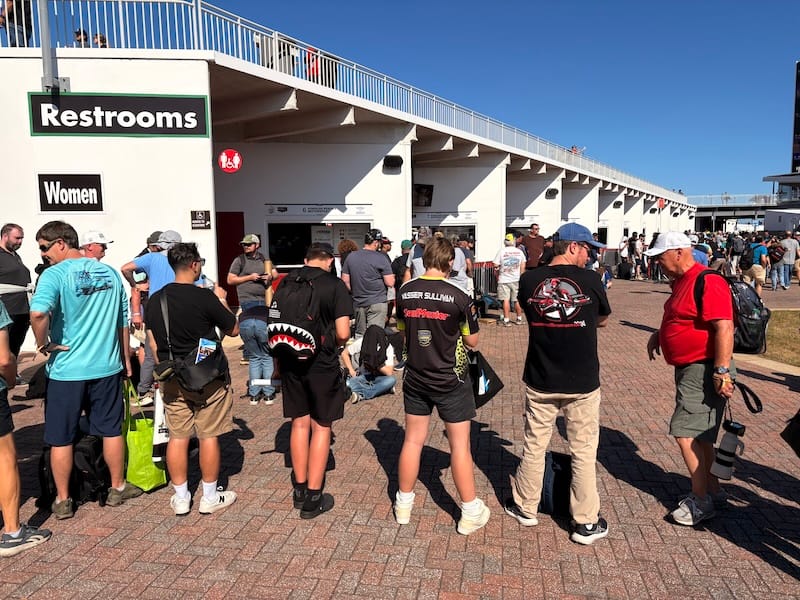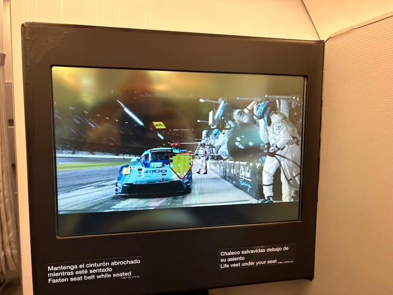 Het eerste deel van de reis, van Düsseldorf naar Madrid, verliep prima. Gepland was een overstaptijd van tweeënhalf uur voor de volgende vlucht naar Orlando, wat prima was geweest, maar dat er voor de Orlando-vlucht als enige geen vertrekgate op de schermen verscheen, zorgde al voor wat vraagtekens. De vlucht bleek inderdaad flink vertraagd, maar gelukkig konden we de tijd goed besteden in de Iberia-lounge door ook daar nog het nodige werk te doen, waaronder het schrijven van het verhaal over de Porsche-historie in Daytona voor deze website. Een paar Spaanse lekkernijen (olijven, ham, chorizo en kaas) tegen het middaguur smaakten ook erg goed. Met drieënhalf uur vertraging vertrokken we uiteindelijk alsnog, blij dat we geen aansluitende vlucht in de VS meer hoefden te halen. Onderweg nog veel geschreven, een stukje van de (al bekende) F1-film met Brad Pitt gekeken, waarvan het eerste gedeelte zich immers afspeelt bij de 24 Uur van Daytona, met een Porsche bovendien, en gelezen. Op vluchten naar Amerika probeer ik doorgaans om niet te slapen, teneinde daar ter plekke direct in het ritme te zitten.