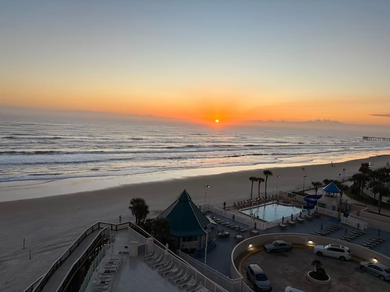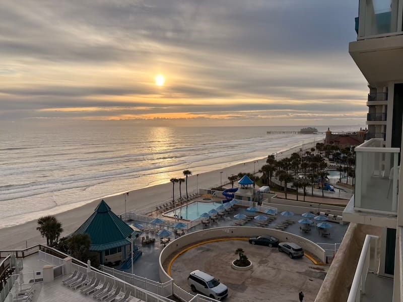 Welkom in Daytona Beach, ijskoud landingsbiertje aan de bar, een heerlijk comfortabel bed in het Daytona Grande-hotel.