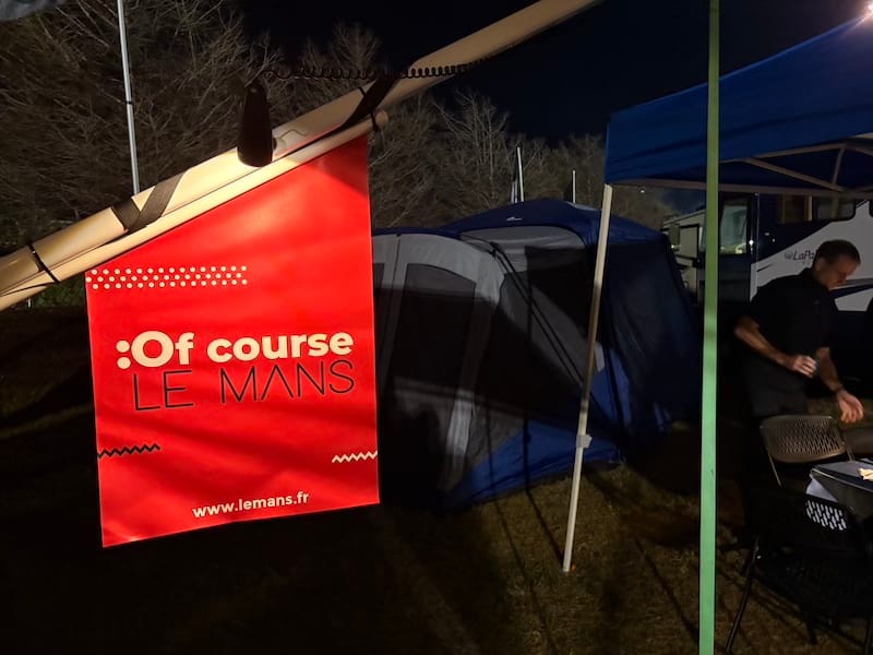 Avondstemming met reuzenrad, feestvierende fans en vuurwerk in de mist, en een sterkend ontbijt op het terras bij Porsche op zondagochtend.