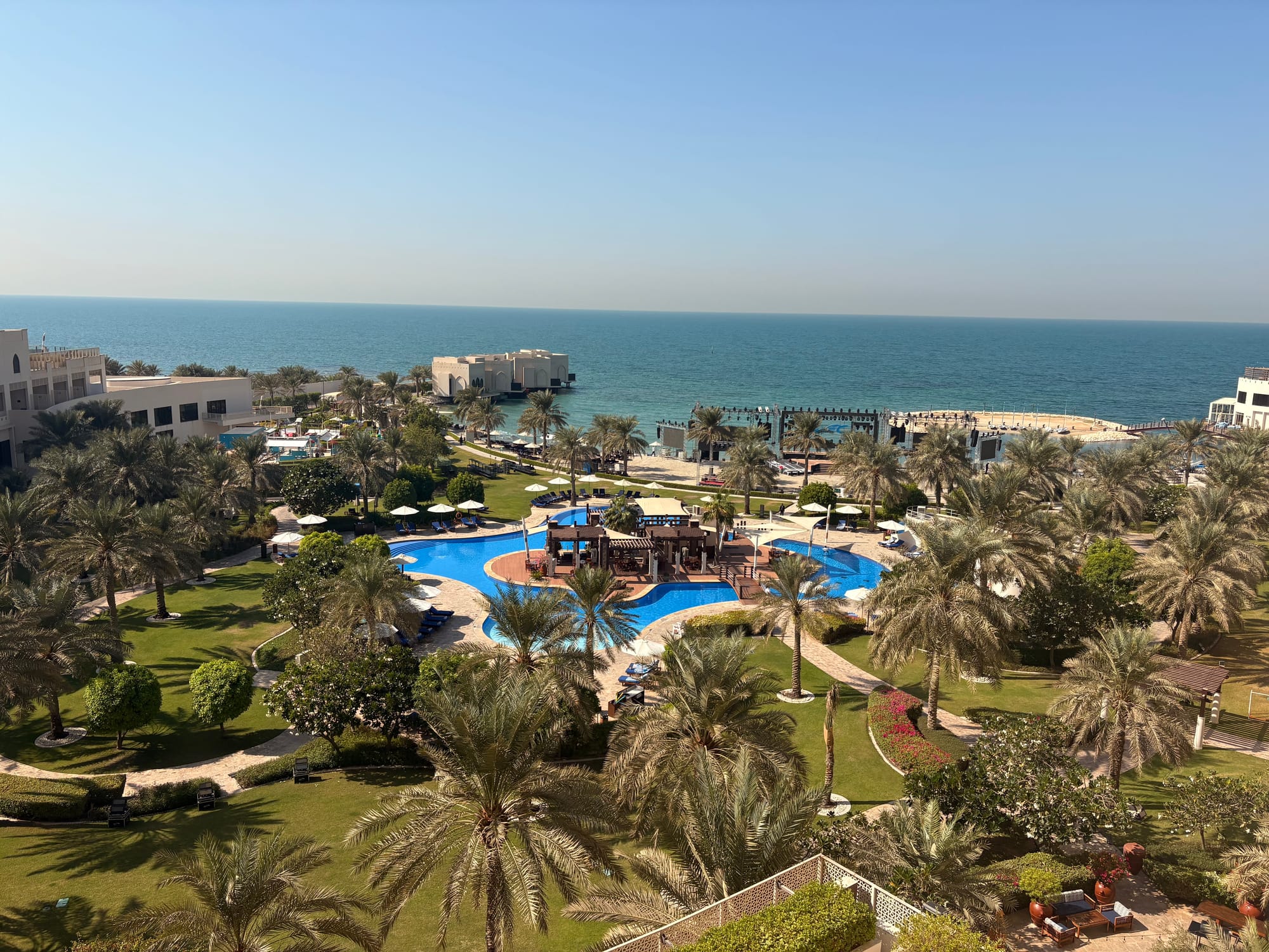 Het Sofitel kenden we al van vorig jaar, het hotel bevindt zich op een minuut of vijf rijden vanaf het circuit en is bijzonder plezierig. De bedden zijn er perfect, met een keuze uit vier verschillende soorten kussens, de douche is er uitstekend, er is een Nespresso-machine op de kamer en het bureau is groot genoeg om prettig aan te kunnen werken. Voeg daarbij het balkon met comfortabele zitgelegenheid en een geweldig uitzicht over de tuin met strand en je wilt eigenlijk nauwelijks meer weg!