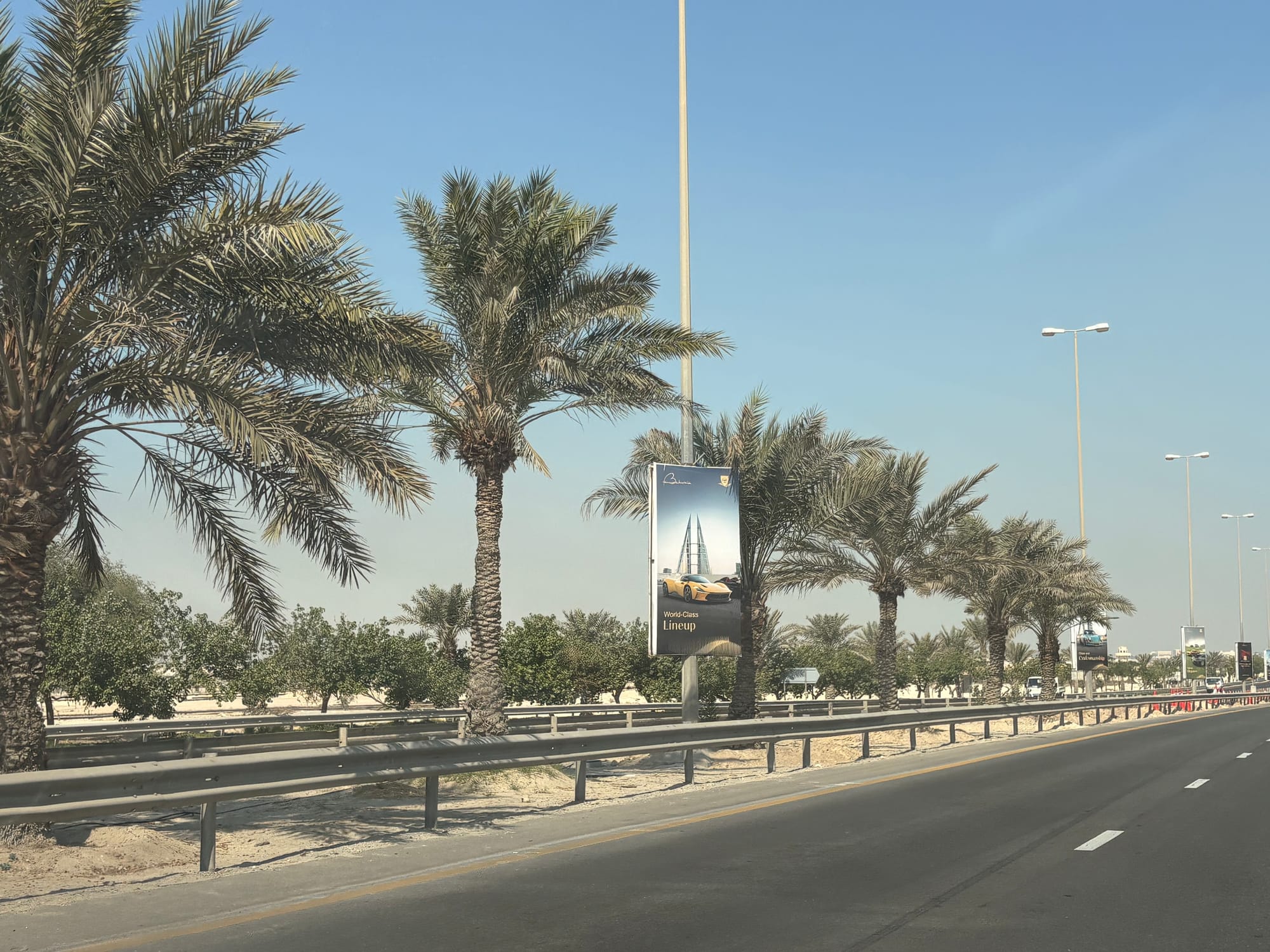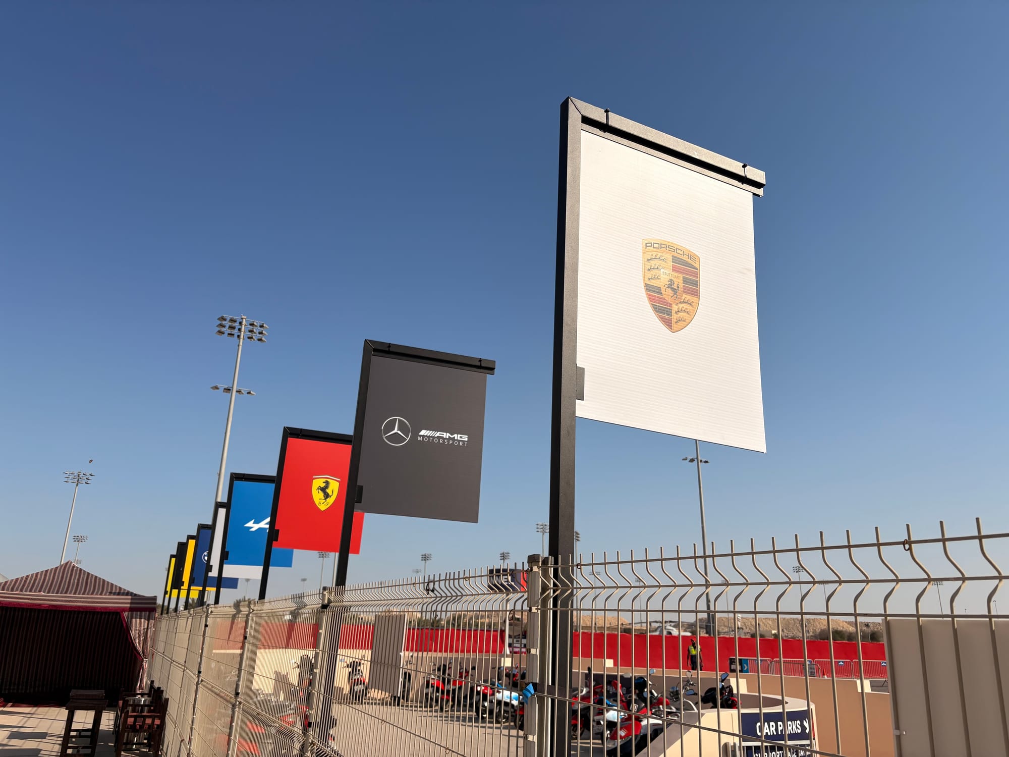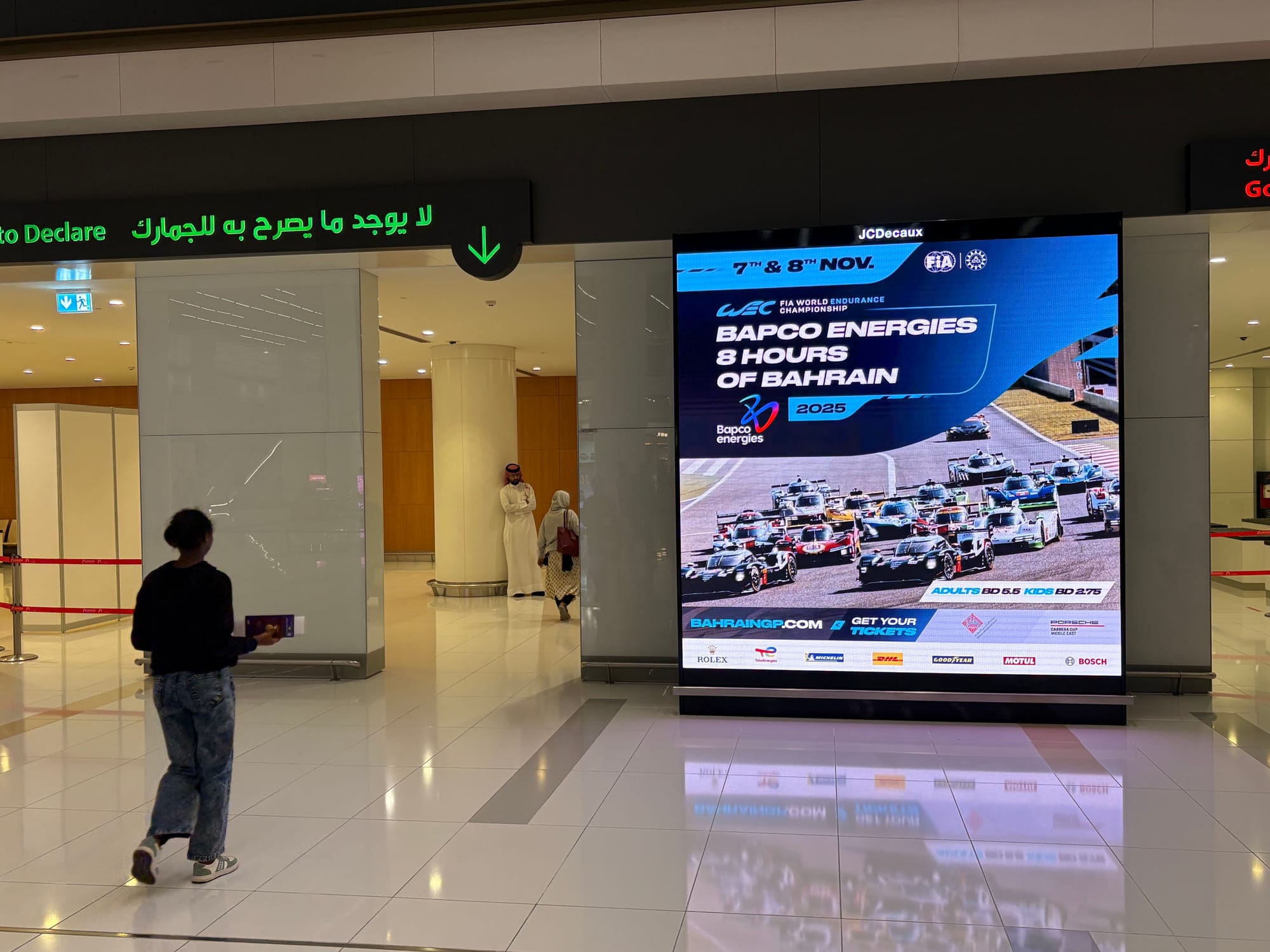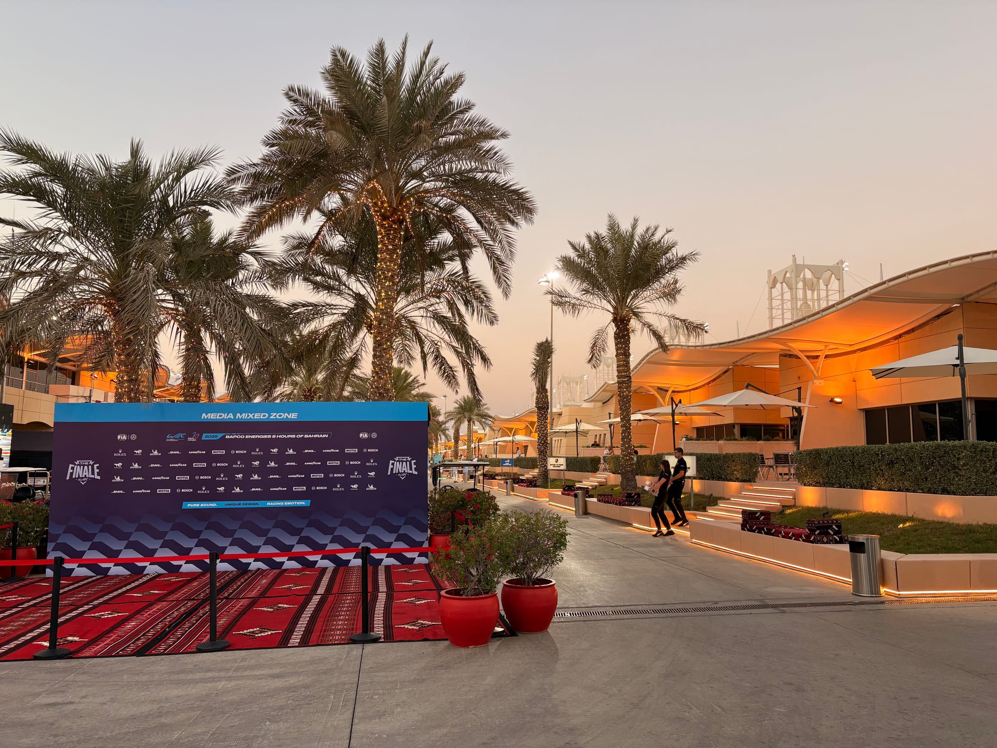 Eenmaal gearriveerd in Bahrein stonden er direct mensen in kleding van het circuit te wachten om arriverende passagiers die iets met de race te maken hadden op te vangen en te begeleiden. Ik meldde me en degene die met mij mee liep wist direct te vertellen dat er een chauffeur voor transport naar het hotel op me stond te wachten. Ik werd vlot door de douane geleid – de benodigde visa waren keurig via het circuit geregeld – en met alleen handbagage stond ik binnen vijf minuten na landing in de aankomsthal, waar inderdaad iemand met een bordje met mijn naam en een Porsche-logo erop klaarstond.