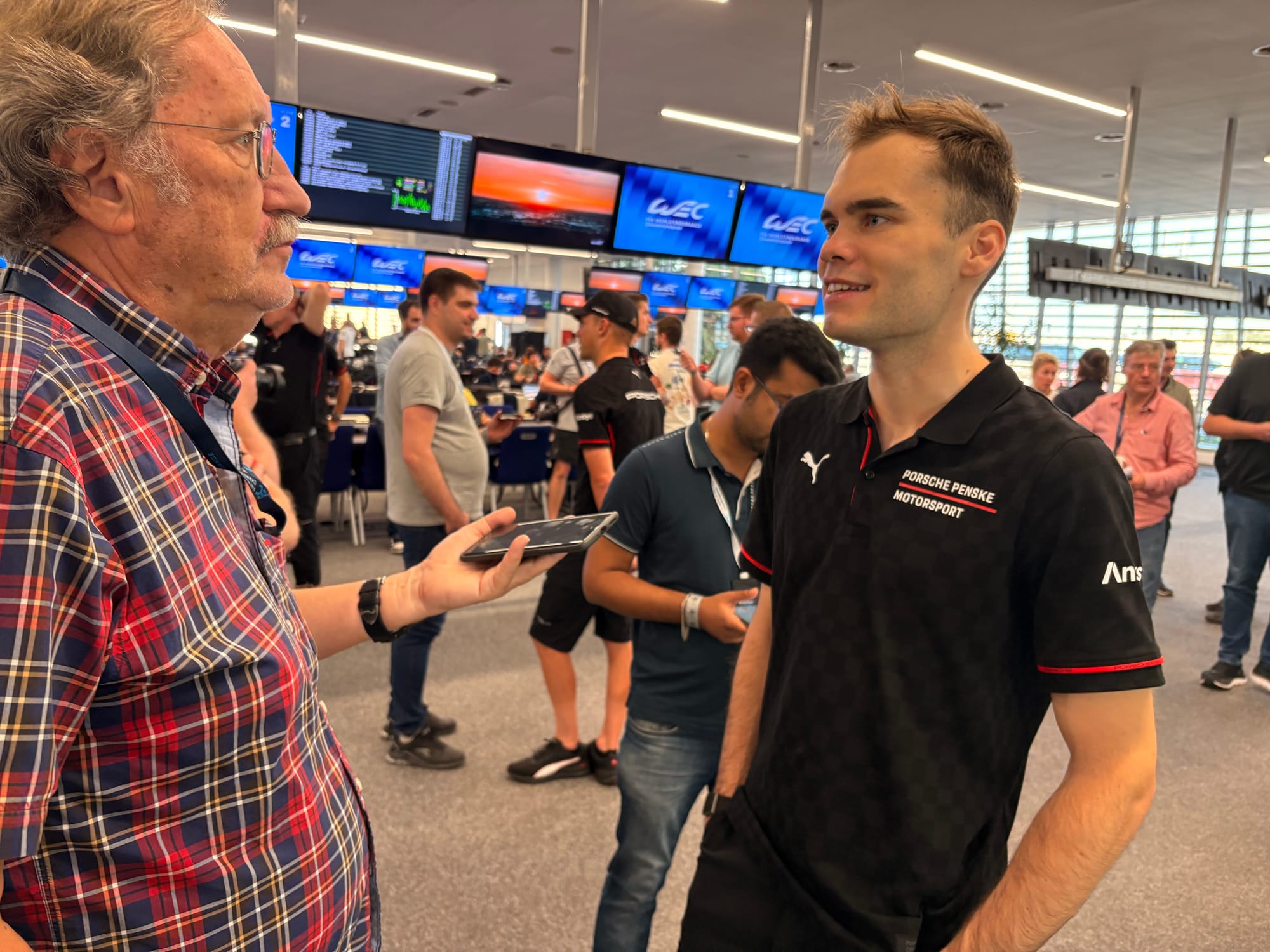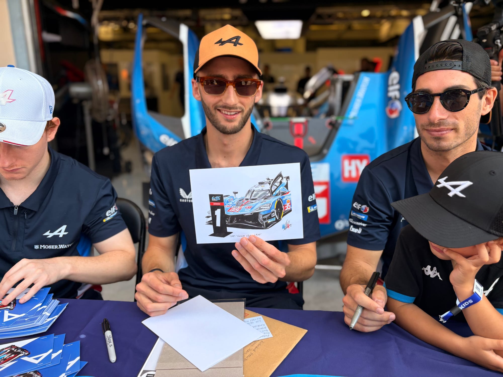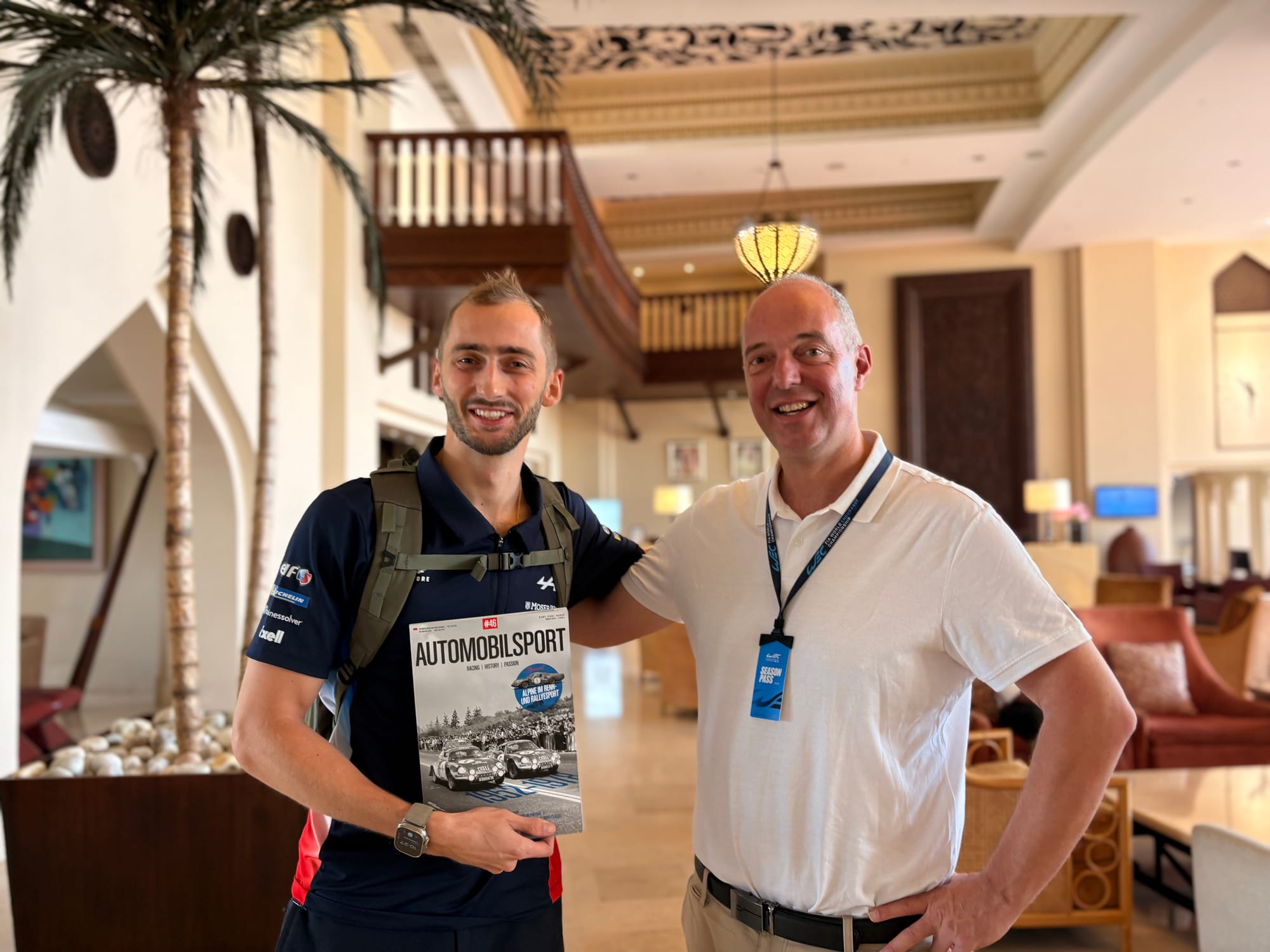 Nog een speciale opdracht was het overhandigen van een tekening van de Britse autokunstenaar Neil Gardner aan de Oostenrijkse coureur Ferdinand Habsburg, die met Alpine de voorgaande FIA WEC-race op Fuji gewonnen had. Gardner had speciaal voor die gelegenheid een prachtig kunstwerkje gemaakt en Eve Hewitt, de stuwende kracht achter Radio Le Mans, waarvoor Gardner de ‘artist in residence’ is, had gevraagd of uw verslaggever dat aan Habsburg wilde overhandigen. Die deed dat natuurlijk met veel plezier, net als dat hij eerder die ochtend Habsburg een exemplaar van het magazine Automobilsport had gegeven, dat grotendeels gewijd is aan de rijke race- en rallyhistorie van het Franse merk Alpine, waarvoor Habsburg als fabriekscoureur actief is.