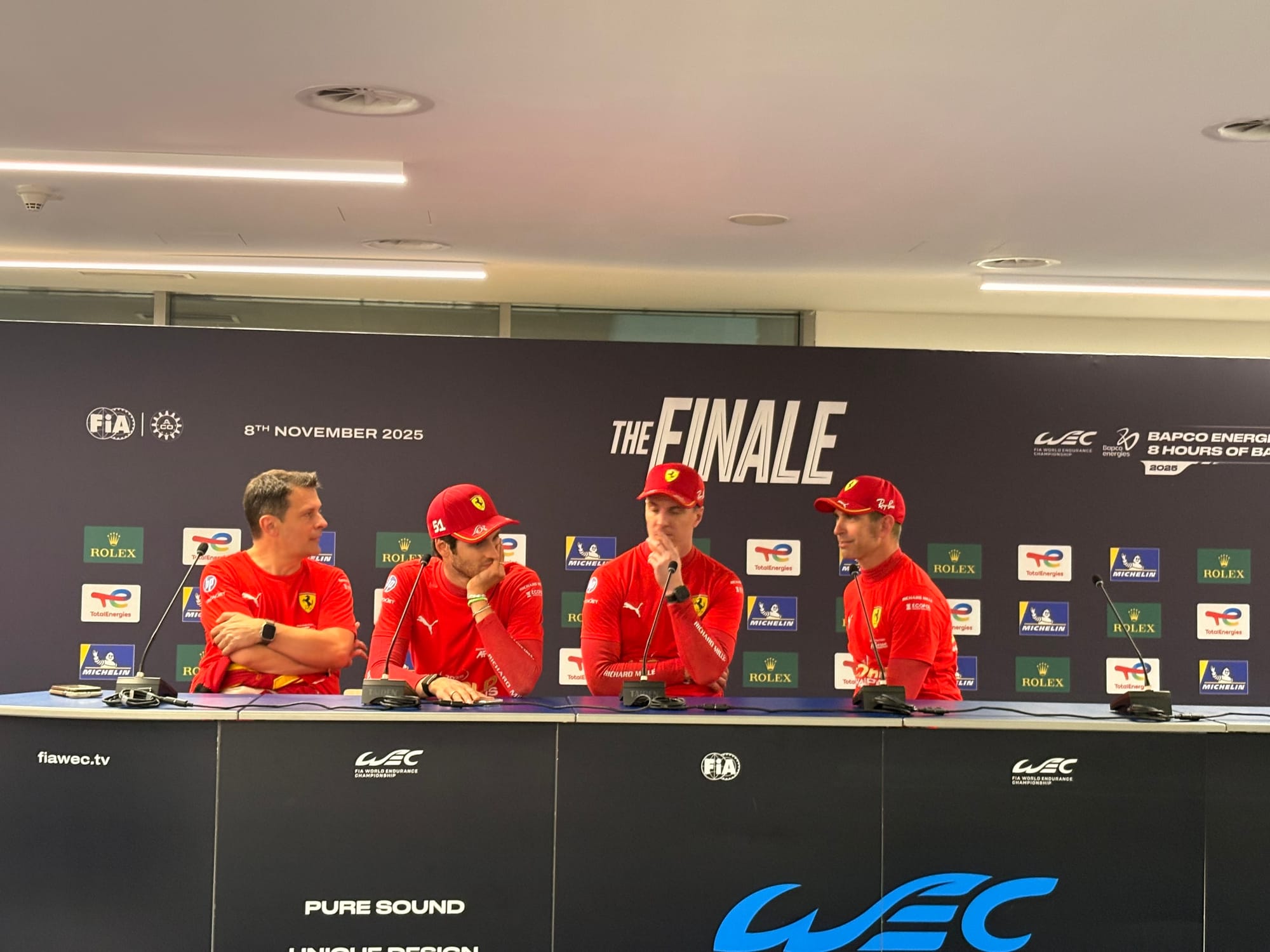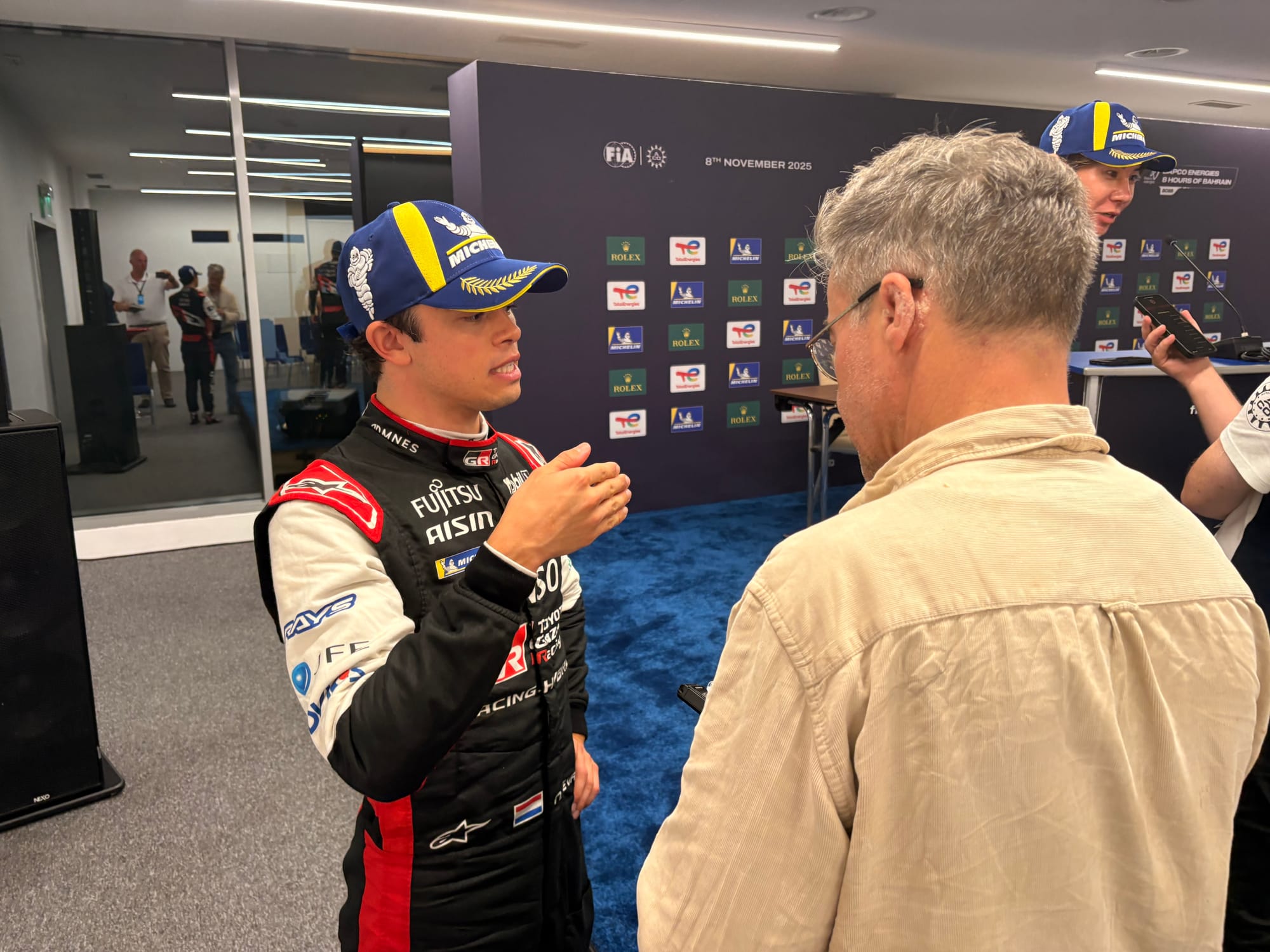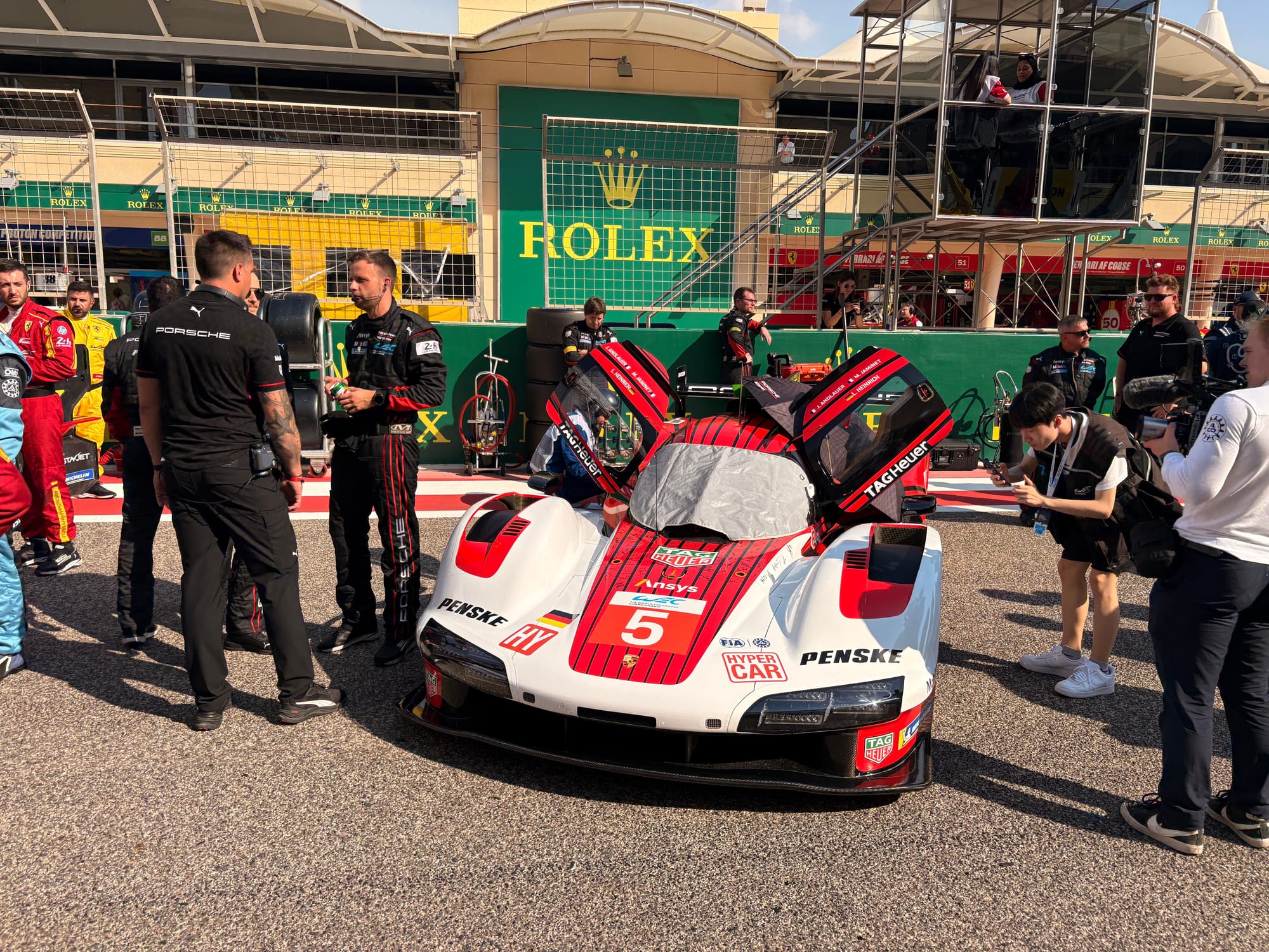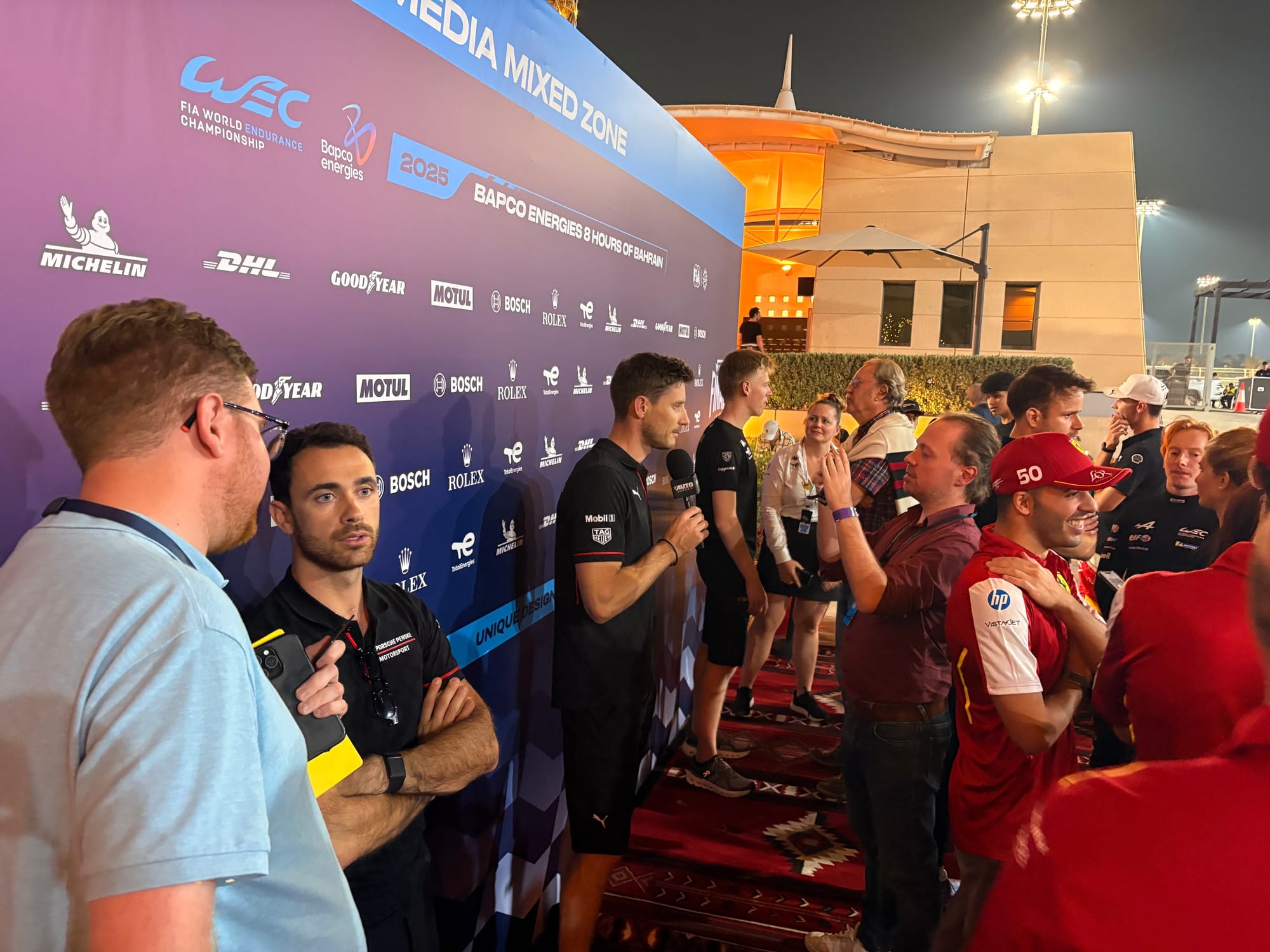 Op vrijdagochtend brachten we eerst een bezoek aan het Concours d’Elégance, het Royal Bahrain Concours, dat op de golfbaan, een halfuurtje van het hotel en het circuit plaatsvond. Het resultaat is inmiddels al op deze site te vinden. Rond het middaguur waren we weer op het circuit, waar de derde en laatste vrije training op het programma stond. Later in de middag volgden diverse mediasessie van verschillende merken, waaronder ook het ‘Meet the team’ van Porsche, waar we met meerdere rijders en teamleiding spraken. Zulke sessies leiden niet altijd direct tot artikelen, maar zijn wel heel goed om achtergrondinformatie te verkrijgen en kennis te verdiepen. Daarna was er de kwalificatie, eerst voor de LMGT3’s en vervolgens voor de hypercars, met aansluitende persconferentie en ‘mixed zone’, waarin alle coureurs voor de media beschikbaar waren. Ook volgden we nog de eerste race van de Porsche Carrera Cup Middle East, met een wat karig veld van slechts 13 auto’s, en de rijders ook nog eens verdeeld over drie klassen, maar wel mooi om te zien en te horen.