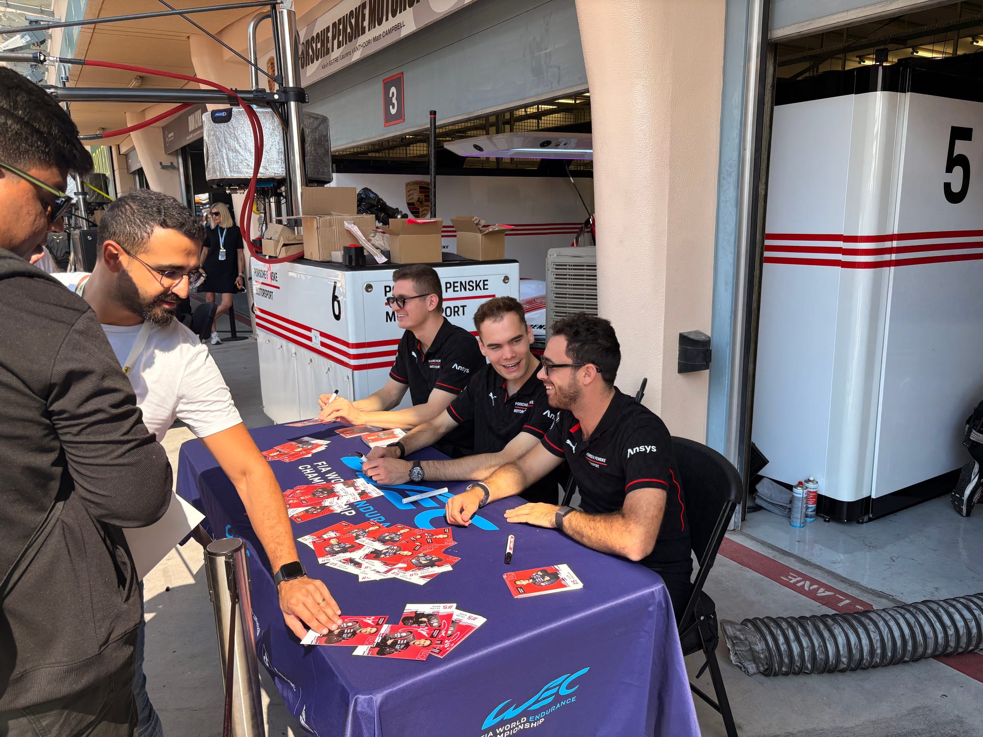 De actie op het circuit begon pas rond het middaguur, dus haast was er niet echt, wat prettig was. Op donderdag stonden er twee vrije trainingen van het FIA WEC op het programma, plus sessies van de Porsche Carrera Cup Middle East, de enige serie in het voorprogramma. We benutten de tijd om met veel mensen weer eens bij te praten, nieuwe contacten te leggen en natuurlijk ook om de actie te volgen. Om 15.00 uur was er de officiële persconferentie van de organisatie, waarin diverse coureurs hun vooruitblik op de race gaven, onder wie Porsche-fabrieksrijders Kévin Estre en Richard Lietz. De laatste trainingssessie liep tot 18.30 uur, daarna aten we in de teamcatering op het circuit en schrijven daarna nog de nodige artikelen. De avond sloten we rustig af met een uurtje lezen op het balkon bij de hotelkamer, het was nog steeds een aangename 26 graden.