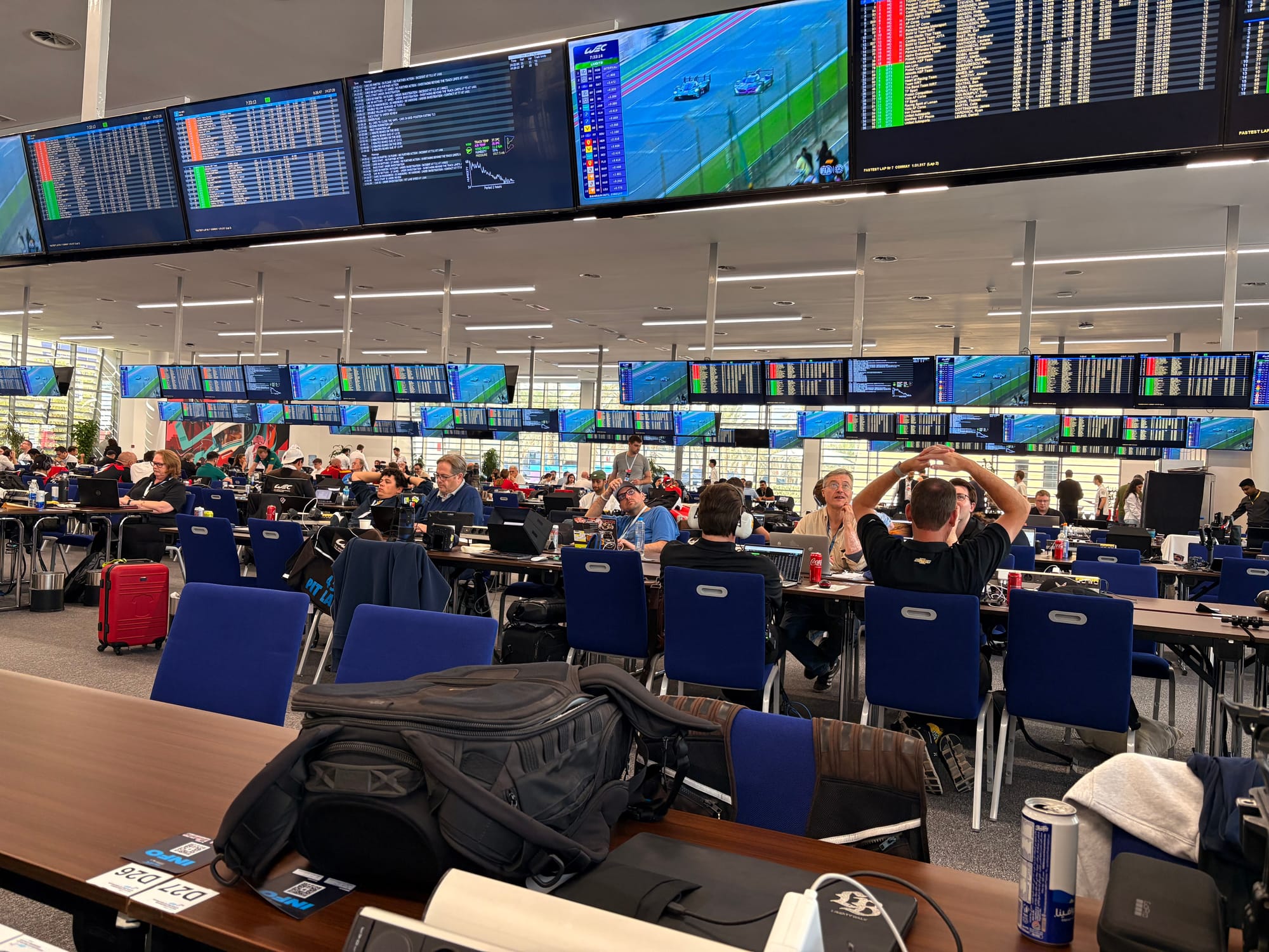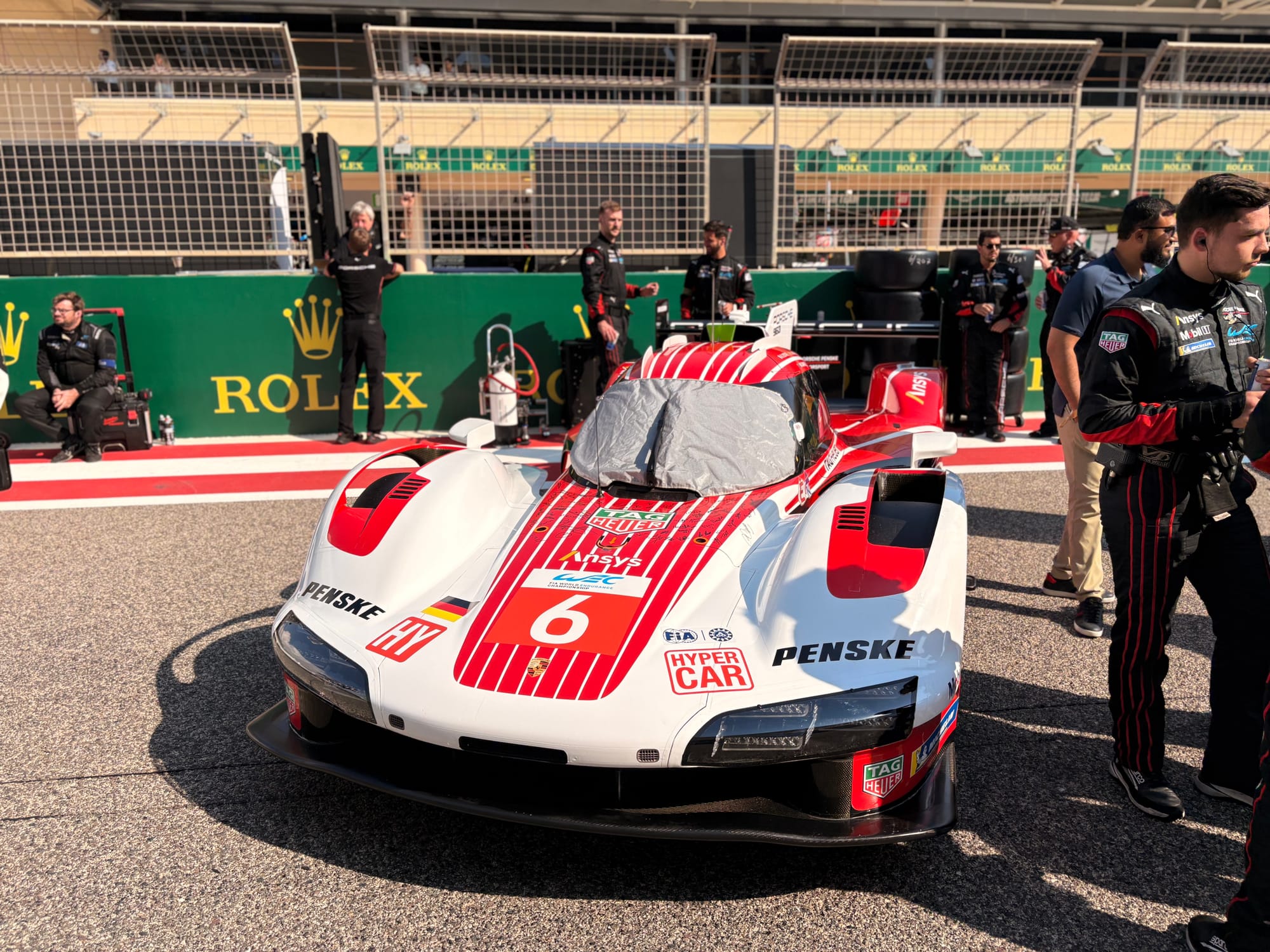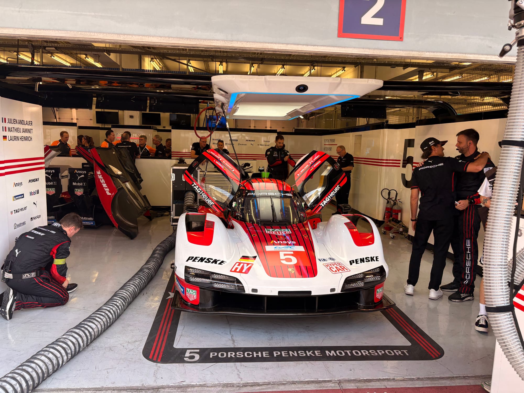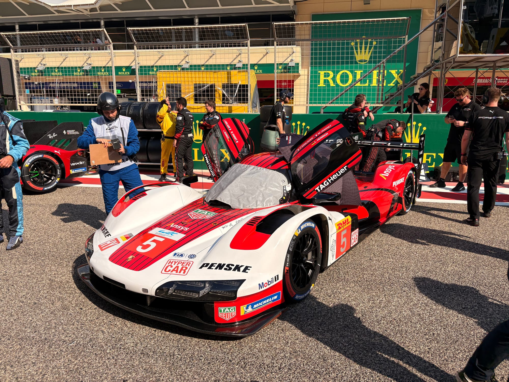 Er volgde een snelle lunch in de teamcatering, waarna de ‘grid walk’ op het programma stond, een goed halfuur waarbij alle auto’s in slagorde langs de pitmuur op het rechte stuk van het circuit staan opgesteld, teamleden erbij en ook de rijders, zij het dat die vaak zo laat mogelijk arriveren, want het is al warm genoeg. In het FIA WEC wordt toegang tot de startgrid voorbehouden aan mensen die daarvoor een speciale sticker of vermelding op hun toegangspas hebben, wat het exclusief houdt. Heel anders dan bijvoorbeeld in de Noord-Amerikaanse IMSA-serie, waar juist alle bezoekers met een entreekaart voor de race de grid op mogen en dicht bij de auto’s kunnen komen. Dat maakt het wel een stuk drukker dan in het WEC, maar je geeft als organisatie de fans wel een unieke ervaring. Kwestie van keuze.