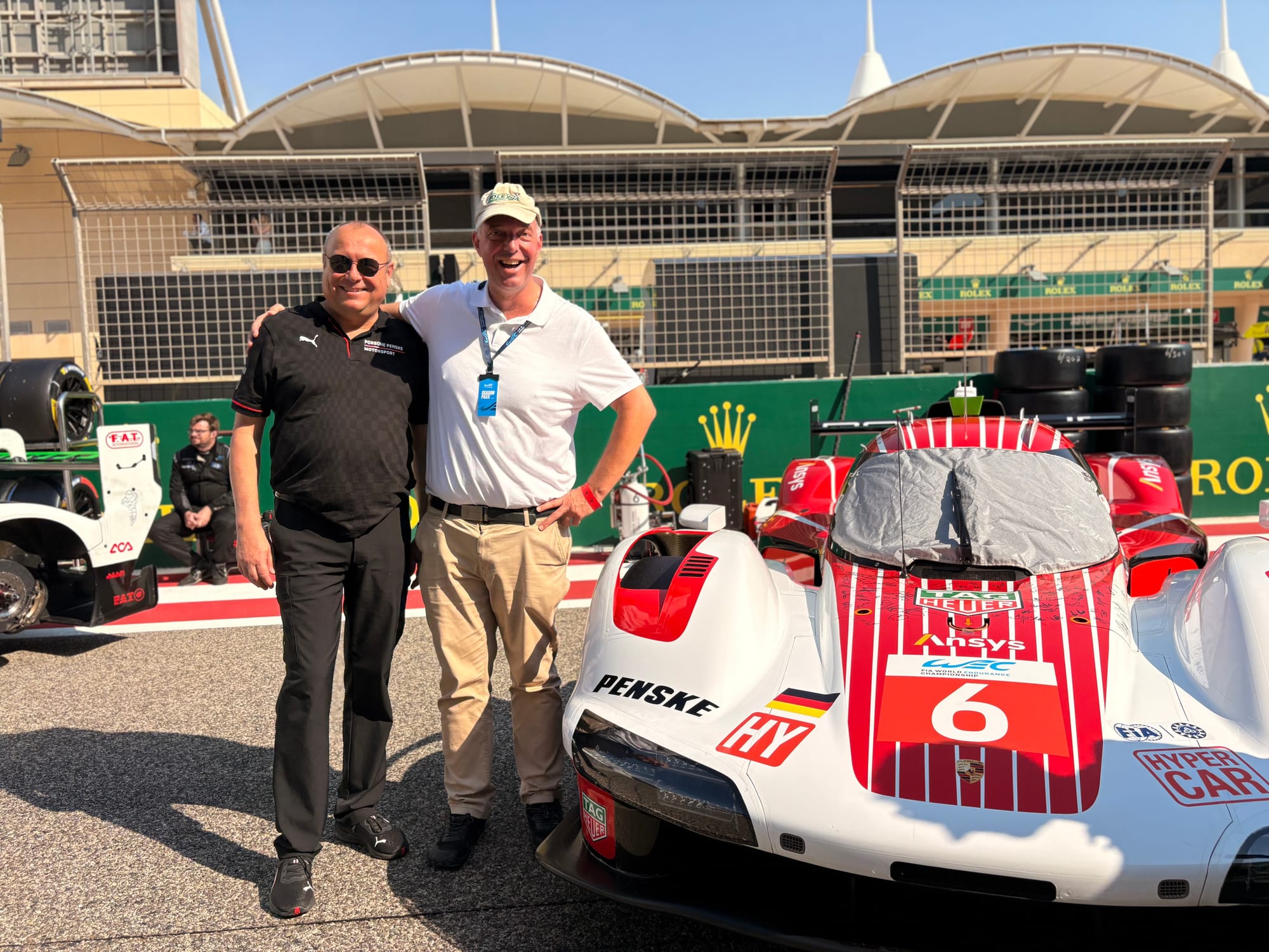 Eenmaal terug in het perscentrum volgden we het verloop van de race, die in verhouding weinig spannende actie bood. Dat er voor Porsche in de hypercar-klasse weinig kans op succes was weggelegd, was inmiddels wel duidelijk, maar dat had zich eigenlijk al na de kwalificatie – en op basis van de ‘balance of performance’ zelfs al in de aanloop naar het raceweekeinde afgetekend. Zo kabbelde de race langzaam (nou ja, relatief gesproken natuurlijk) voort en resulteerde uiteindelijk in de eerste seizoenzege van Toyota, met onze landgenoot Nyck de Vries als een van de rijders in de winnende auto, en alle kampioenstitels voor Ferrari. Voor Porsche was er in ieder geval nog de titel in de GT-klasse met Richard Lietz, Riccardo Pera en Ryan Hardwick in de Manthey-1st Phorm-911. In de ochtend waren we er tijdens het ontbijt in het hotel al getuige van geweest hoe Hardwick zijn teamgenoten verraste met een Rolex met inscriptie als dank voor een bijzonder succesvol seizoen, ongeacht hoe de beslissing in de titelstrijd ook zou uitvallen. Volgend jaar rijdt Hardwick in de Noord-Amerikaanse IMSA-serie, ook met een Porsche van Manthey.