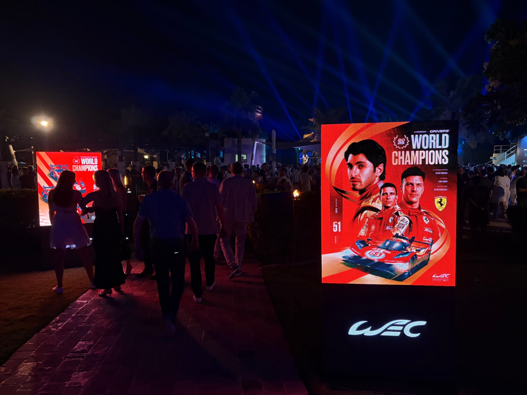 In de avond was er in de tuin van het hotel de officiële prijsuitreiking van het FIA WEC en de party om het einde van het seizoen te vieren. Diverse rijders en andere persoonlijkheden werden extra in het zonnetje gezet, onder wie Jenson Button, die in Bahrein zijn laatste race als professioneel coureur reed en zich voortaan wil toeleggen op historische autosport, en de Australische fotograaf Andrew ‘Skippy’ Hall, die ondanks allerlei fysieke ongemakken jarenlang tot het vaste fotografencorps in het FIA WEC behoorde, maar nu ook een punt achter deze activiteit zette, omdat het reizen met zijn handicaps te problematisch wordt. Opmerkelijk was wel dat Porsche, toch een van de dragende zuilen onder het huidige hypercar-reglement, met geen woord genoemd werd. De relatie tussen de fabrikant en de ACO als promotor en organisator van het FIA WEC is zwaar verstoord, zoveel is wel duidelijk.