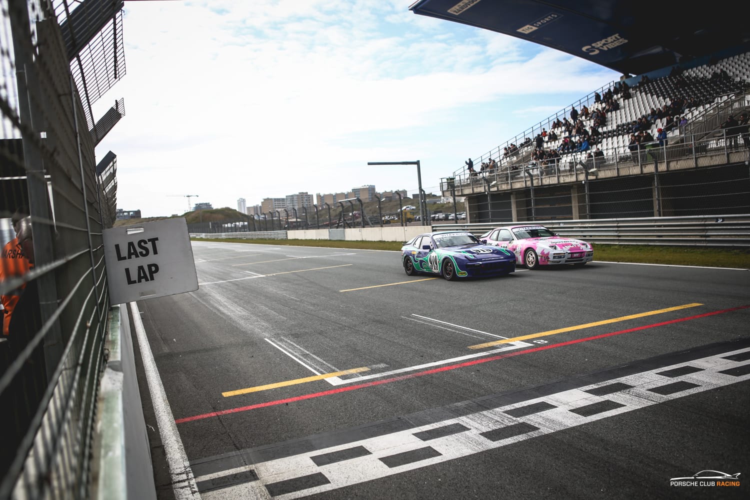 Het bord met nog één ronde hangt uit en je bent altijd weer blij als je dit bord ziet. Enerzijds omdat je benzinelampje brand en anderzijds omdat je moe begint te worden. Vergelijk het maar met een kart heat, dit is veelal tien minuten! en je voelt het de volgende dag nog in je lichaam. Een race is 25 minuten, lijkt kort, maar je lichaam en geest vertellen je wat anders. De finish vlag valt en je rijdt je ronde uit en bedankt onderweg de marshalls met een handgebaar. Aankomende in de pits is het druk, echt heel druk, wat een mensen zijn er op de paasraces afgekomen. Je stapt uit en 944 racers vallen elkaar in de armen en bedanken en feliciteren elkaar voor een mooie race met onderlinge gevechten.