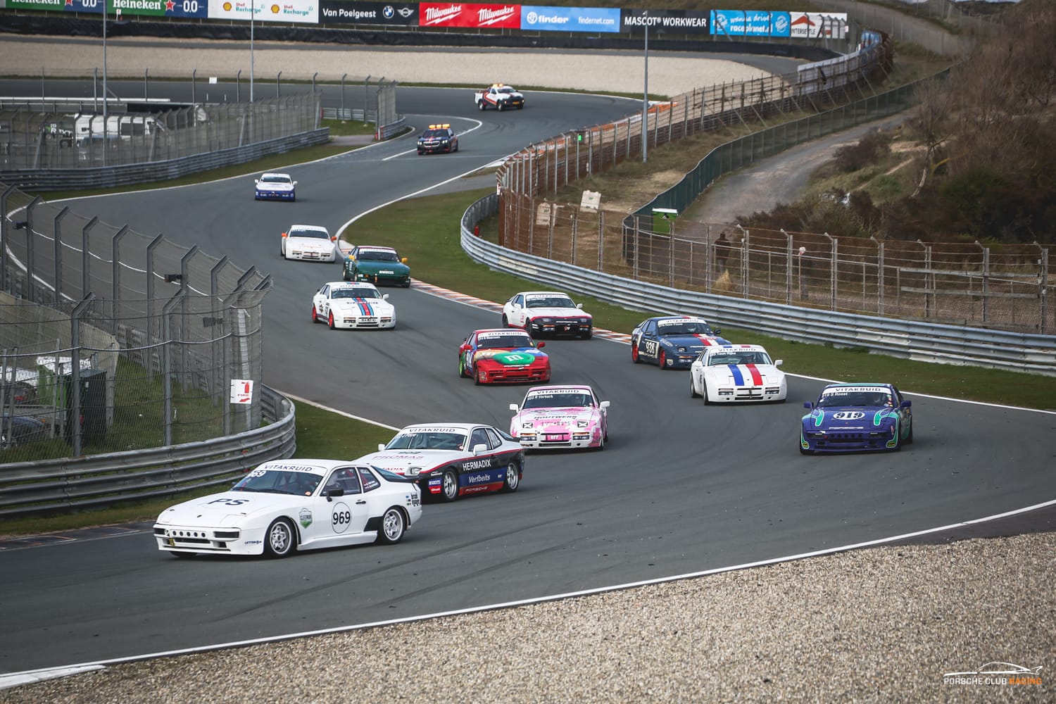 We rijden in treinvorm de pits uit en wat een prachtig gezicht om vijftien Porsche 944 cup racers te zien vertrekken. Vijftien enthousiastelingen die allen begrijpen dat een auto gebouwd tussen 1982 en 1988, Porsche 944 type 1 en type 2, nog altijd een fantastische race auto is. De kwalificatie verloopt vervolgens vlekkeloos en het “vermoedelijke” startveld, op basis van de eigen boardcomputer, is zoals verwacht en heeft opvallend veel gelijkenis met een eerder moment deze morgen, namelijk de briefing.