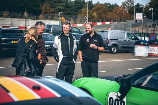 Je maakt een praatje met de andere coureurs van RFF Motorsport en ze stellen je gerust, we hebben dit allemaal ervaren, we begrijpen je, maar bovenal geniet en doe geen gekke dingen is het advies. Ik hoor het allemaal aan, maar echt doordringen doet het niet, de wc voor de zoveelste keer maar weer bezocht en dan de auto in. Ik start mijn Porsche 944 en rijd door de pit, ik besef ineens dat er geen weg meer terug is, ik moet nu. “Oh ja genieten zeiden ze, pffff”. Ik rijd richting Eau-rouge, wat een hoogteverschil en eenmaal boven zie ik de bocht niet meer, waar moet ik heen, geen idee... ah, dit bedoelen ze dus met een blinde bocht. Geen gekke dingen doen en genieten. Maak je rondjes zeg ik tegen mijzelf, maar dan op driekwart van het circuit nader ik een bocht die mijn hartslag ook doet stijgen, Blanchimont, pfff doodeng.