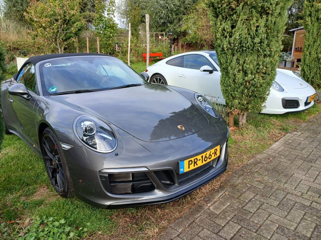 Onder het genot van eerdergenoemde lekkernijen werden elkaars auto's bewonderd en werd er veel over auto's gepraat. Ik vond het leuk om Guy tegen het lijf te lopen. Guy heeft in maart een gratis coating voor zijn Porsche gewonnen. Een actie van onze adverteerder B2M Automotive. Ik kon helaas niet zien hoe de coating op zijn 991 er aan toe was, want hij was meegereden met zijn maat Robert, die de dag ervoor zijn nieuwe 718 Boxster had opgehaald. Robert ken ik dan weer van het 64 weekend met bezoek aan het Porsche museum.