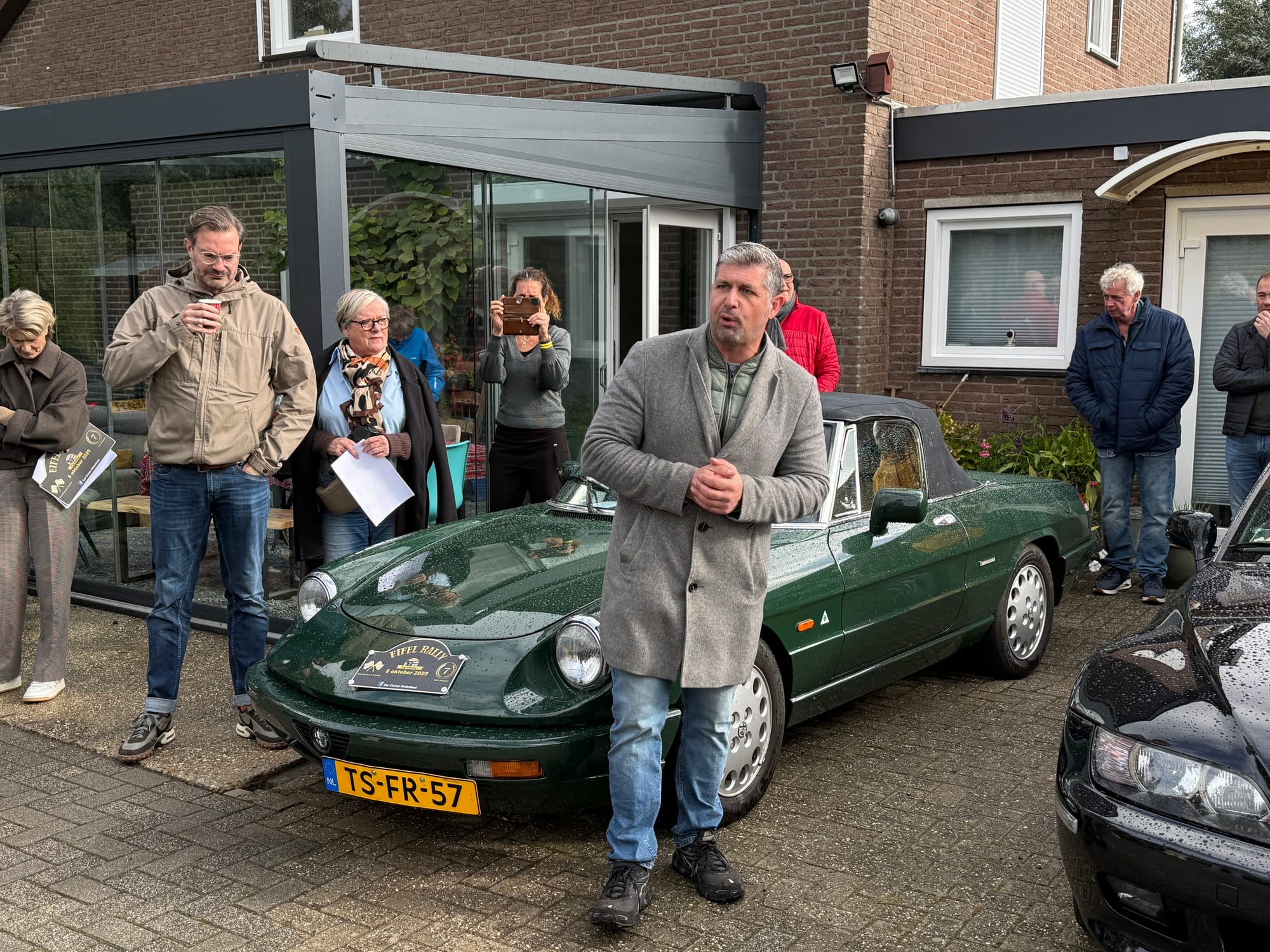De organisator van deze ritten is Bas Jussen, een vriendelijke Limburger die ooit eens voor vrienden een rit had uitgezet, en dit is na 7 jaar een ietwat uit de hand gelopen hobby geworden. Via zijn Facebook pagina Car Cruise Nederland, hadden zich voor deze zondag zo'n 60 auto's aangemeld. Gemiddeld 2 personen per auto en dan ontvang je dus ongeveer 120 personen gewoon bij jou thuis met koffie, Limburgse vlaai en broodjes. Bas is niet alleen vriendelijk, maar ook gastvrij. Dat geldt voor het hele gezin, want iedereen helpt.