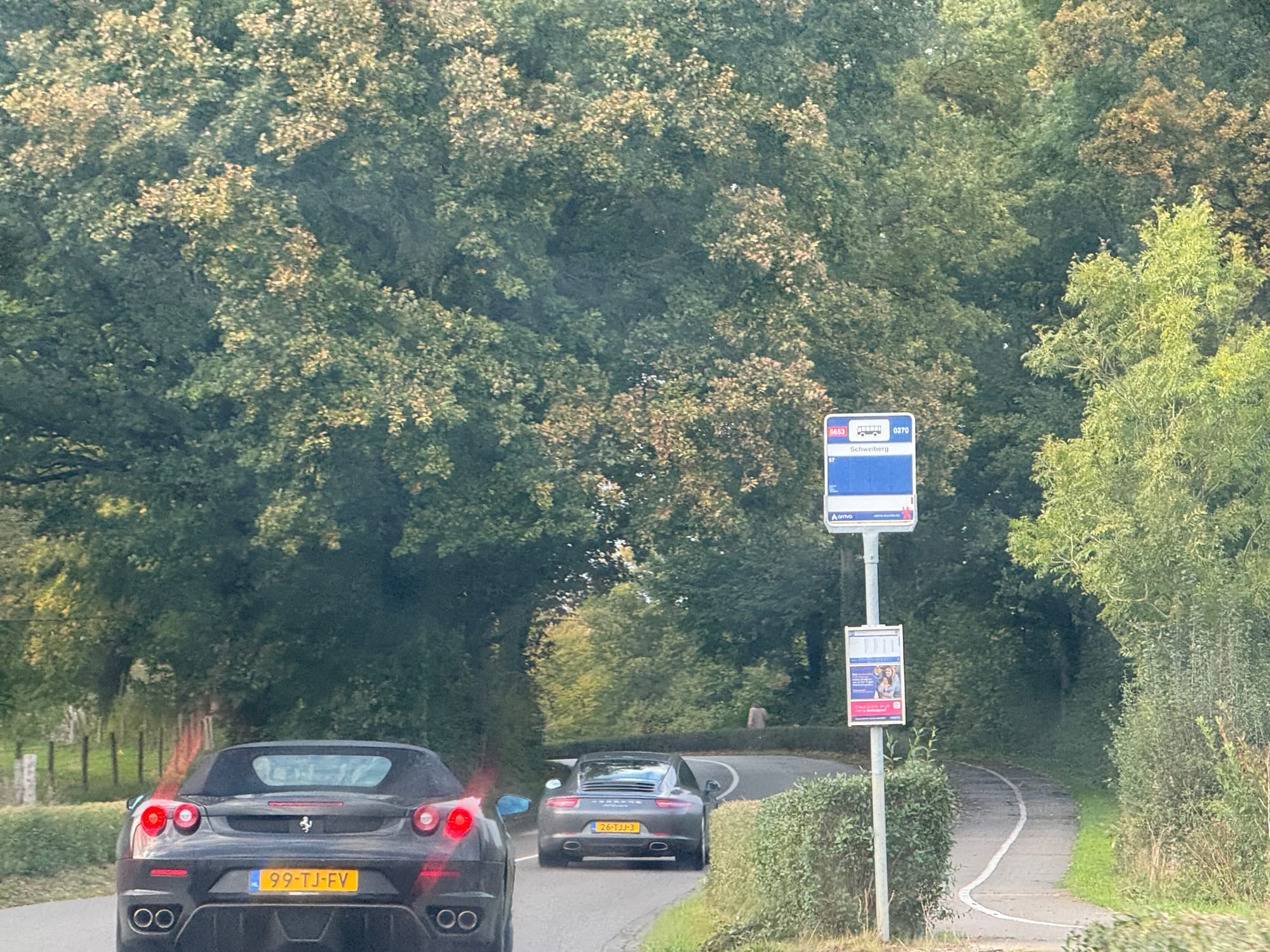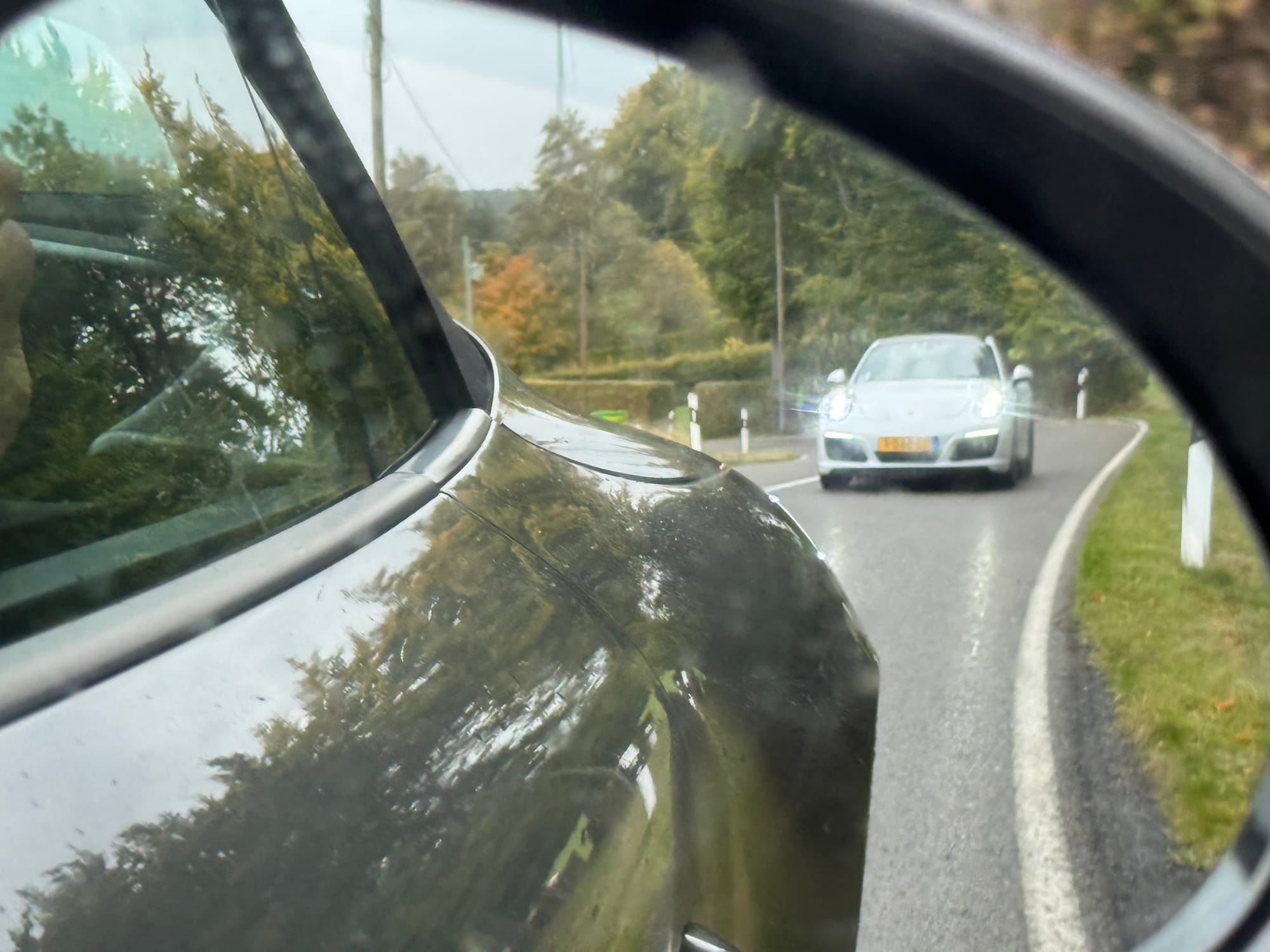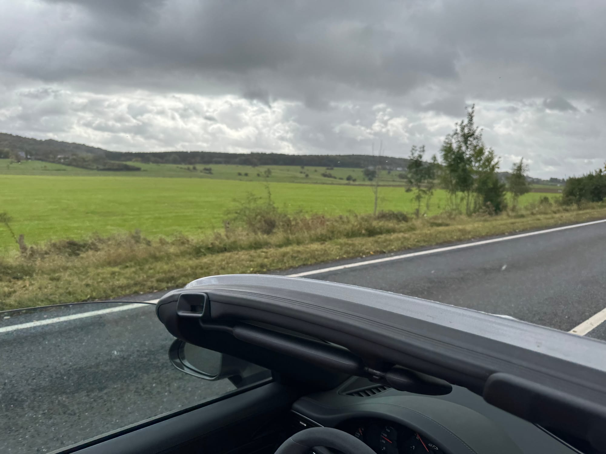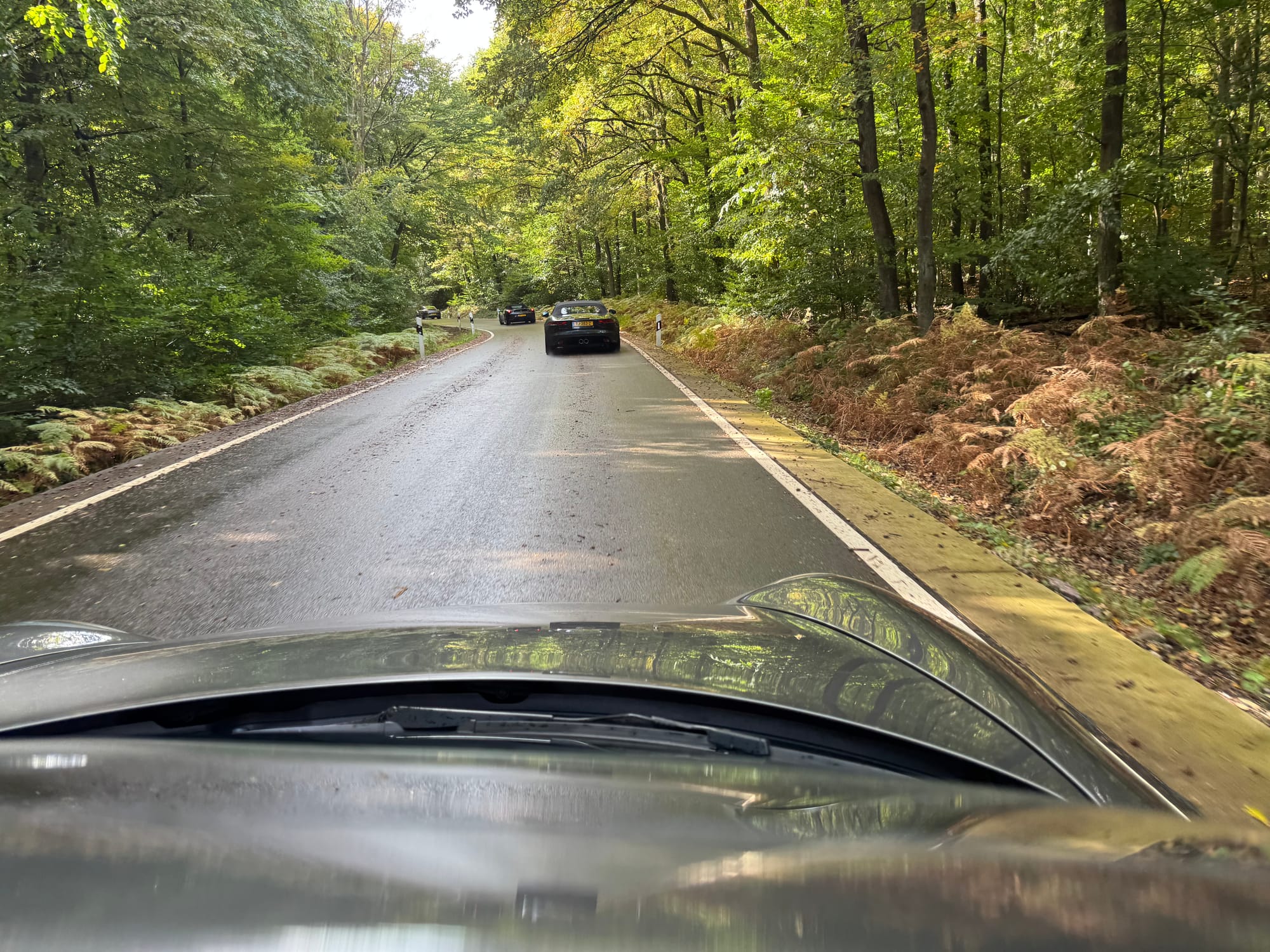 Onderweg hadden we de nodige buitjes, maar ook heel even een waterig zonnetje. Konden we toch een stukje open rijden. Tja...wat kan ik verder schrijven? Iedereen die wel eens in de Eifel heeft gereden weet hoe mooi dat is, en trouwens, wat dacht je van Limburg? Het was gewoon genieten.
